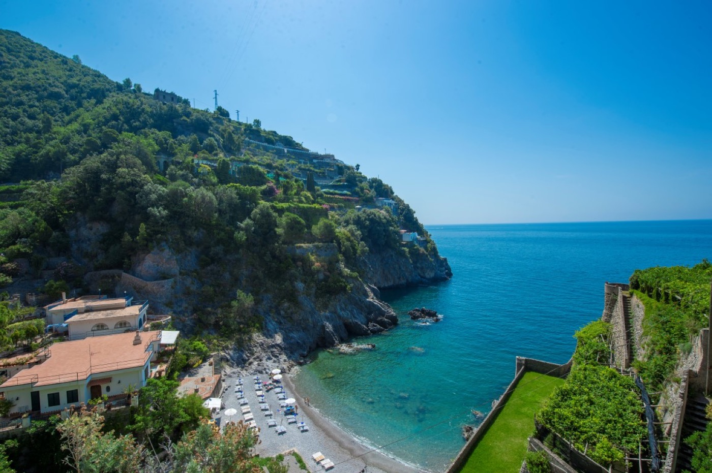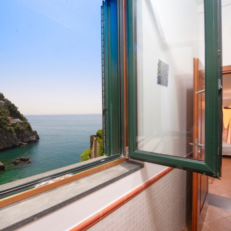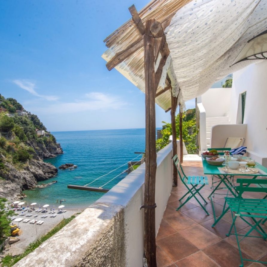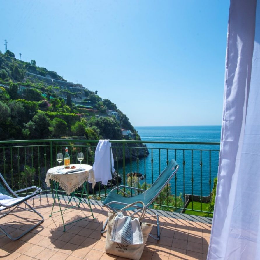 Casa al Mare is a very panoramic accommodation facing the beach of Salicerchie. It is located in the homonymous village just a few steps away from the famous Norman Tower of Maiori. The property is set in the rock and placed next to an ancient lemon grove whose aromas inebriate the Villa’s guests as well as the bathers while enjoying the splendid Beach of Salicerchie, which is just few steps (only 150) down below, and is directly connected to the Villa by one of the typical stone-made stairs of the Amalfi Coast.