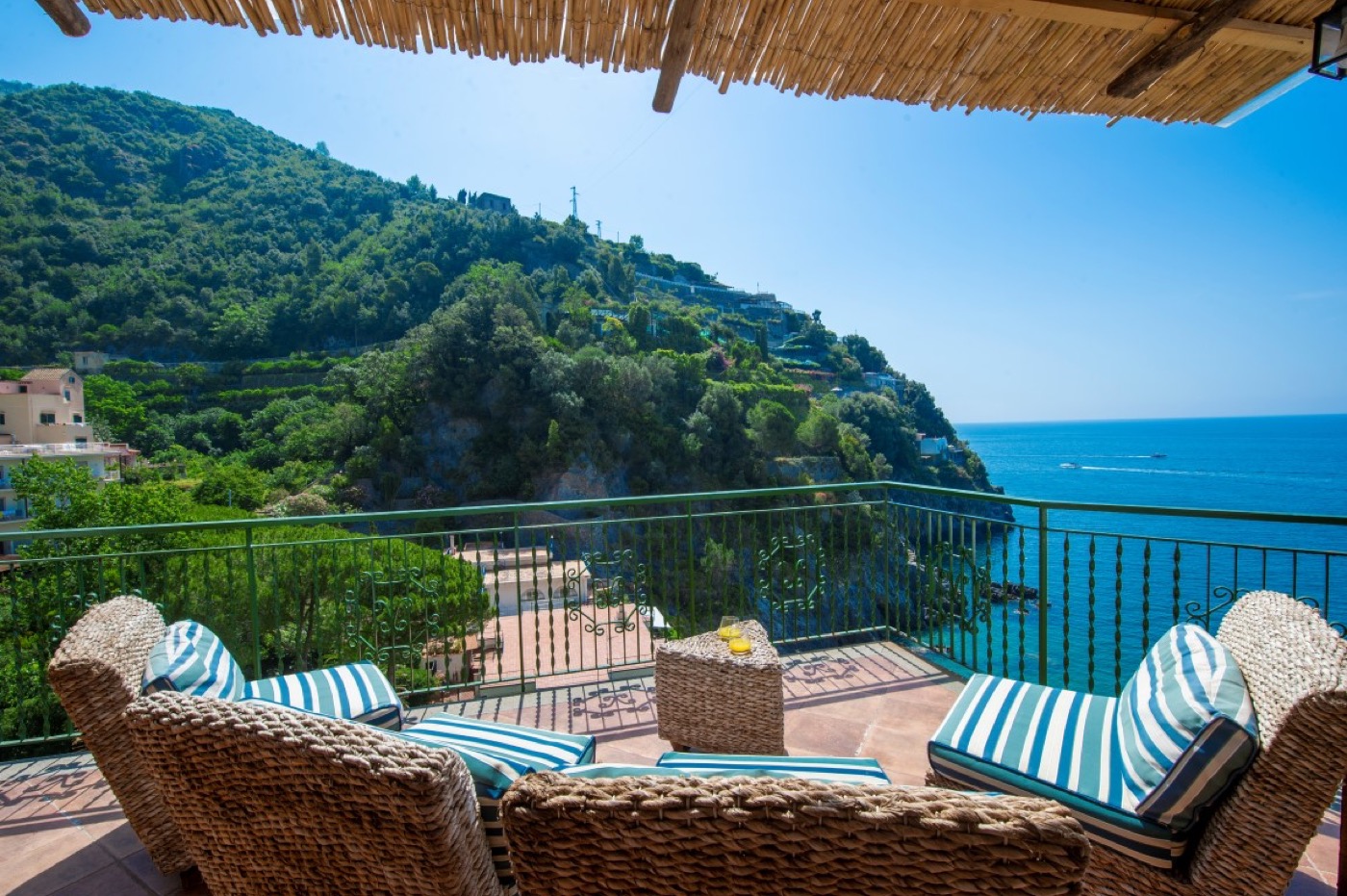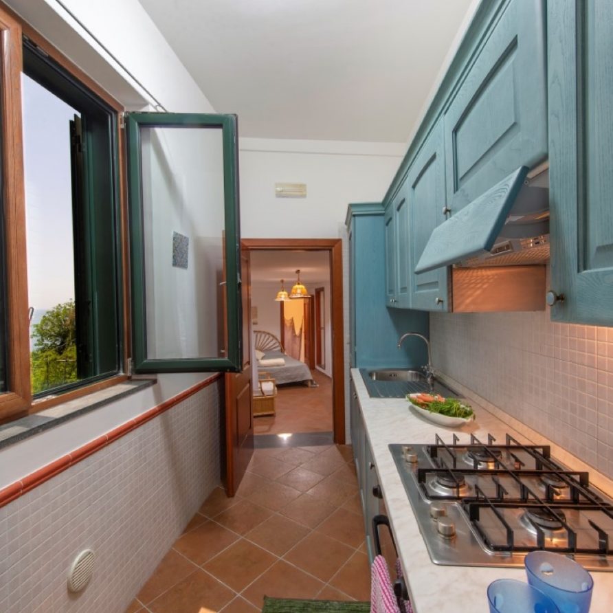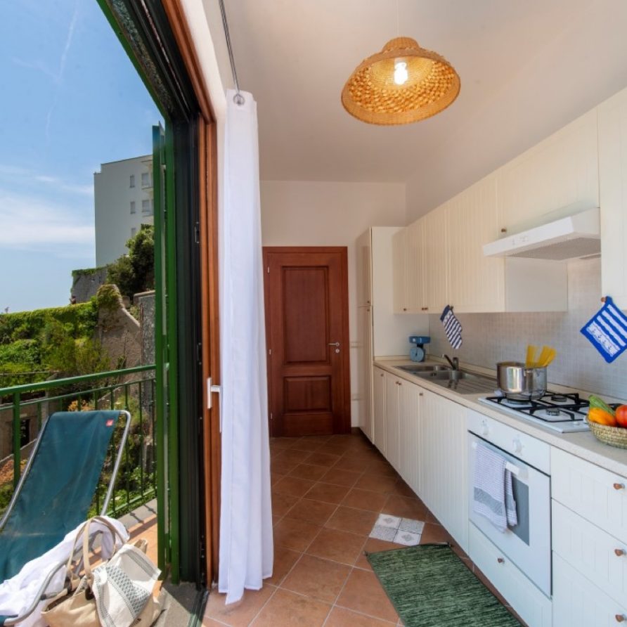 From the wide terrace just outside the kitchen it is possible to reach the beach by a private staircase that pass through the lemon grove. The terrace is equipped with a shower and it is very panoramic. With its enchanting view of the sea, the villa is perfect for a romantic escape with or without children.