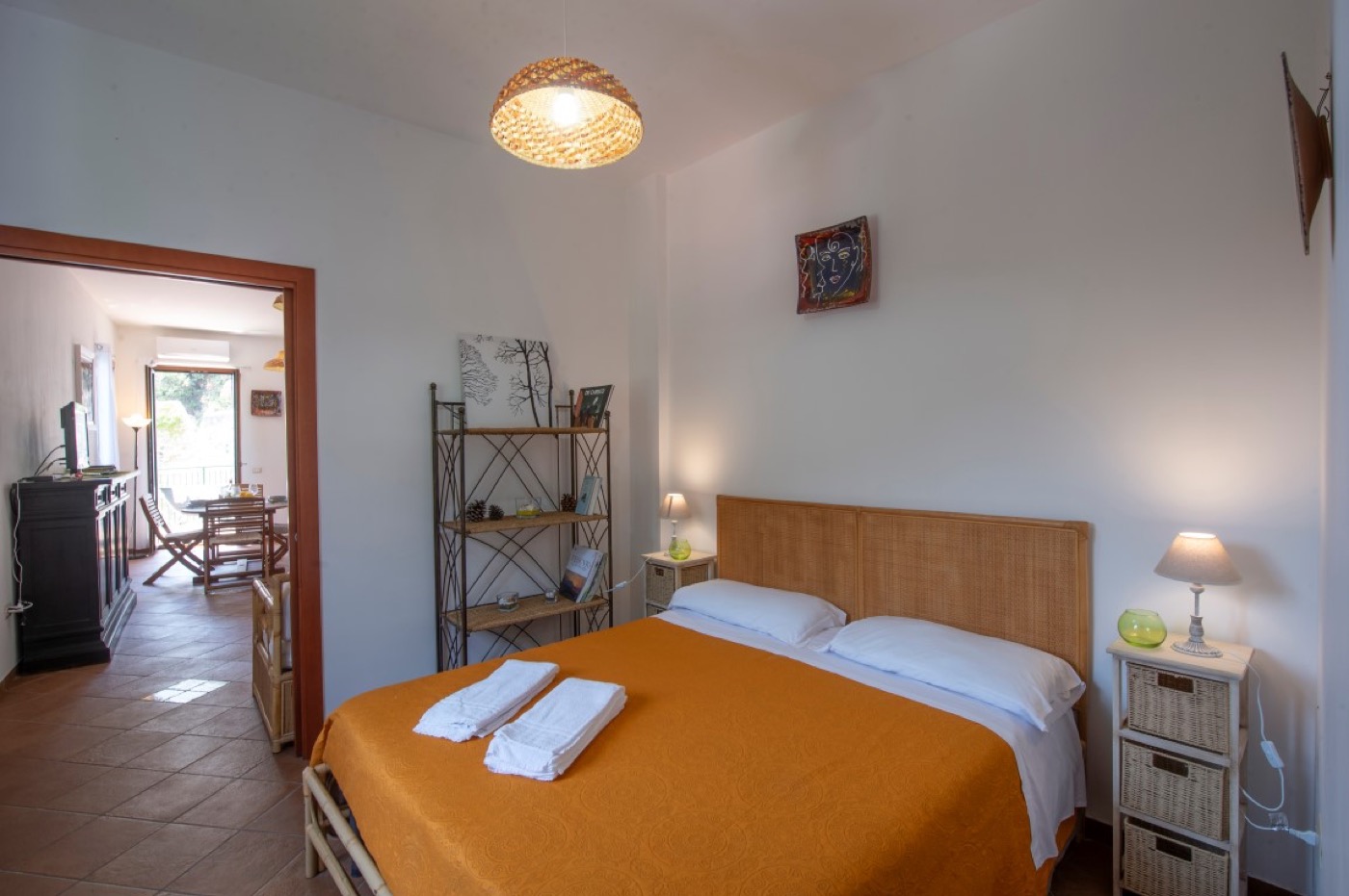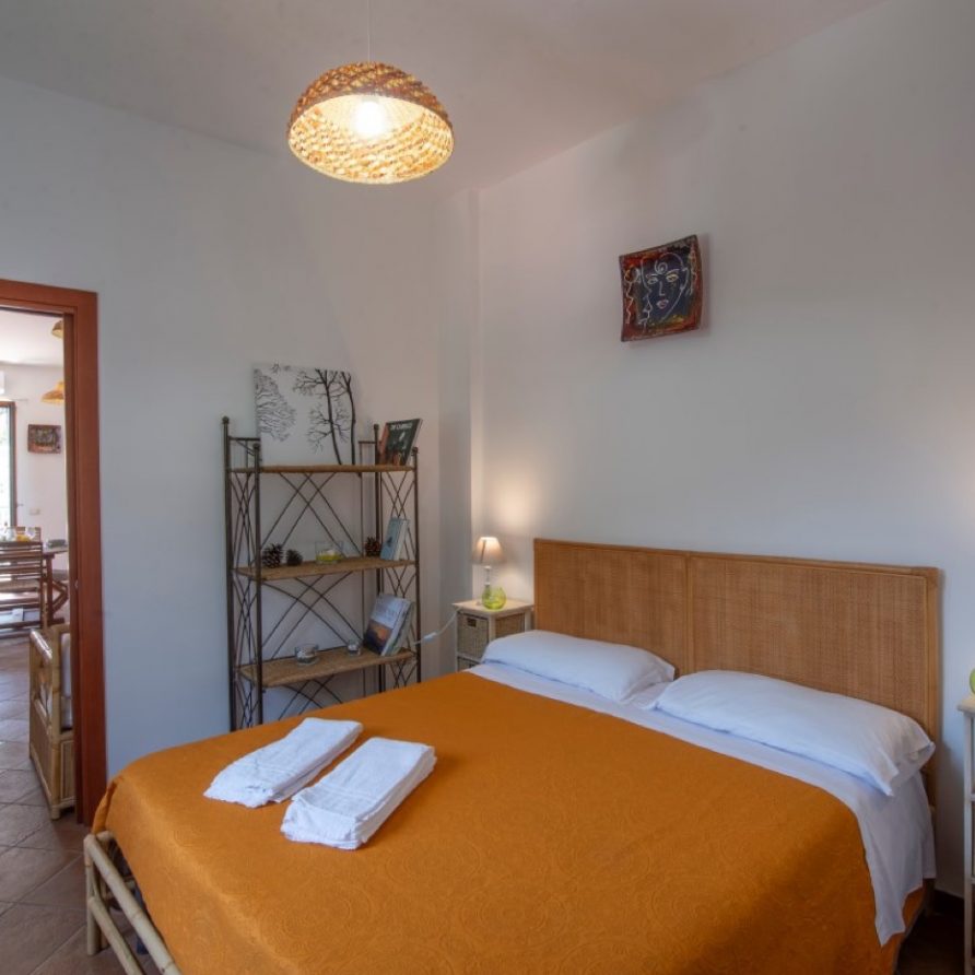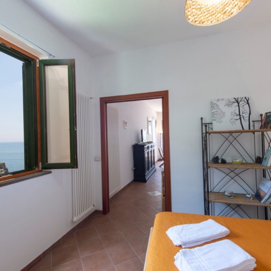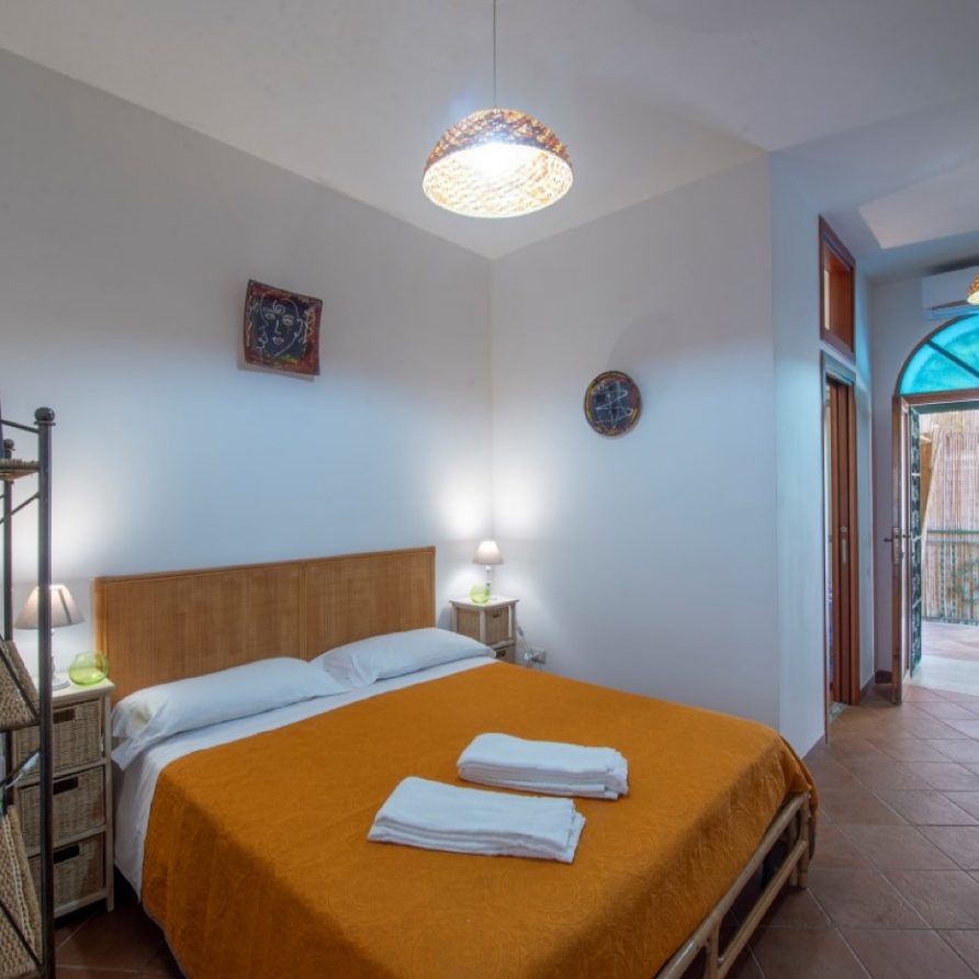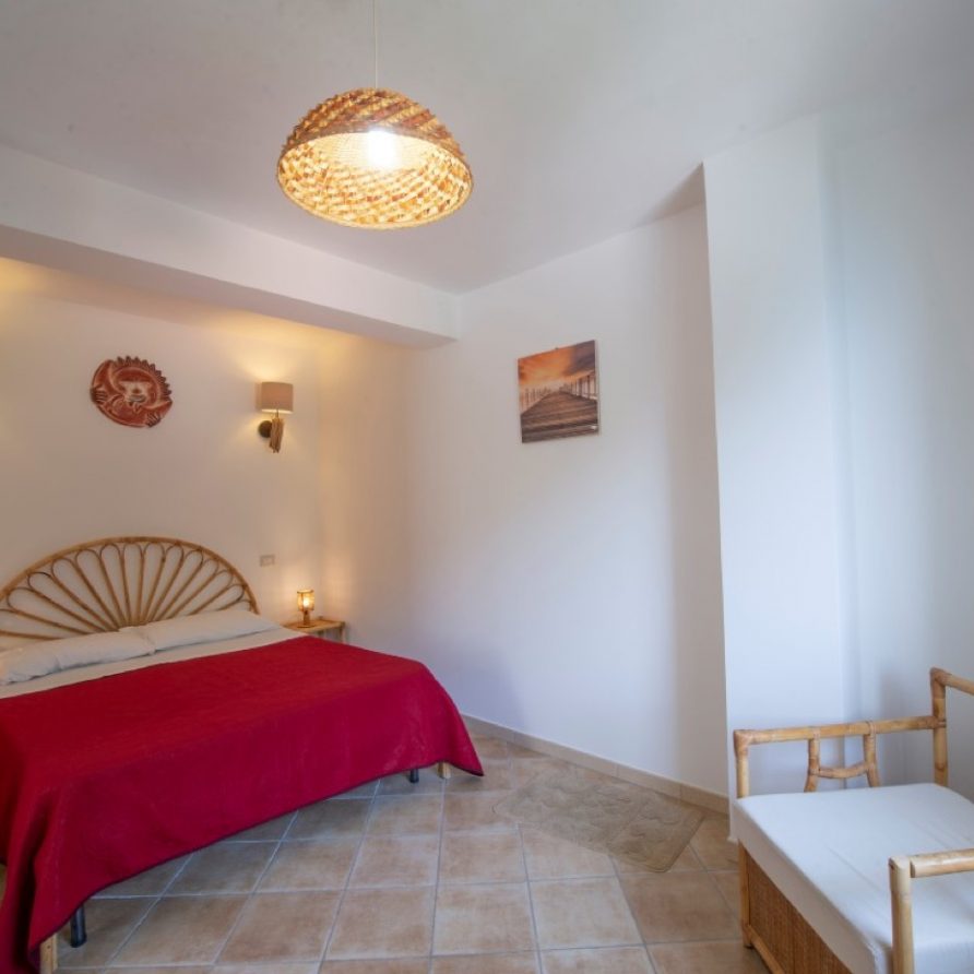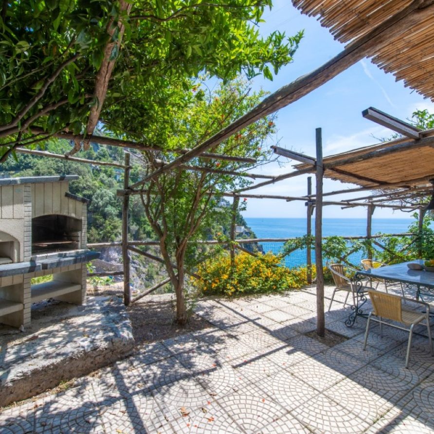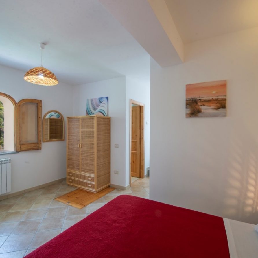 The villa has a direct access to an area equipped with a barbecue and a pizza oven and shaded by a rustic pergola; this terrace also, offers a breathtaking view of the beach, the emerald sea and the landscape of the Cilento Coast that appears just like a mirage on the horizon.