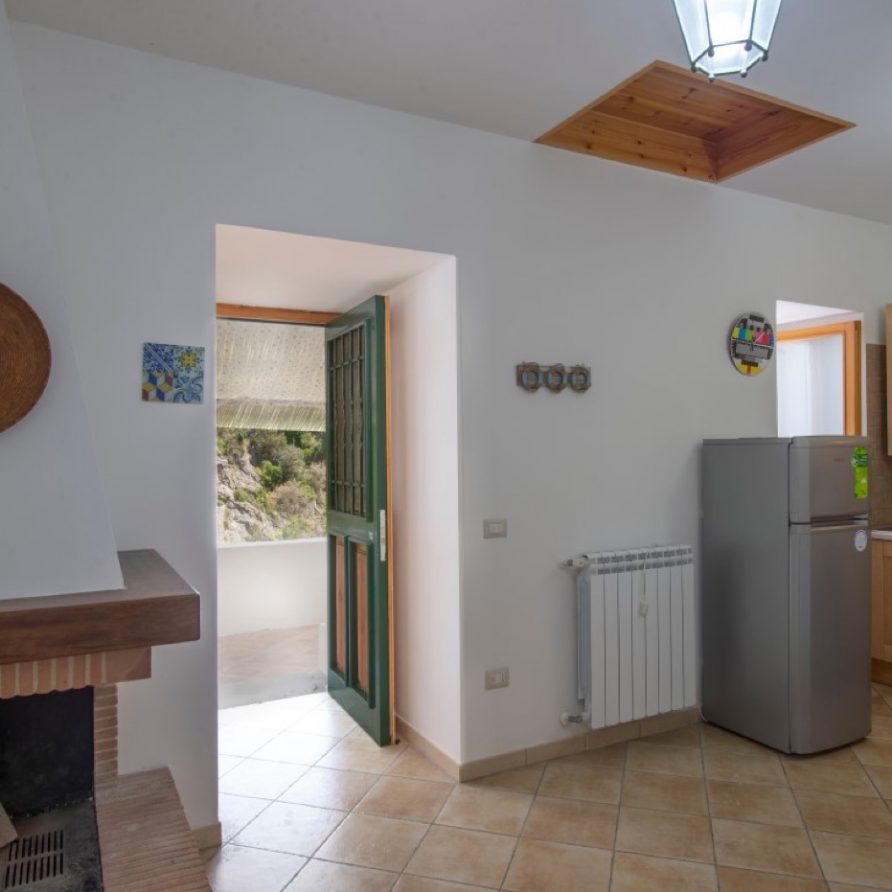The “La Cambusa dependence” is a delightful two-roomed apartment which is accessed through a short path shaded by the typical pergolas of the Amalfi Coast. The dependence is set on two levels connected by an internal drop and by the external lime staircase. The apartment is completely overlooking the sea and consists of a large bedroom on the upper floor with adjacent bathroom, and kitchen and living area, with a double sofa bed and a fireplace, on the lower floor.