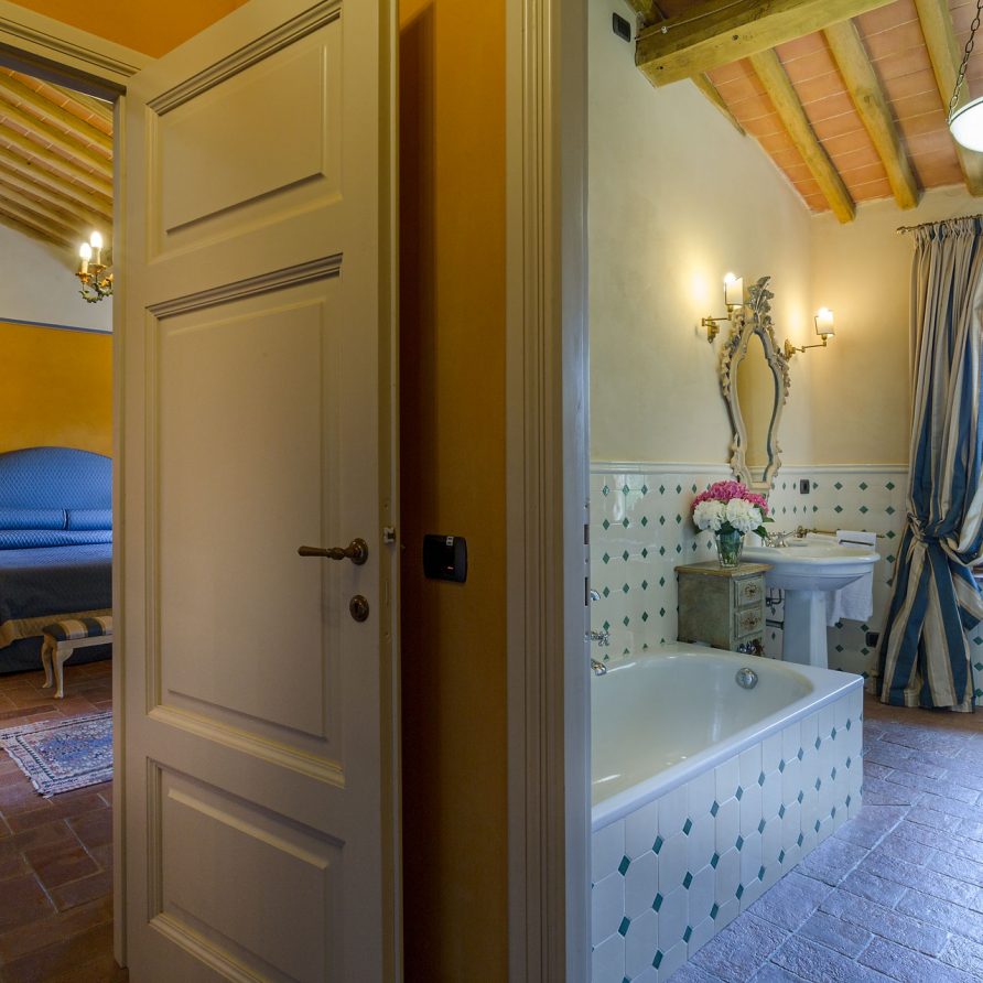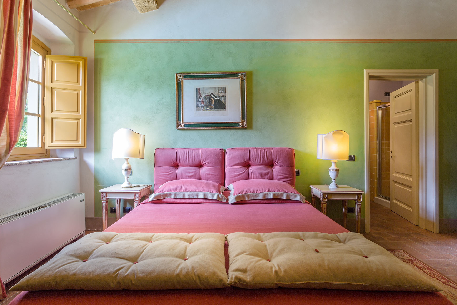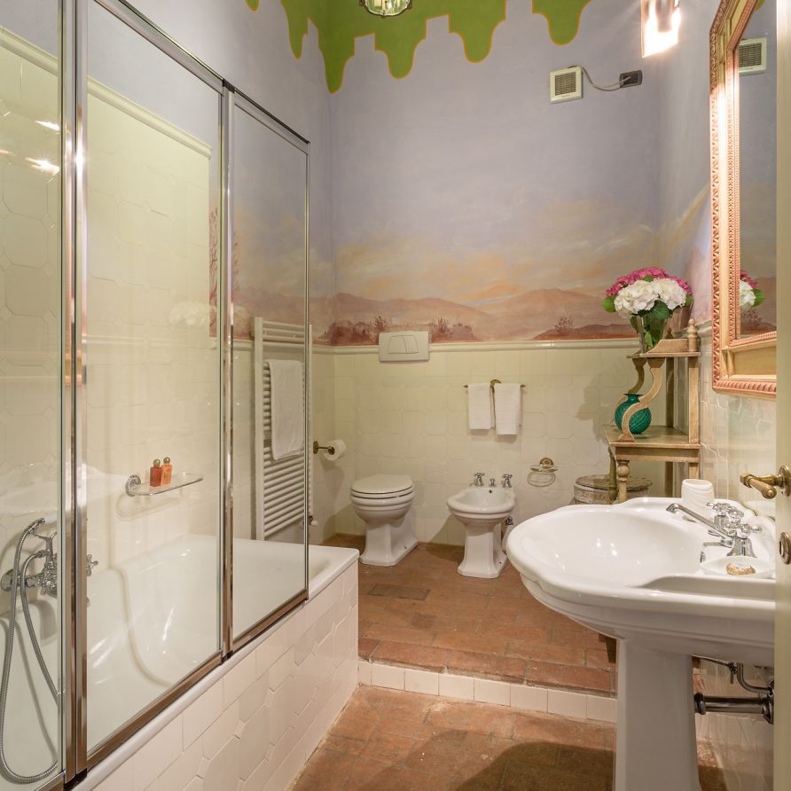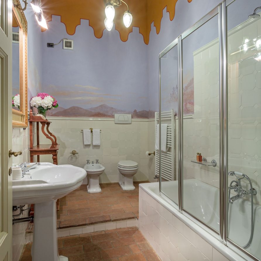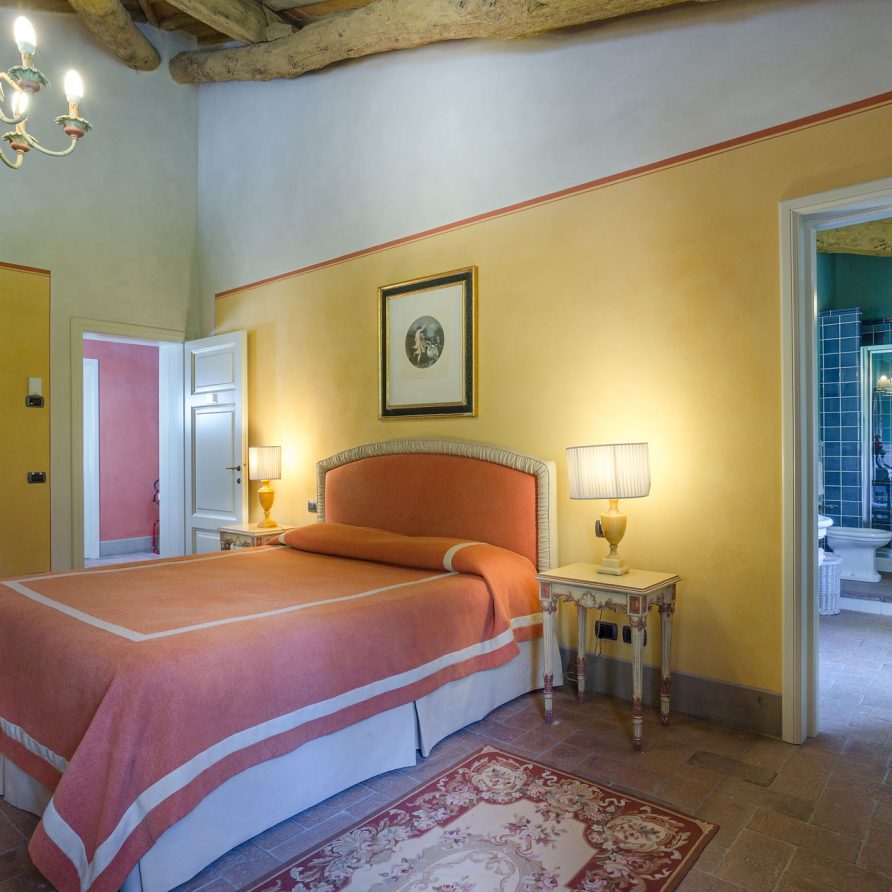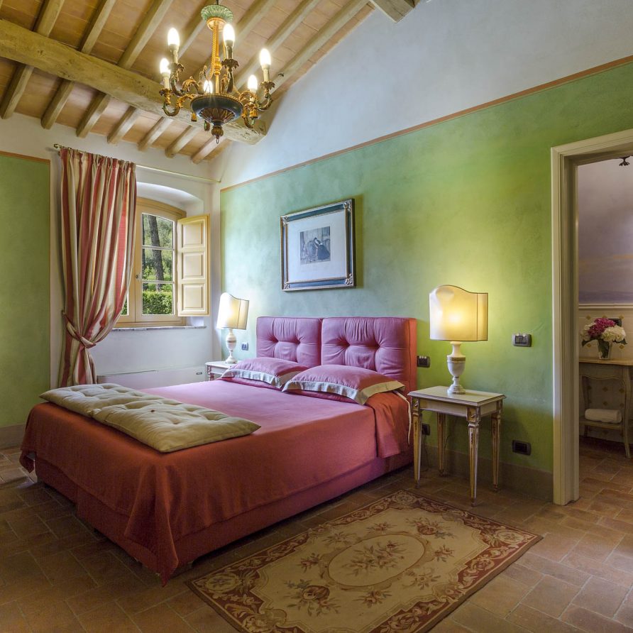 6 marvellous bedrooms with en-suite bathrooms. Every bedroom has a queen size bed except one where it is possible to have twin beds (can be converted into Queen). Two rooms can accomodate an extra bed for an additional charge. Thanks to the extra beds, Casa Mattei can accomodate up to 12 people.