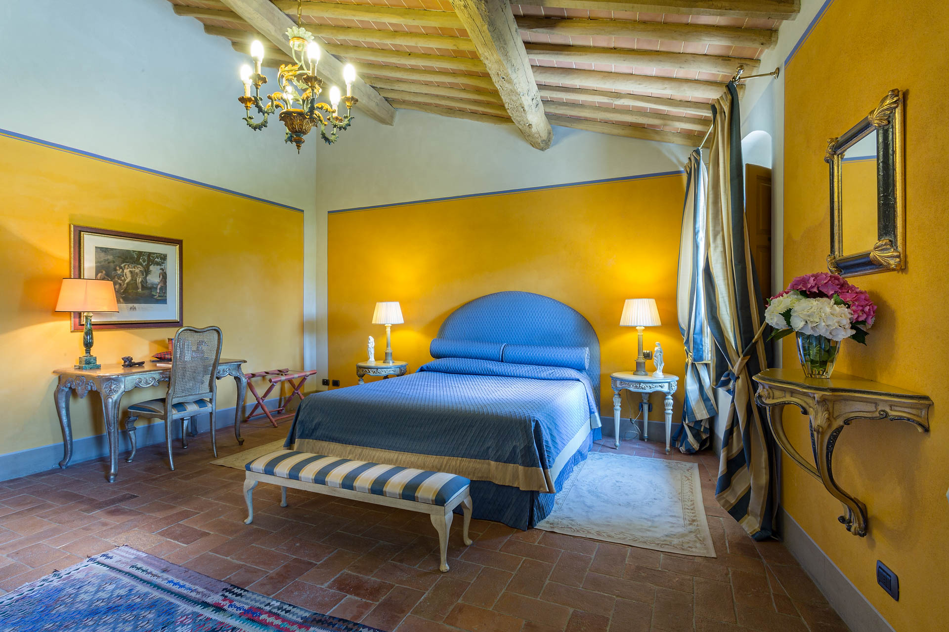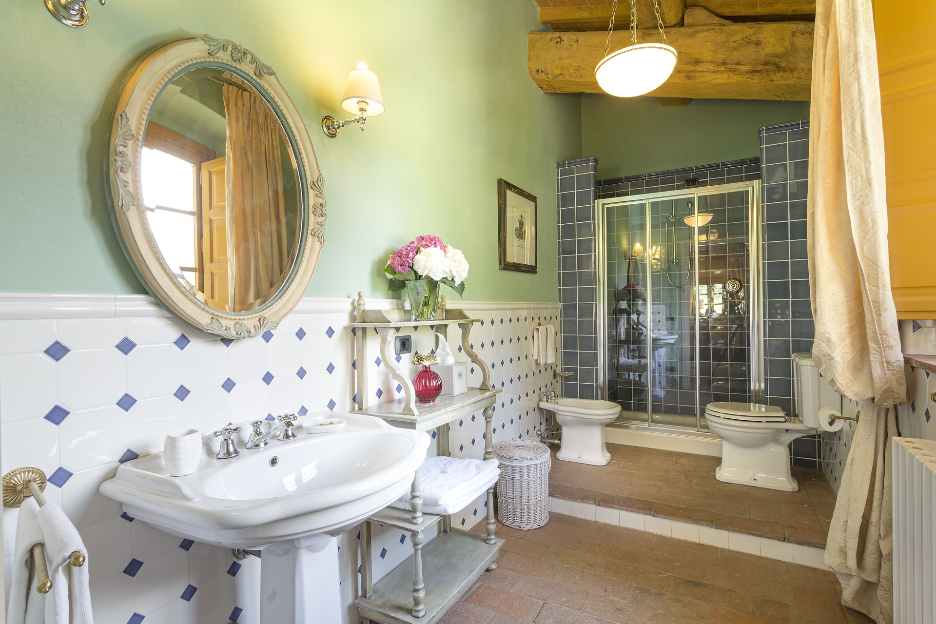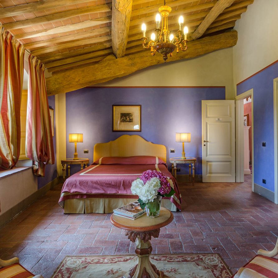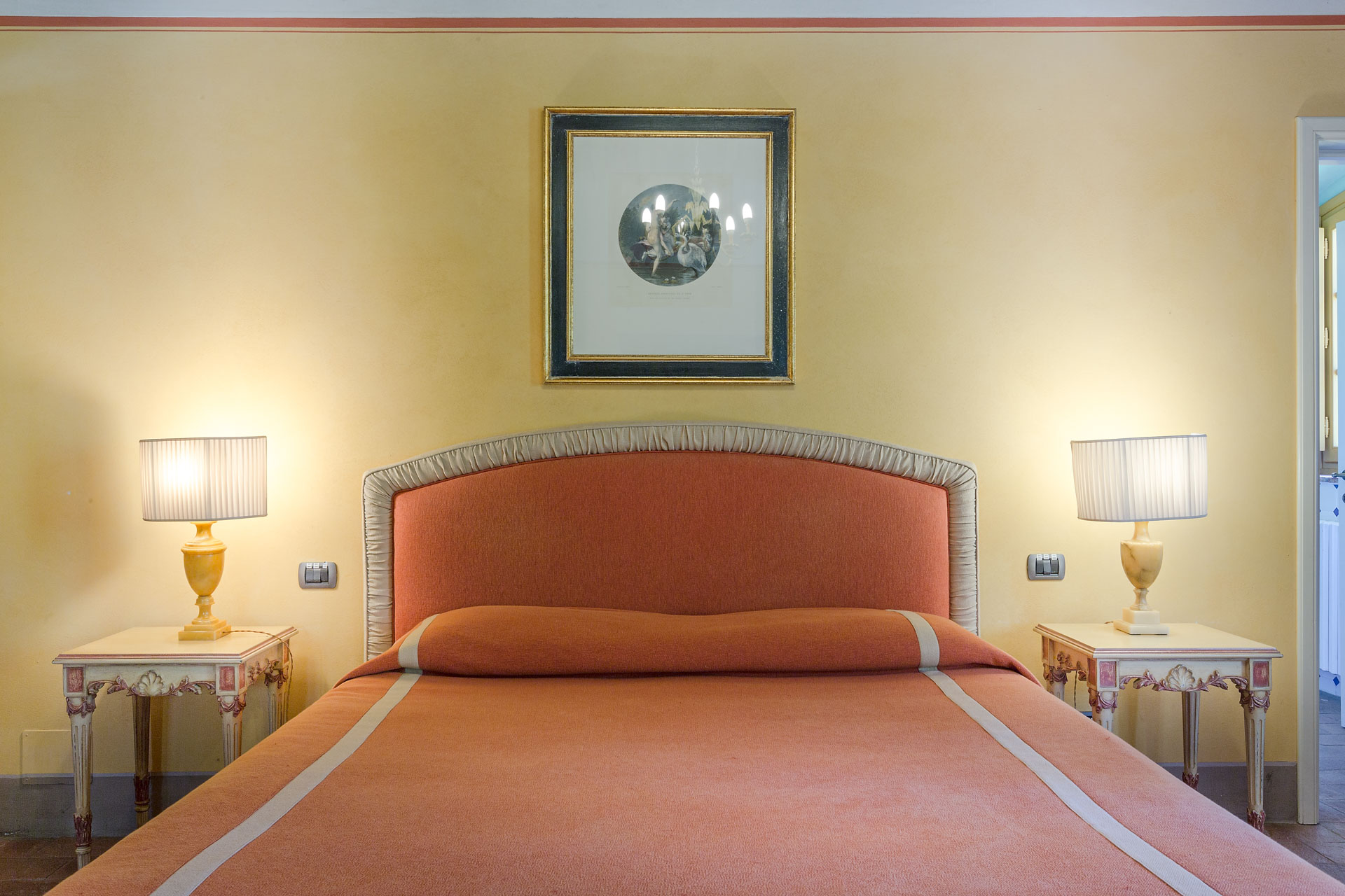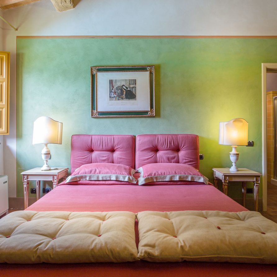 6 marvellous bedrooms with en-suite bathrooms. Every bedroom has a queen size bed except one where it is possible to have twin beds (can be converted into Queen). Two rooms can accomodate an extra bed for an additional charge. Thanks to the extra beds, Casa Mattei can accomodate up to 12 people.