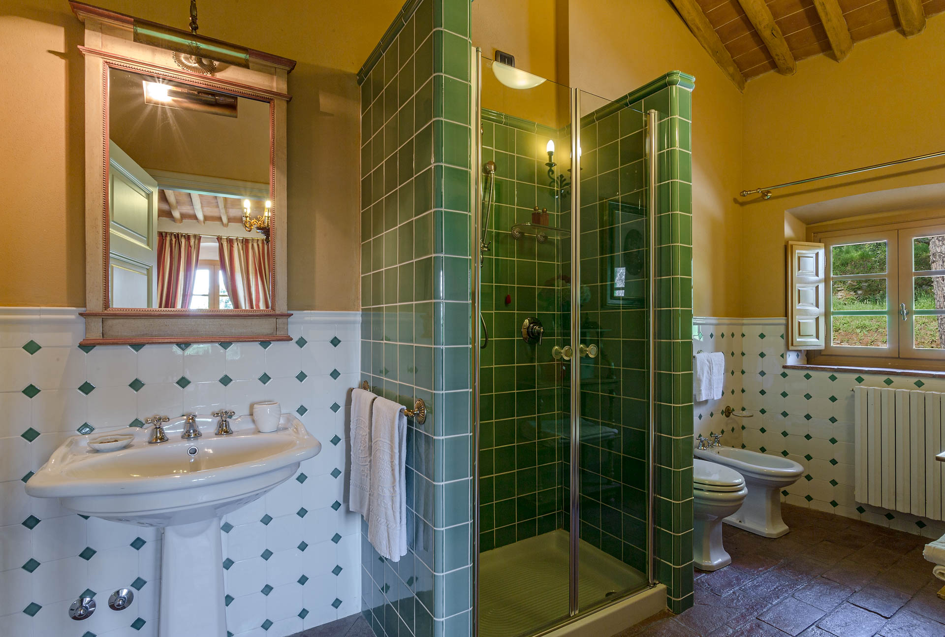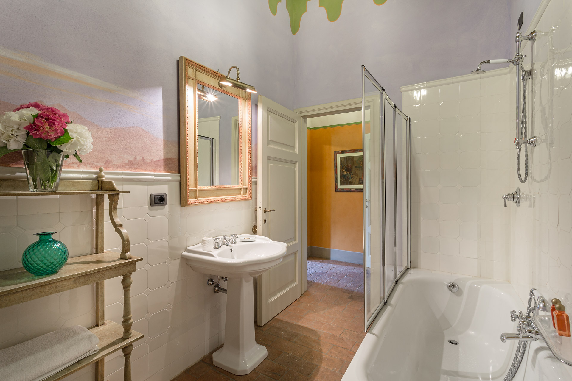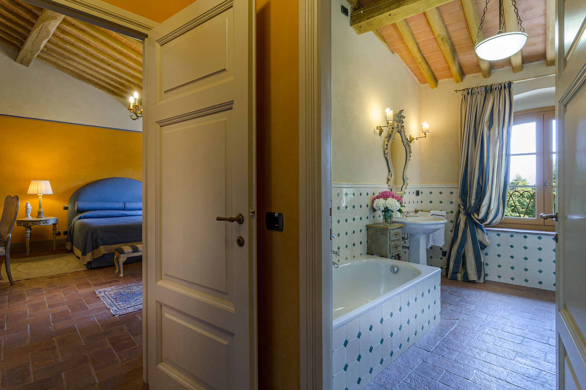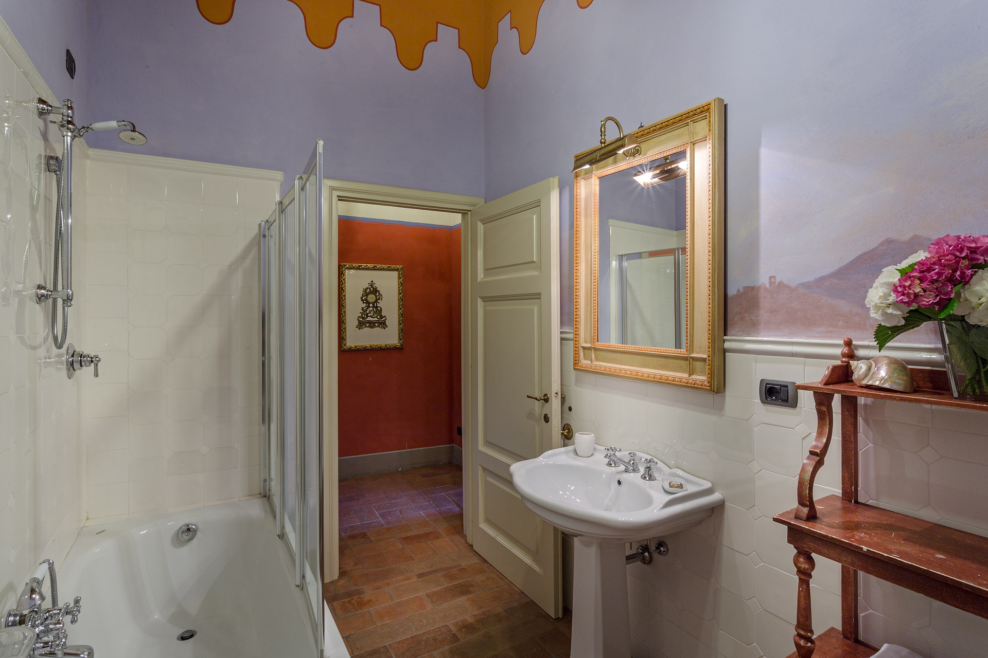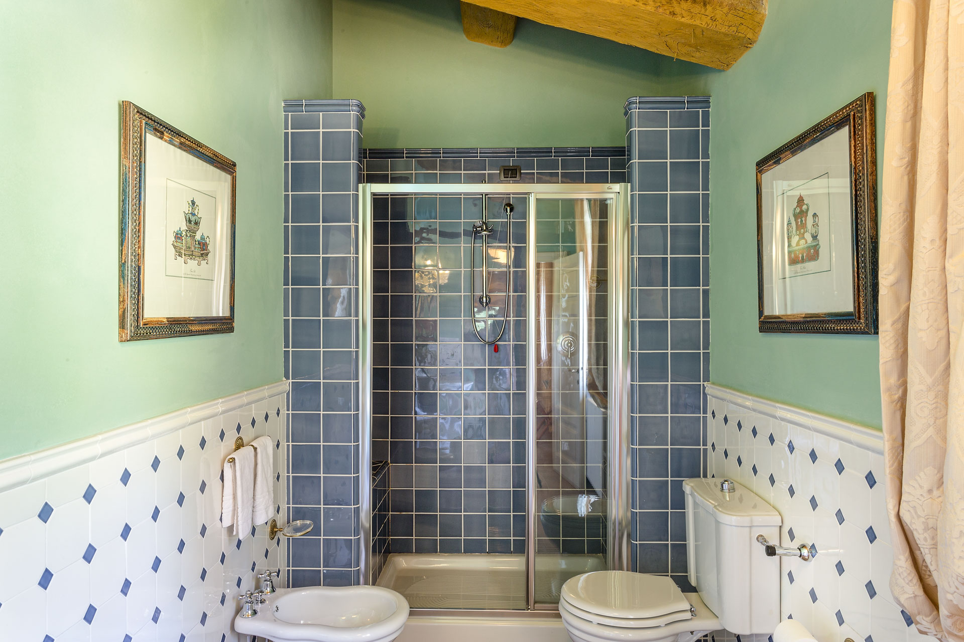 6 marvellous bedrooms with en-suite bathrooms. Every bedroom has a queen size bed except one where it is possible to have twin beds (can be converted into Queen). Two rooms can accomodate an extra bed for an additional charge. Thanks to the extra beds, Casa Mattei can accomodate up to 12 people.