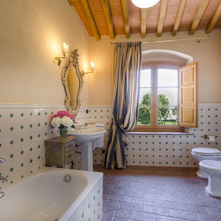 The two floor farmhouse offers accommodation full of charm with rustic yet elegant details, such as the original terracotta floors and wooden beamed ceilings. Casa Mattei is a place where you will find peace of mind while having fun time with your family. Get a relaxing massage looking at the sunset by the swimming pool or enjoy an entertaining group cooking lesson, taste the flavours of our territory through a fine wine tasting. We’ll do our utmost to make your stay perfect and we are at your disposal for any requests. We can organize cooking lesson (min. 6 people). The typical Tuscan Kitchen is fully equipped and it s perfect for any kind of preparation. Also, we can organize wine, oil and ice-cream tasting (min.6 people). Relax in the spacious and majestic living area or enjoy the fitness room; let yourself be spoilt by a rejuvenating massage (at extra charge); taste the traditional, fragrant aromas of our territory at dinner time with a selection of the best local products; have a rest by the pool under the flower gazebo. Tuscany at its best! A personal Chef is at your completely disposal for preparation of breakfast and one meal (lunch or dinner) 6 days a week (Wednesday day off). Cost of groceries not included.