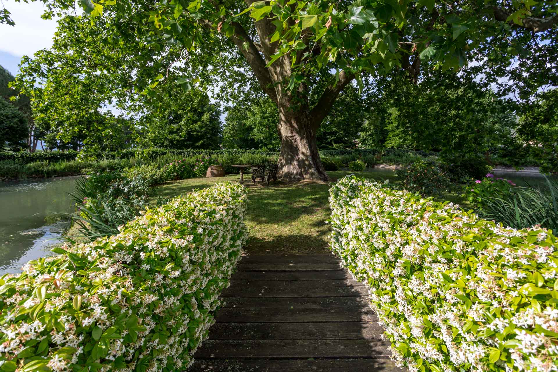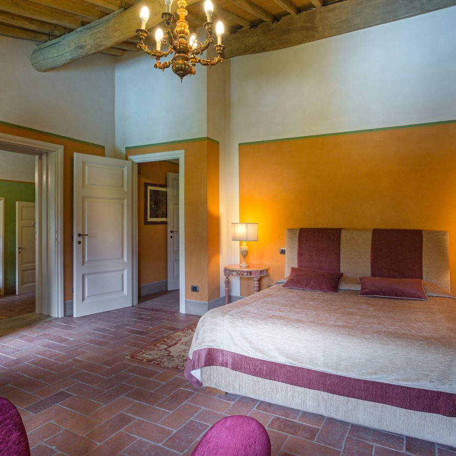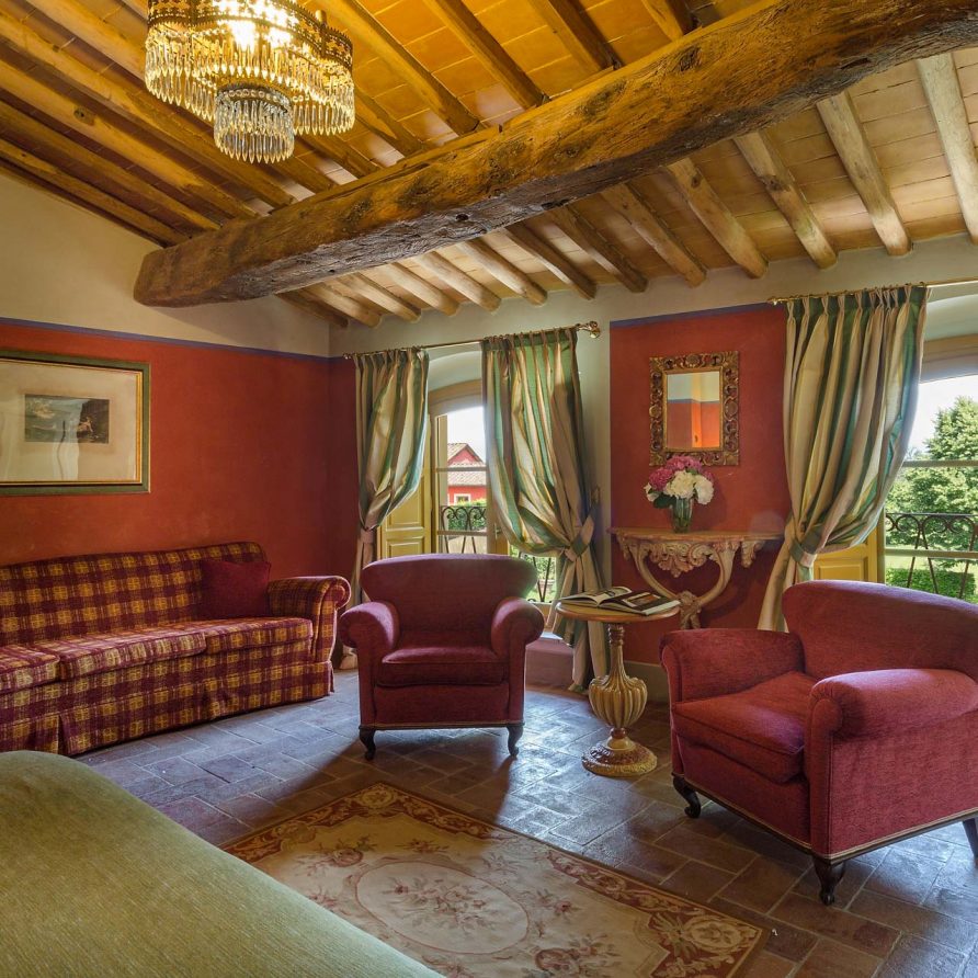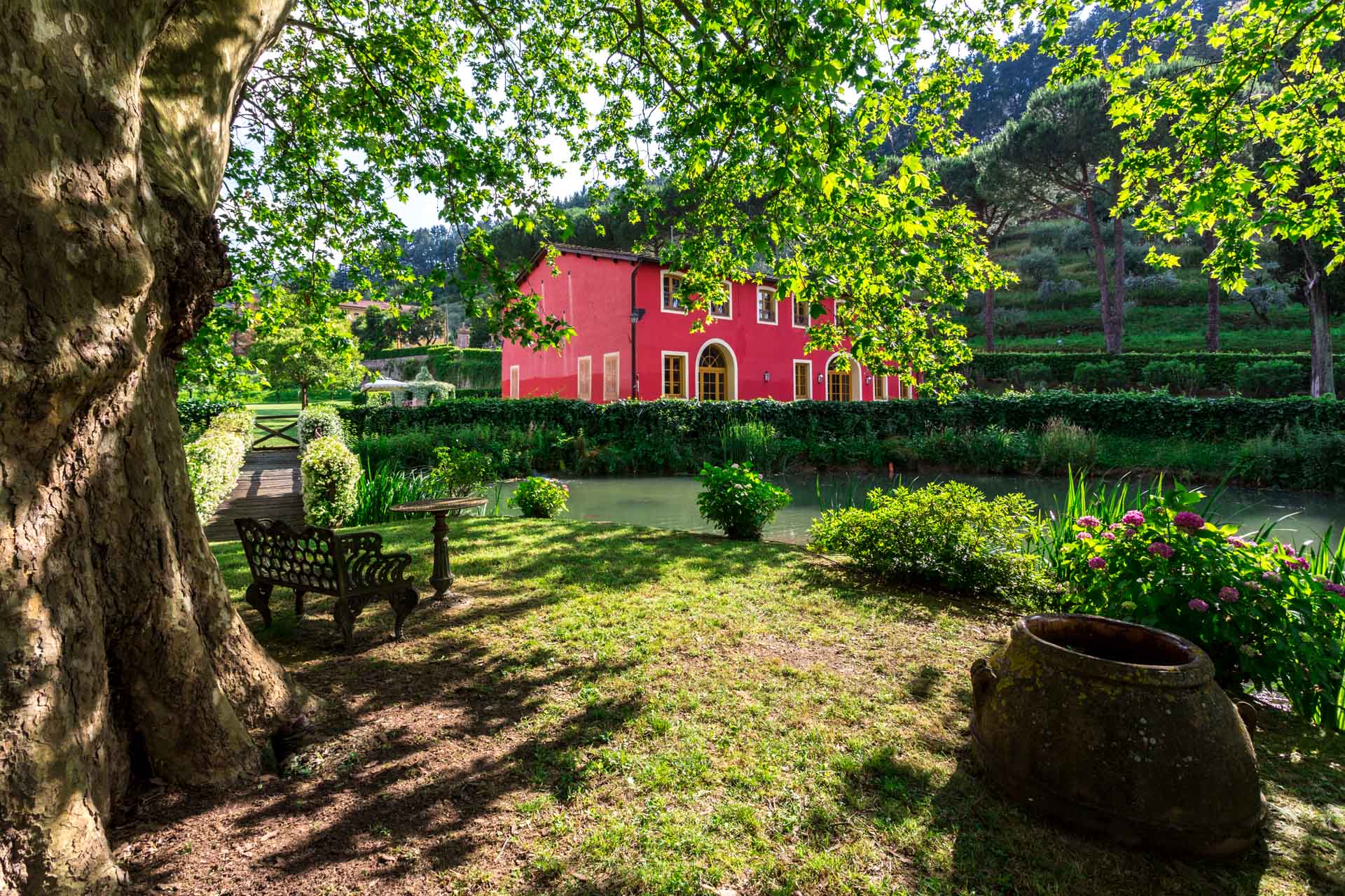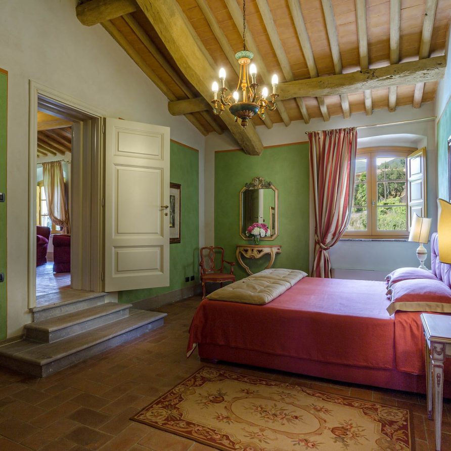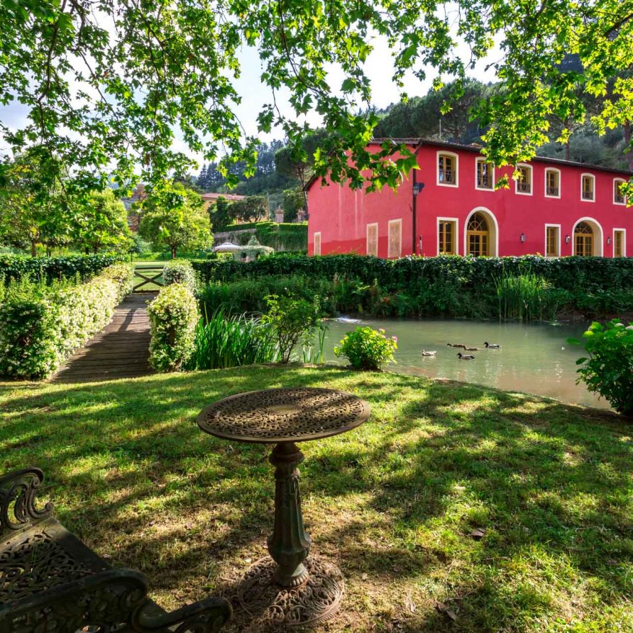 At the foot of Monte Pisano, in the Vorno valley, (6 km from Lucca) is this beautiful typical Tuscan farmhouse, nestled among olive groves. In front of the house, a wooden bridge over a small pond leads to a charming private island shaded by trees. The property was the home of the famous architect Felice Matteucci who invented the first striking engine (prototype for the modern car) in his on-site laboratory. He lived in this home from 1808 to 1887 where he conducted his most important scientific researches. Matteucci was the son of the famous Minister of Justice of the Republic of Lucca and noblewoman Angiola Tomei Albiani. Over the centuries the house has hosted many elegant events and noble ceremonies. Today it is a charming villa for rent with 6 beautiful bedrooms with private bathrooms.