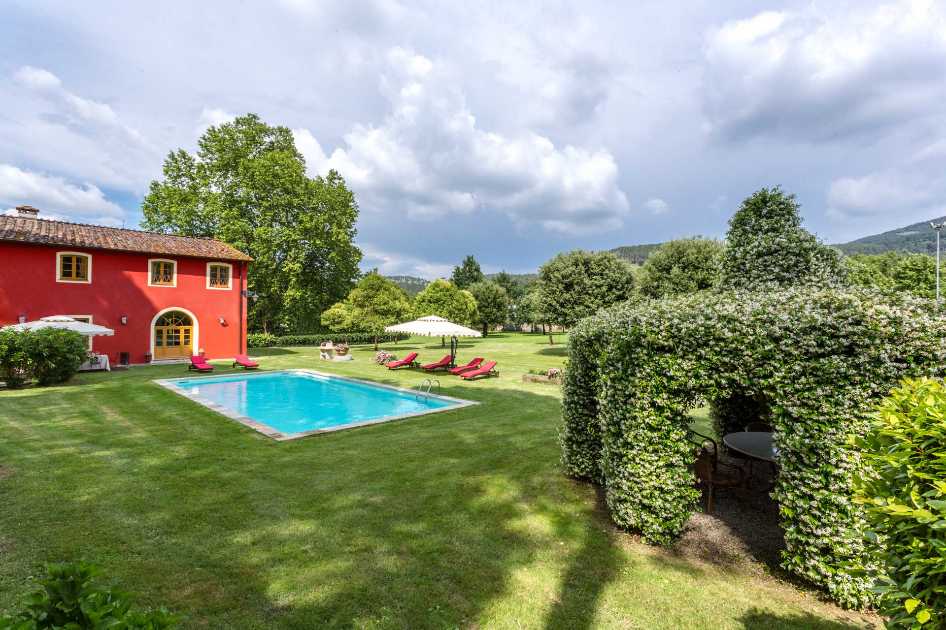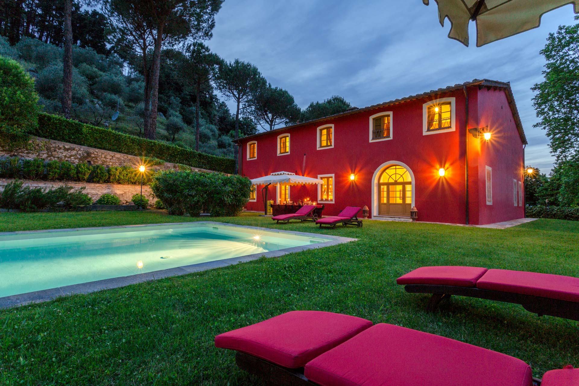 Distances: Vorno (closest village with a small supermarket and restaurant) 1,5 km, nearest beach in Viareggio 29km, nearest beach in Forte dei Marmi 39km, tennis club 2,5km, golf course 29km, putting green 2,5km, hospital 4km, Lucca 6,5km, Pisa 19km, Florence 50km, Siena 80km, Cinque Terre 60km, Bolgheri 80km, Rome 275km, Venice 260km, Milan 300km, trains: Lucca 7km/5miles.