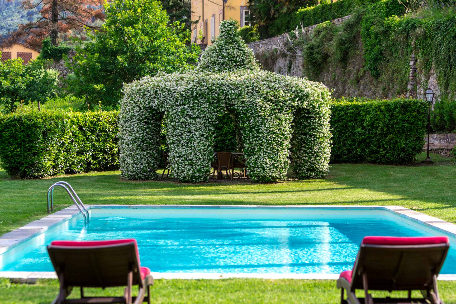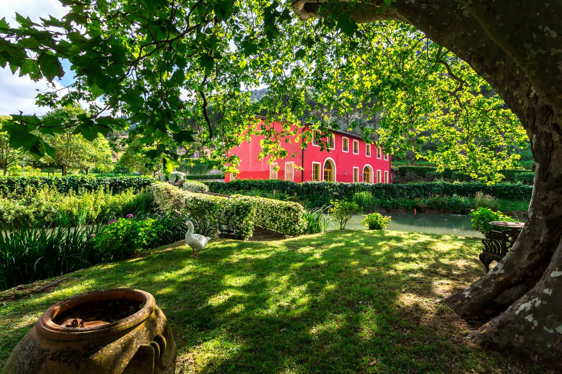 A place rich in history and beautiful nature: small streams, breath-taking landscapes and amazing panoramas. This particular area of Lucca countryside offers many kind of outdoor activities: hiking (Pizzorne and Mount Pisano), tours of the historical Villas (Villa Bernardini, Villa Buonvisi etc.), fitness trails (Marlia), nature reserves (Gherardesca lake, WWF Bottaccio oasis), termal baths (San Giuliano Terme). Horseback riders will be delighted to enjoy a ride in the wild, just a 10 minutes drive away, in a beautiful horse farm. For tennis and golf players, an exclusive Tennis camp; Golf Club is just a 5 minute drive away. A relaxing but also entertaining vacation in a landscape full of history. A short distance from Lucca (6km), this typical Tuscan farmhouse is immersed among olive groves with private lakeand big park.