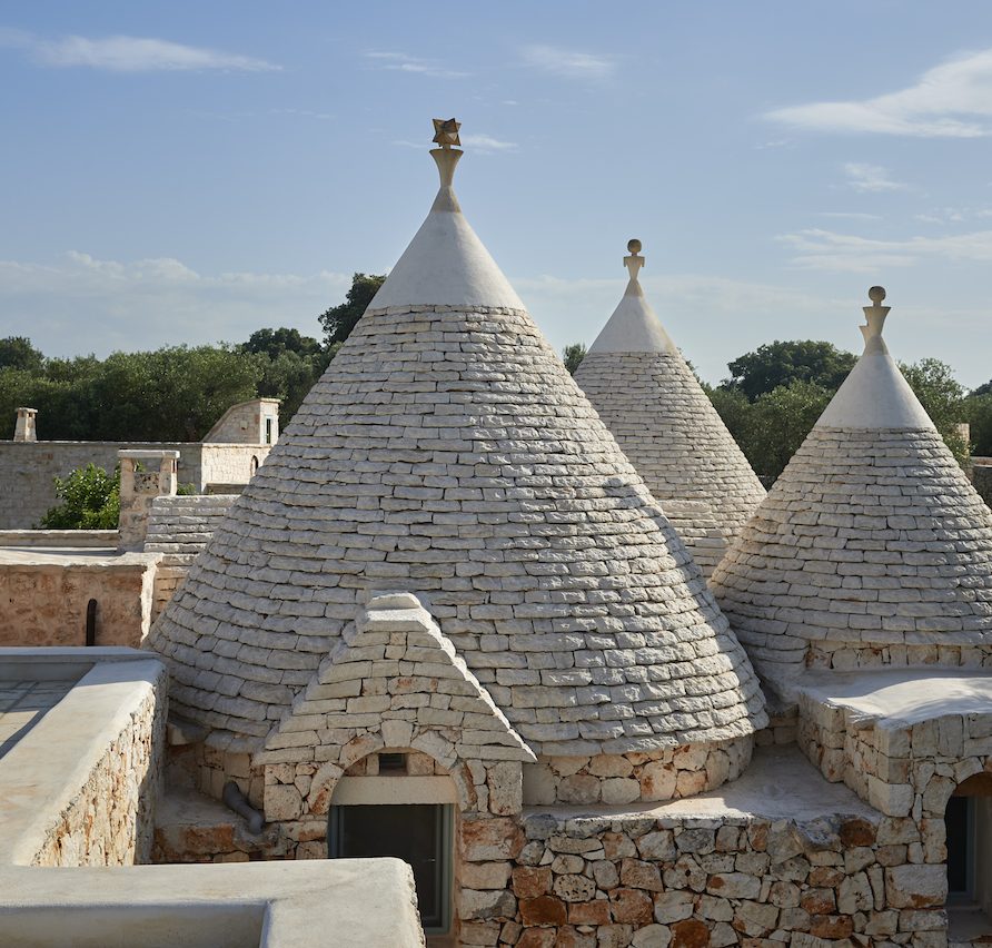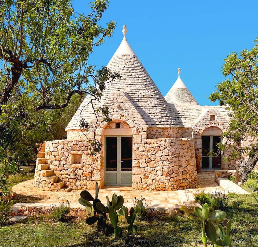 The Trulli: Trulli are traditional structures made of carved stone, with pointed-dome roofs and meter-thick walls to protect against the heat and sun. Their open, round floor plan allows for a truly unique experience. Inside these walls, once covered with straw, one feels as if in another time, sheltered and protected.