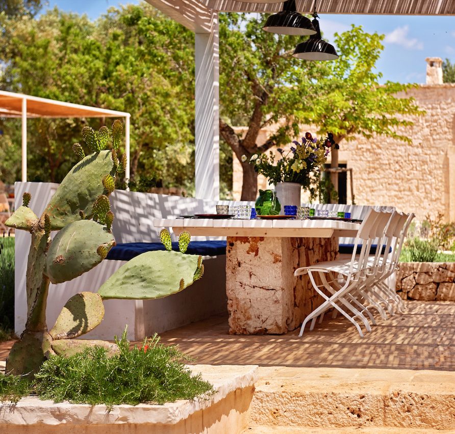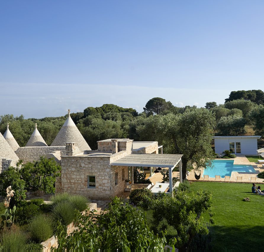 The Lamia: The carefully renovated lamia, or former farm building, and the five trulli form the architectural backbone of the resort. In these structures, spacious bedrooms and bathrooms welcome up to 10 guests. Each is individually designed, equipped with the most modern of comforts and decorated with high-end furniture and luxurious textiles. Each suite has its own restrained color palette, a balm not only for the eye but also the soul.