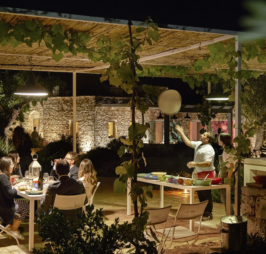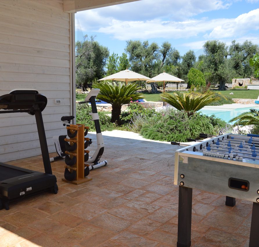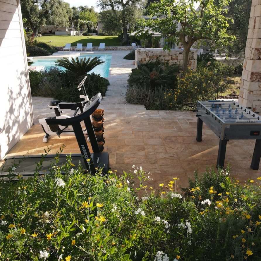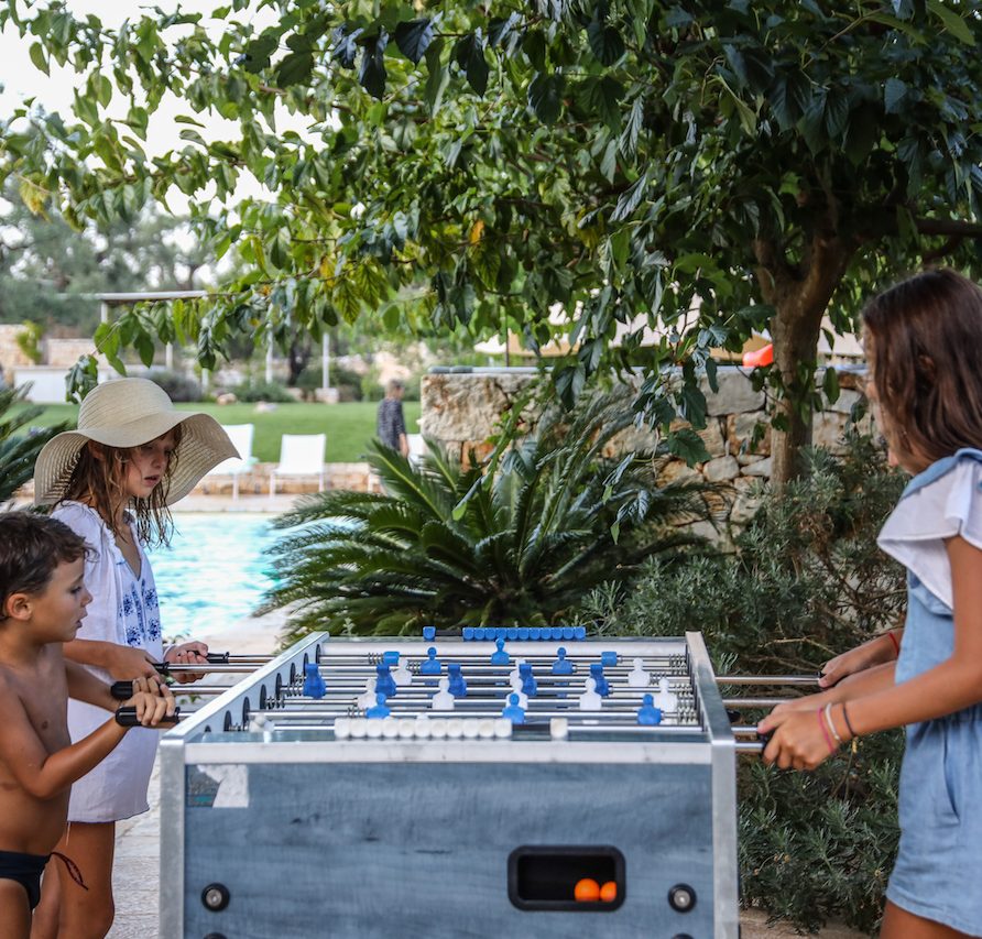 The brothers have always loved contemporary art so they decided to bring to the Ostuni Art Resort part of their collection of the best contemporary Italian and foreign emerging artists. A variety of services can be provided on request, including a local chef who cooks traditional Apulian meals for guests, live music and traditional dancing, or a cheesemaker making mozzarella, all directly at the resort. All of this transports the guests closer still to the genuine lifestyle of Southern Italy. In addition to a good-sized swimming pool, guests can keep in shape using the small, well-equipped gym inside the pool house: there’s a treadmill, exercise bike, weights and floor mats. The ping-pong table outside guarantees fun as well. Anyone who loves the great outdoors will love taking a guided hike or going biking; and then of course there’s always sailing or diving, with the sea being so nearby. To the delight of adults and kids alike, the two football-loving brothers have also thought to provide a foosball table. The freedom of their guests is of the utmost importance to the Angella brothers. For this reason, all offers are individually bookable and custom made. Every guest can express his or her wishes, though nobody must.