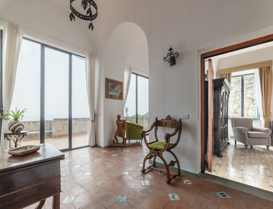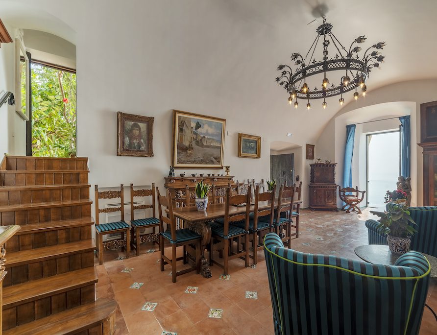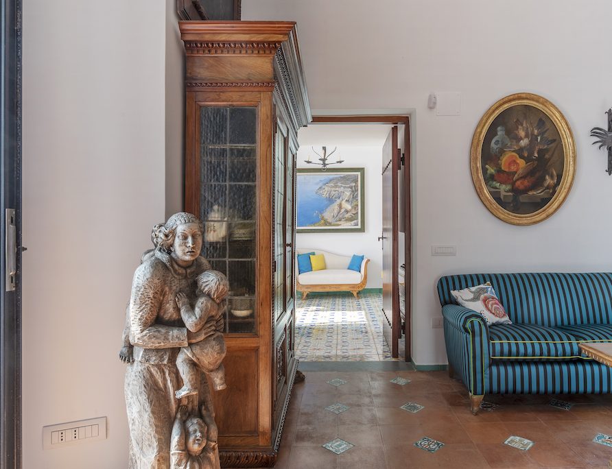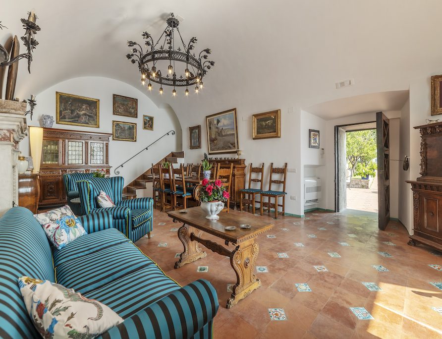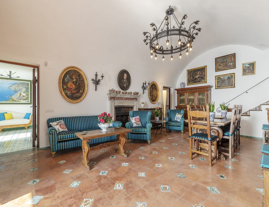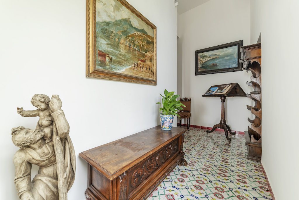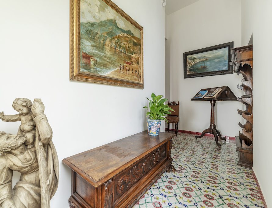 The interiors of the villa are furnished with antiques, collections of paintings and sculptures. The tiled floors are decorated with precious period ceramics from the renowned Vietri tradition and those replaced, as part of the recent renovation, were crafted by local artisans.