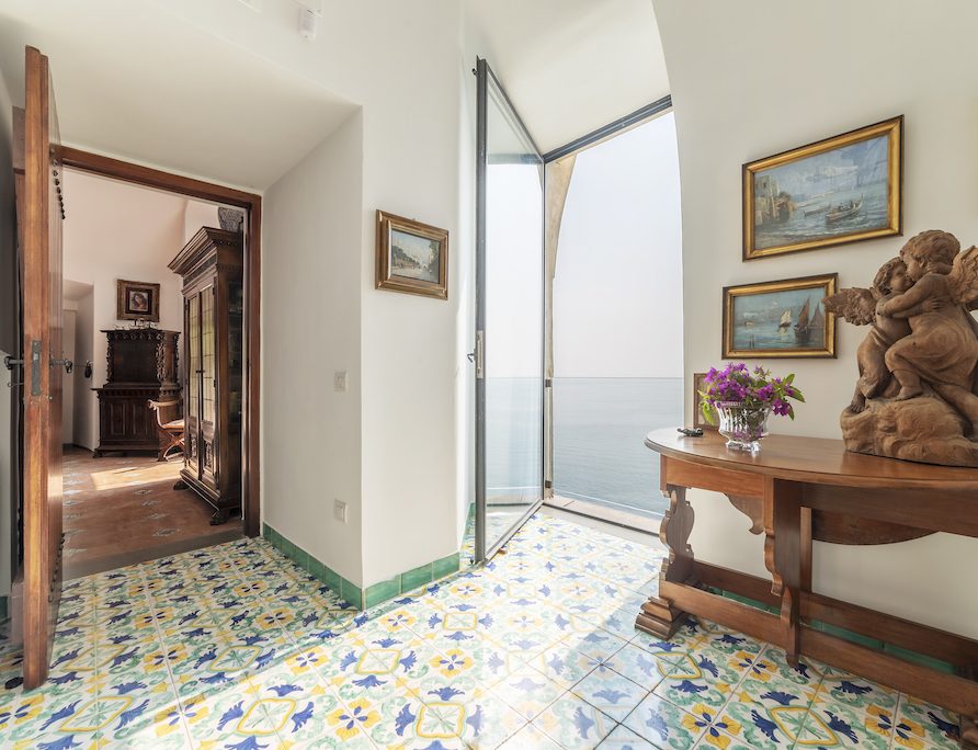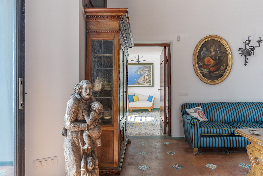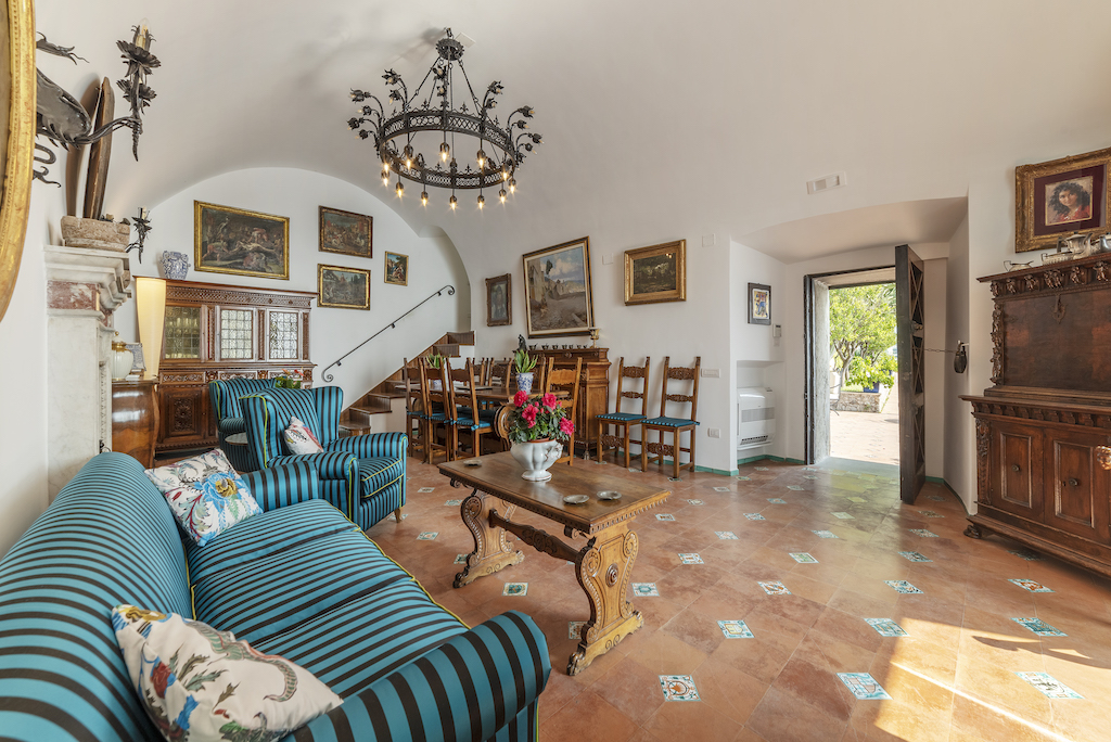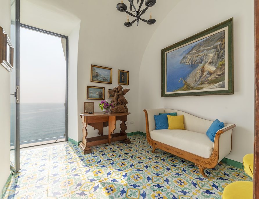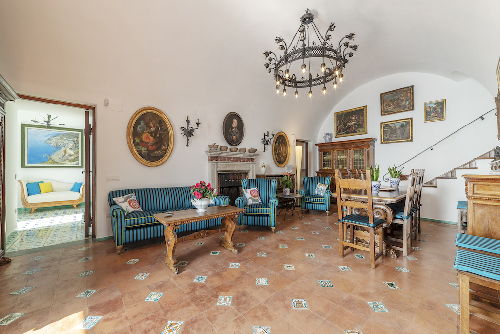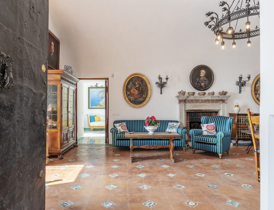 The interiors of the villa are furnished with antiques, collections of paintings and sculptures. The tiled floors are decorated with precious period ceramics from the renowned Vietri tradition and those replaced, as part of the recent renovation, were crafted by local artisans.