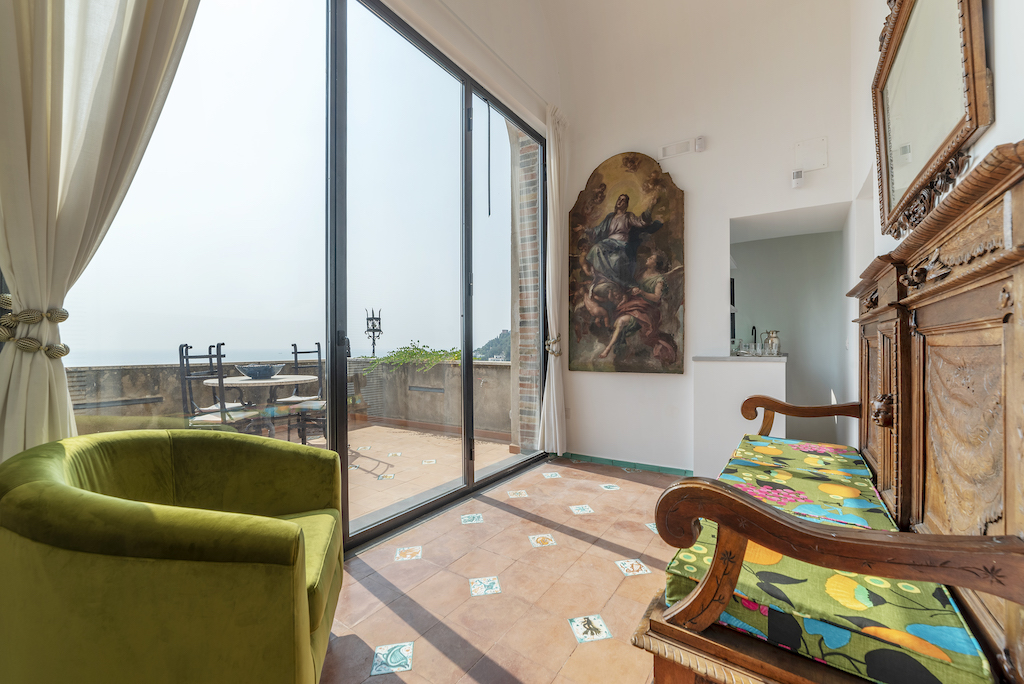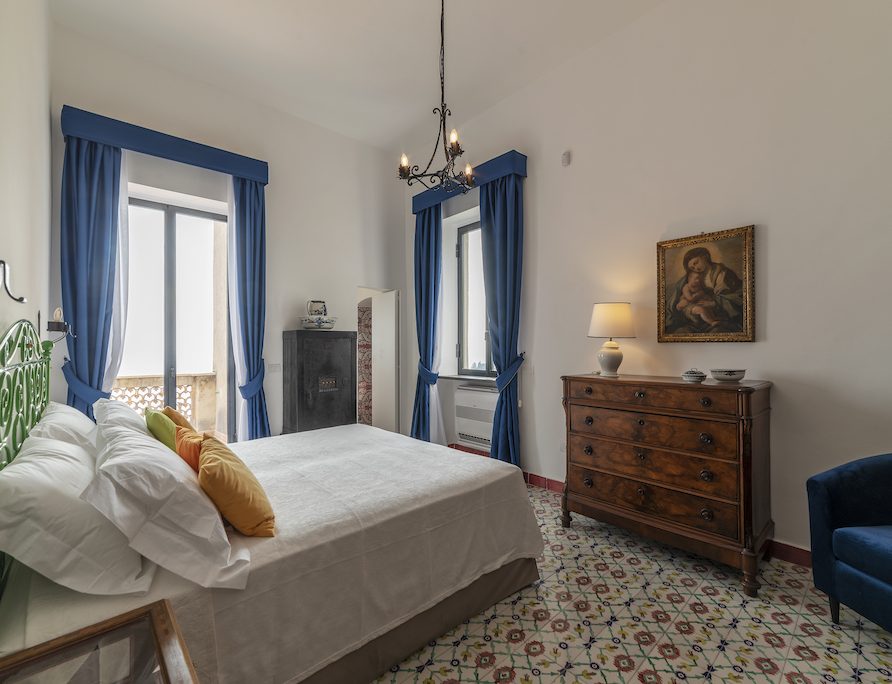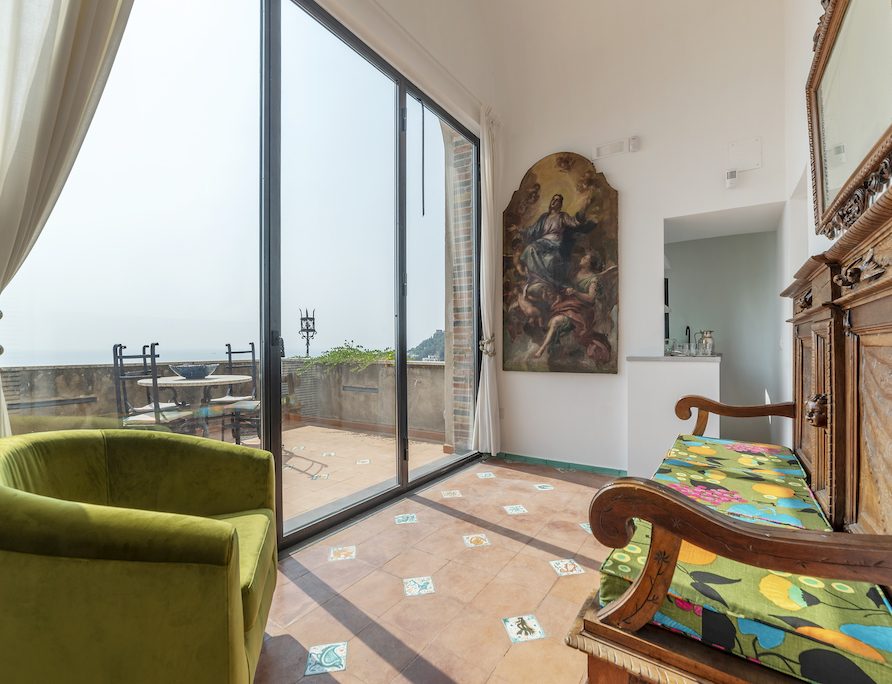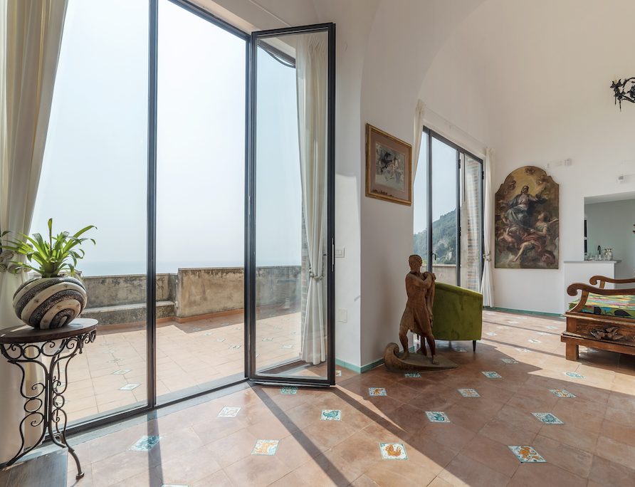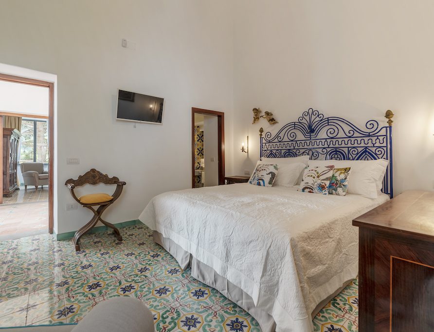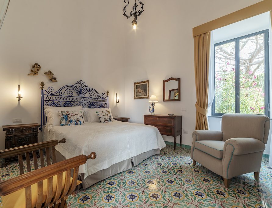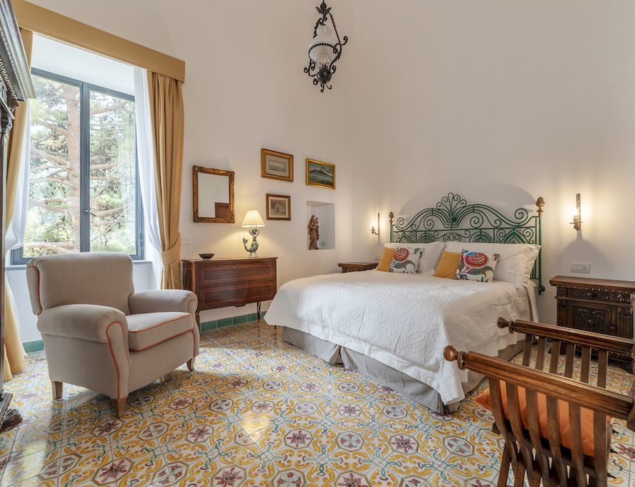 The interiors of the villa are furnished with antiques, collections of paintings and sculptures. The tiled floors are decorated with precious period ceramics from the renowned Vietri tradition and those replaced, as part of the recent renovation, were crafted by local artisans.