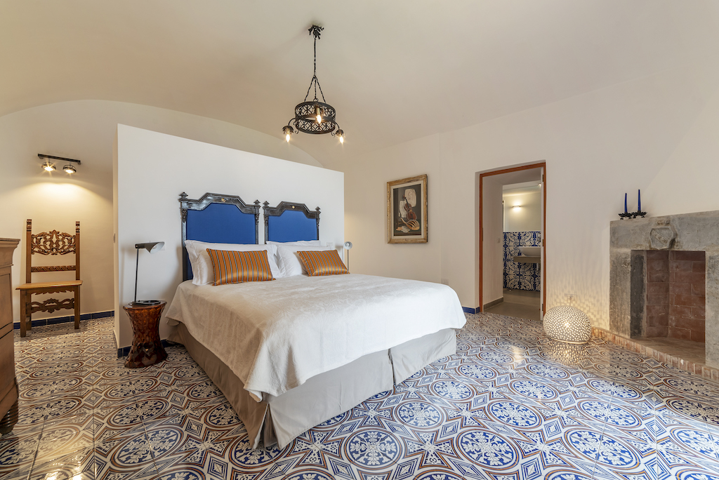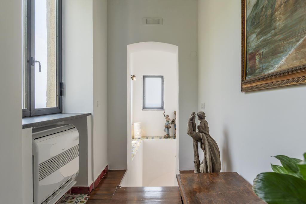 On the top floor, an antique and impressive bookshelf develops along the wall of the aisle/access to two other double bedrooms, both with en-suite and direct access to the rooftop terrace with a limitless view of sky and sea.