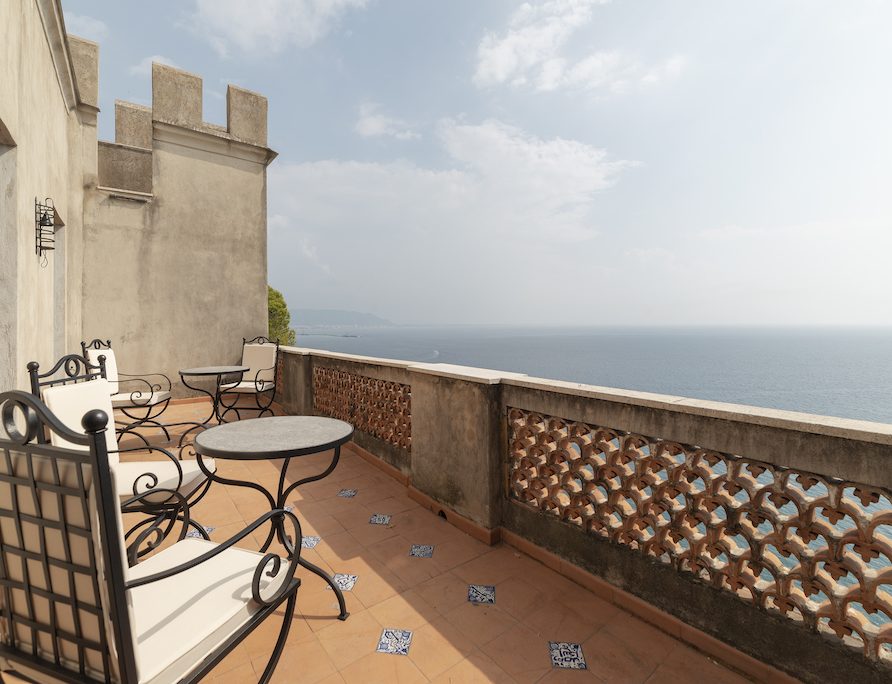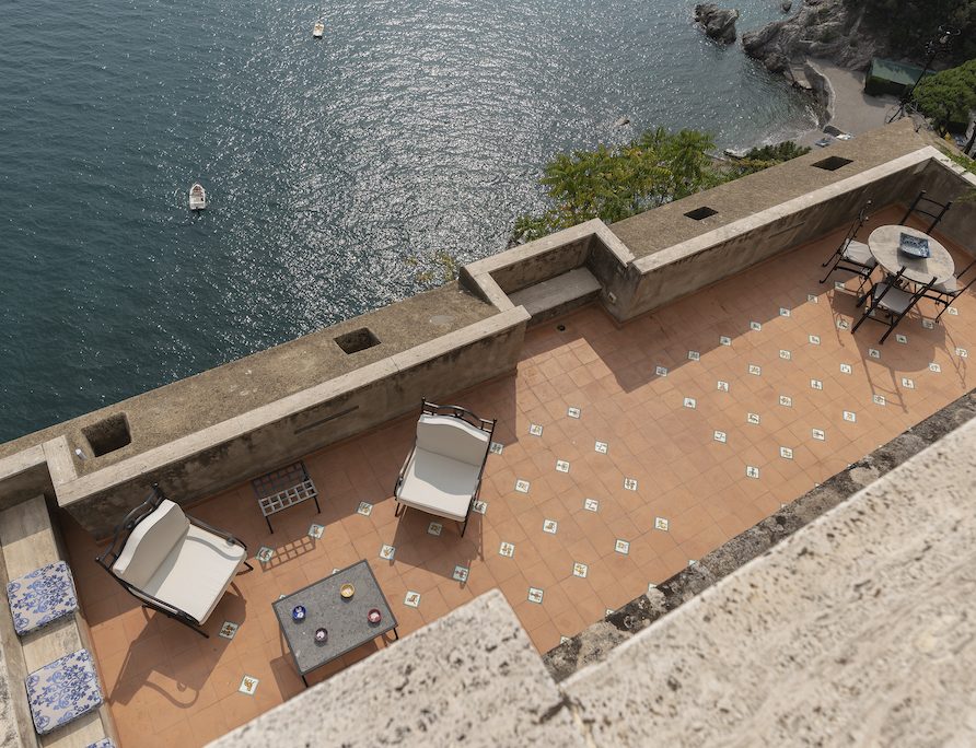 The external areas of the Tower leave the guests breathless, being immersed in the green of the Mediterranean maquis and, at the same time, facing the deep blue of the sea of the Amalfi.