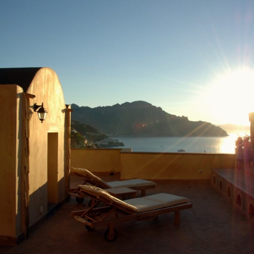 The wonderful stretch of coast, between Amalfi and the little village of Conca dei Marini, scenery of indescribable beauty embellished by the beautiful sea’s and coast’s view, welcomes like a ring its precious gem Villa Aura. The charming Villa, located in Vettica, a small village around 3 Kilometres from the Amalfi centre, is easily reachable from the main road SS 163 by climbing 116 steps, leading to the very panoramic and quiet Villa, surrounded by the lush green Mediterranean vegetation.