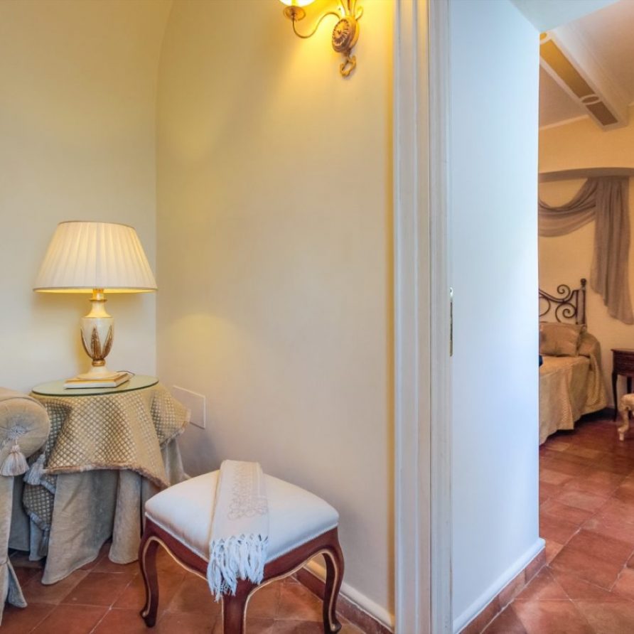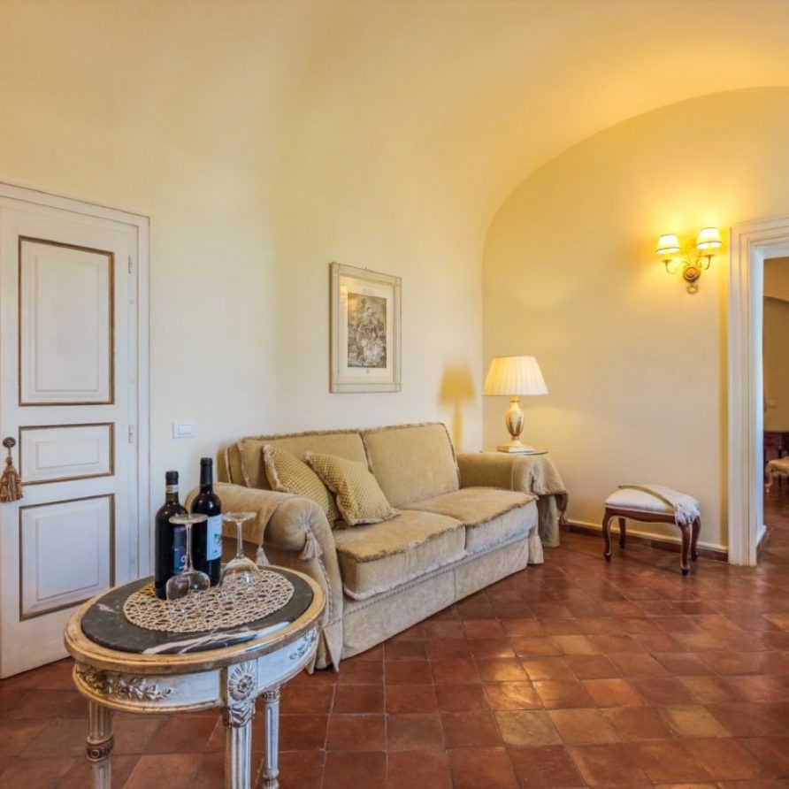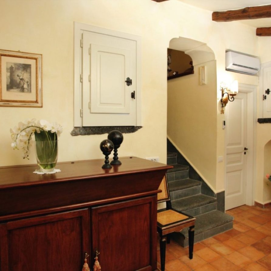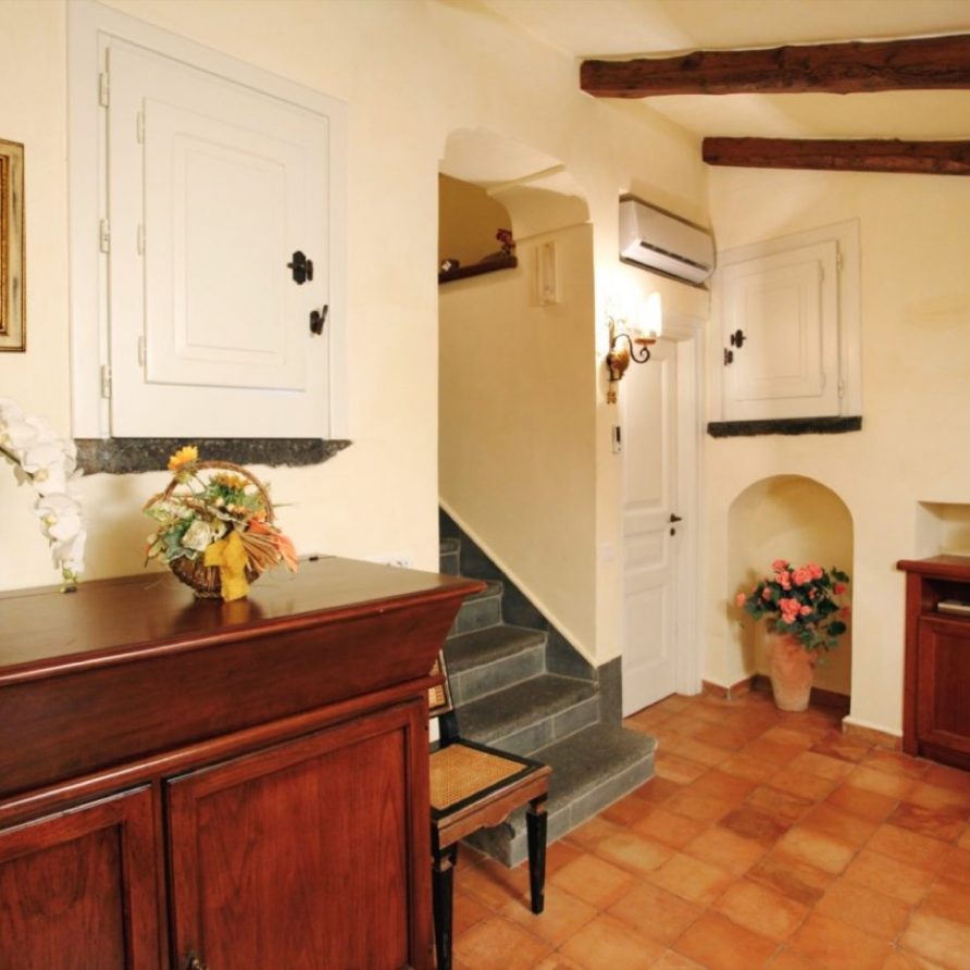 Villa Aura is distributed on three levels divided as follows: First Level: Across the wonderful terrace 12 stairs lead to the beautiful annex that is composed of a foyer, furnished with wicker armchairs and table, a living/dining room with table, chairs and kitchen cupboard, a double bedroom en suite with shower bathroom, a second double bedroom en suite with shower bathroom and with a balcony opening on the ancient well of the 12th century. Second Level: 30 external steps lead to the upper level, which opens itself to the main floor of the Villa. On this level is situated a beautiful swimming pool surrounded by a wonderful terrace, equipped with garden furniture, outdoor shower (hot and cold water) and a charming ancient well.
