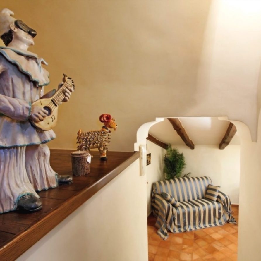 Villa Aura has a habitable surface of about 300 square metres, distributed on three levels connected by external staircases and boasts wonderful outdoor equipped spaces (about 700 square metres) welcoming terraces and gardens. The Villa’s gate opens into a well kept equipped garden with an extensive view of the sea and the coast. The elegant and fine Villa is furnished with precious ceramic and wrought iron pieces and with modern/ancient design furniture.