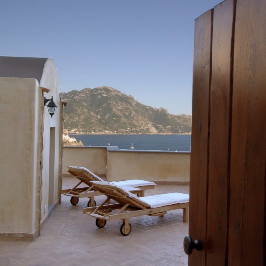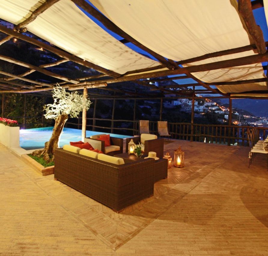 Villa Aura is situated at few steps from the renowned “Al Pesce d’Oro” Restaurant where the guests can enjoy the dishes of the Mediterranean cuisine and also avail of the delivery service. The nearby coastal resorts such as Amalfi, Positano, Ravello and Praiano are easily reachable by car or by using the public transport service SITA (the bus stop is located on the SS163 just after the stairs that lead to the Villa).