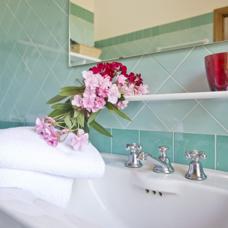 Master bathroom: The only bathroom with an ancient-style bathtub and fittings, it is undoubtedly another place where our guests can enjoy the view.