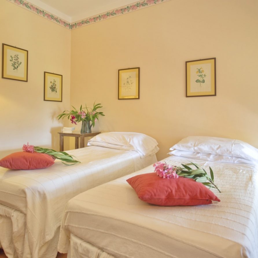 Opposite to the twin/joinable bedroom there is a twin – non joinable- bedroom with an old (18th cent.) Lucca-style decorated wardrobe.