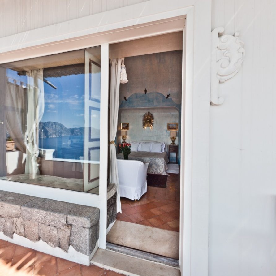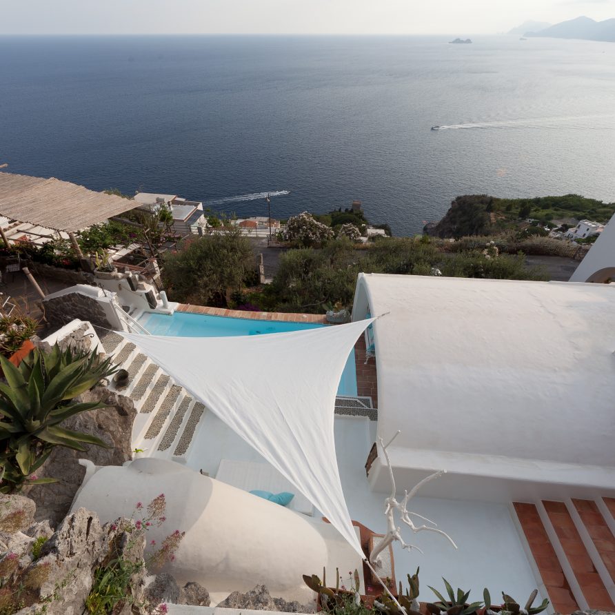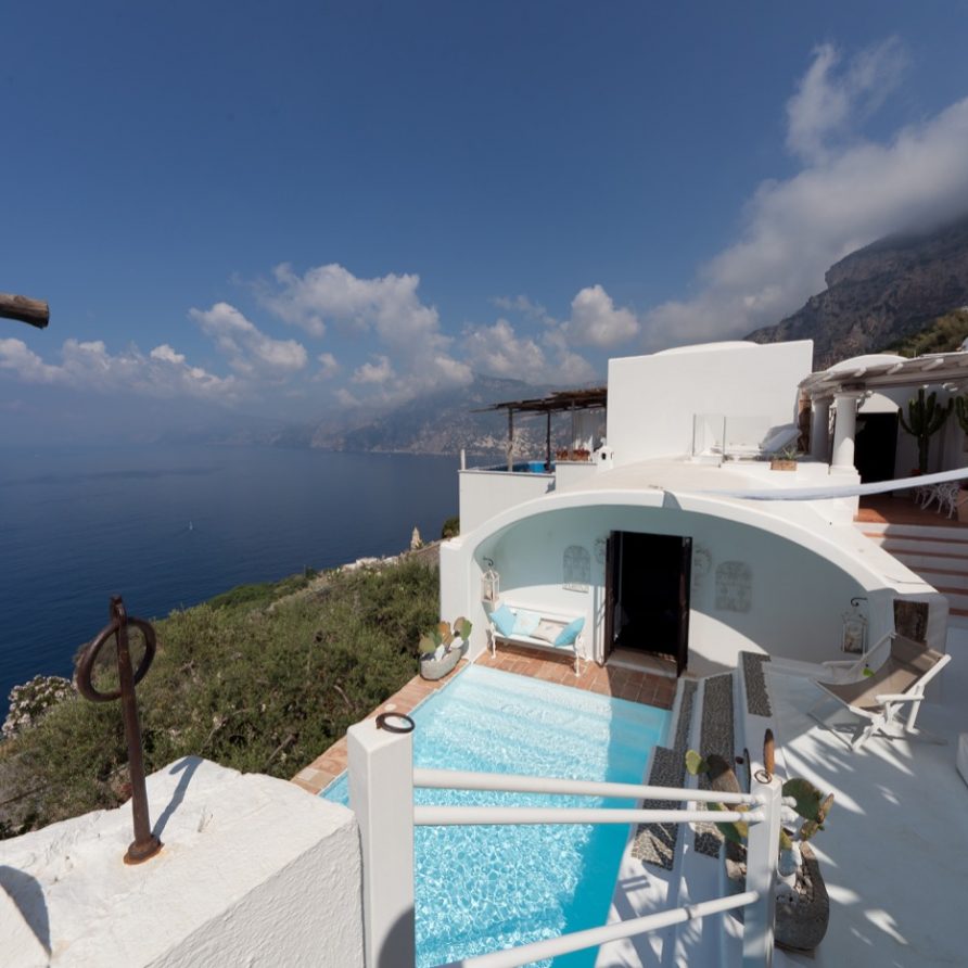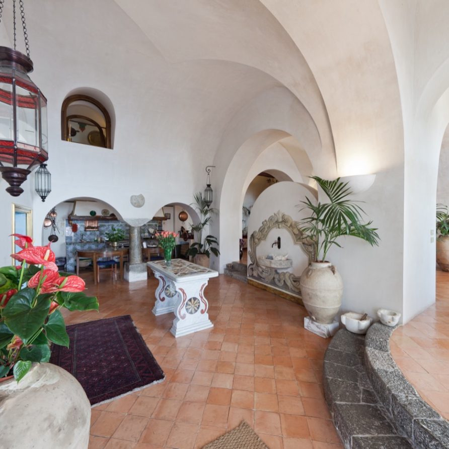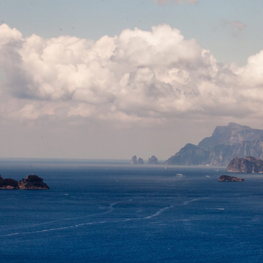 Located between lemons, olive trees surrounded by the Mediterranean, the Villa has a spectacular view suspended between sky and sea and overlooks a wonderful country, Praiano, in front of one of the most beautiful views in the world: the island of Capri, the Faraglioni, the Sorrento peninsula, Positano, and the Li Galli archipelago (formerly Nureiev property as well as the Island of the Sirens in the Odyssey of Ulysses).