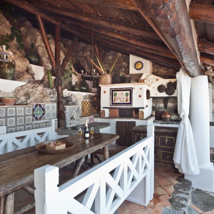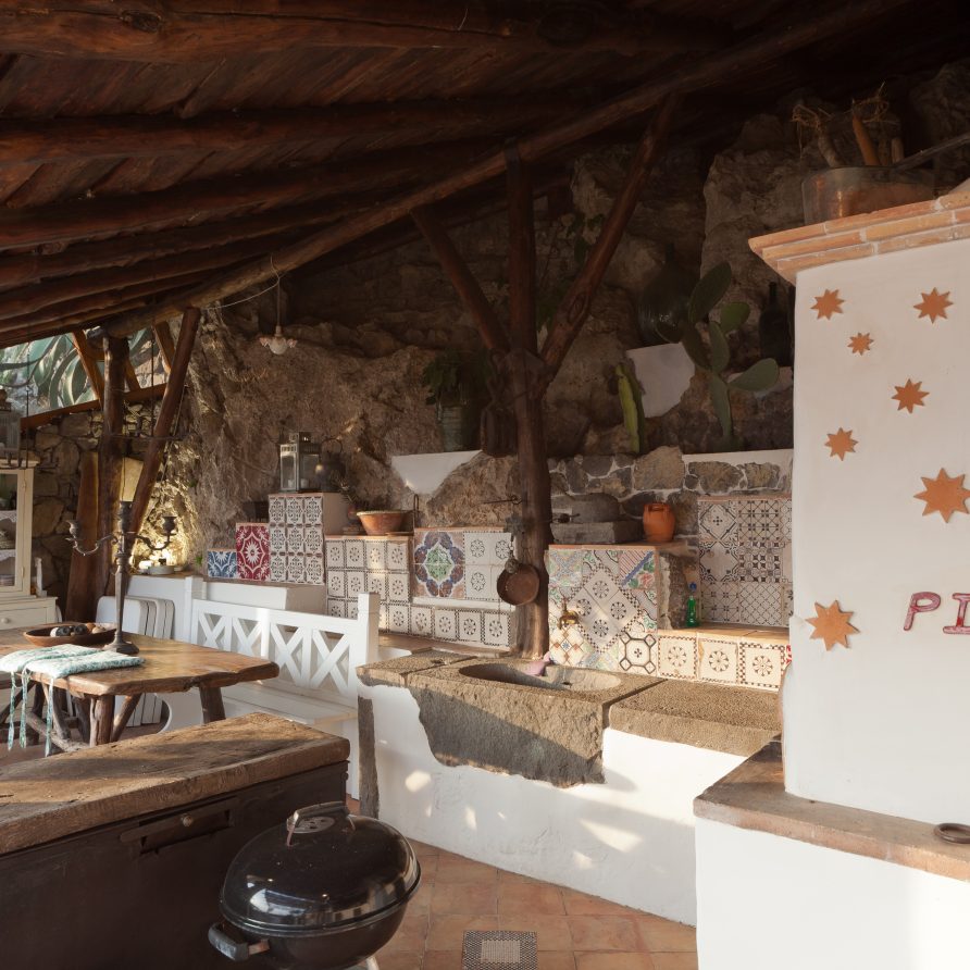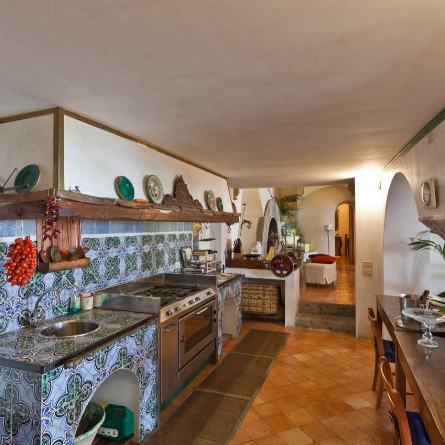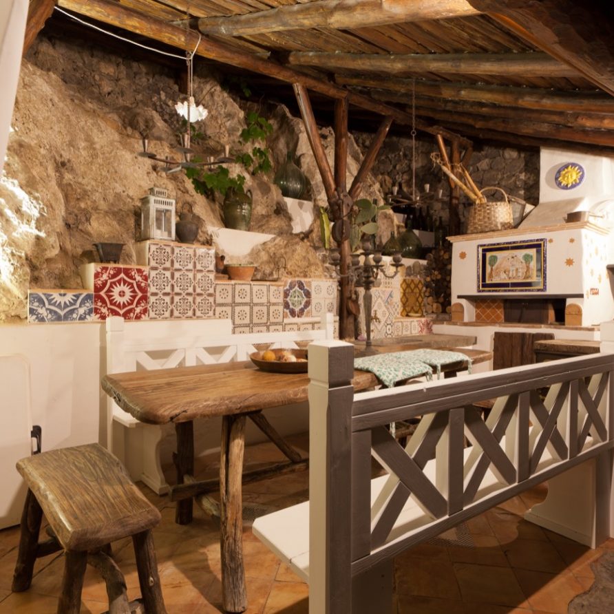 In the well-kept interior and in the vaulted rooms an old kitchen with Neapolitan tiles from the 18th century was refitted, where the most traditional Mediterranean cooking school of the ancient fishing village can be learned and tasted.