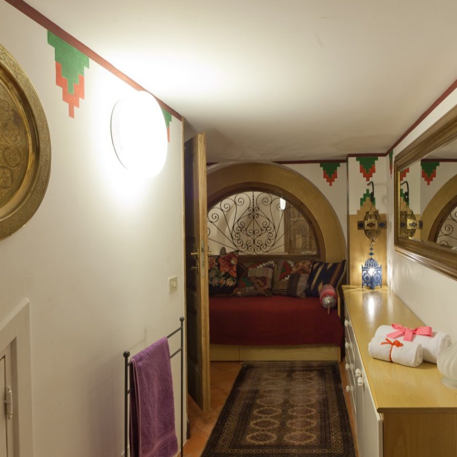 The house is all in white lime, wrought iron wood and stone, restored on ancient walls of fascinating Arab architecture nothing is left to chance. The rooms and the rooms are all finely furnished with period furniture, and unfold in a succession of barrel vaults, cross vaults, columns, and ancient capitals.