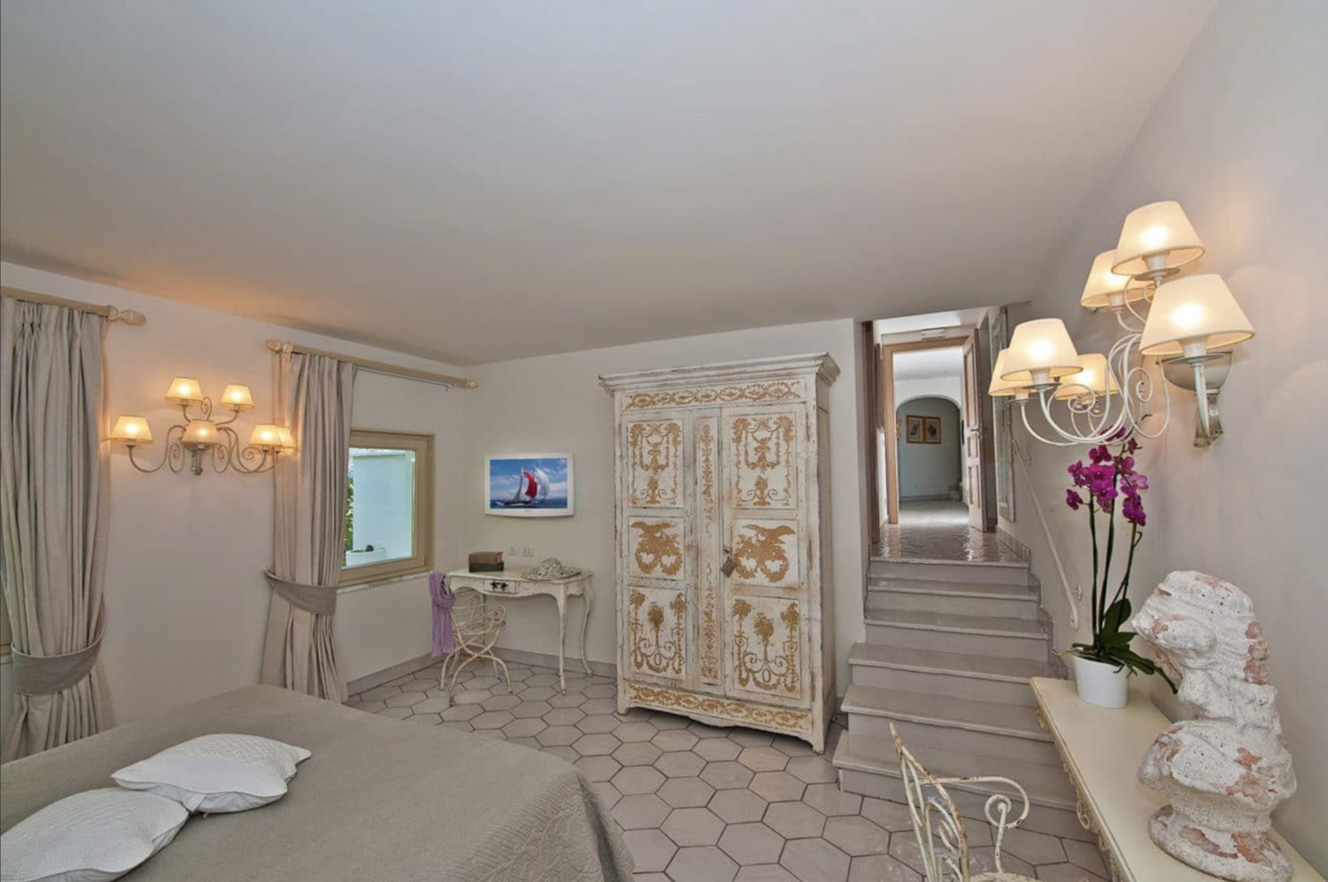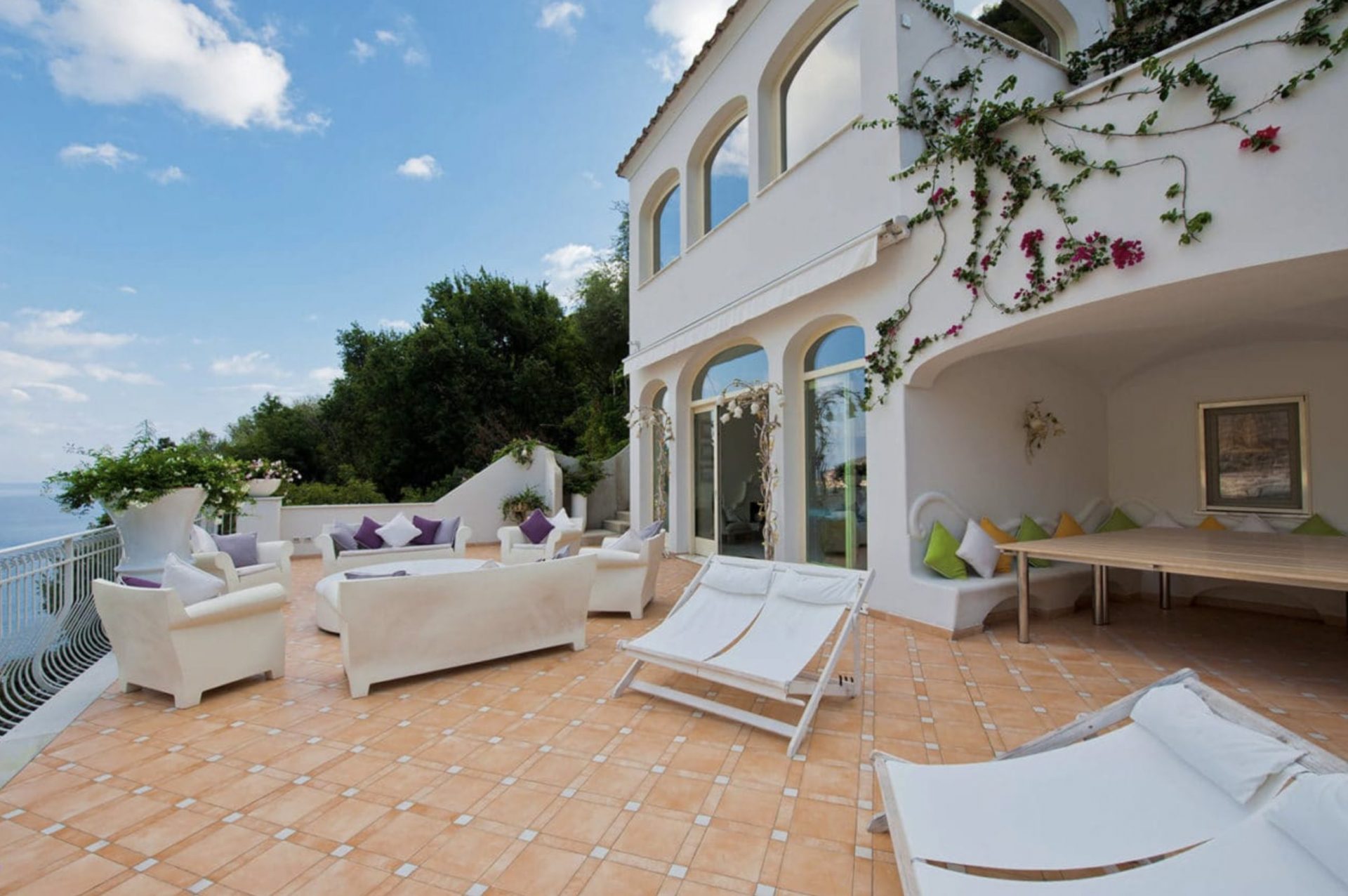 This villa features private access to public stairs leading to the town center and to the beach.