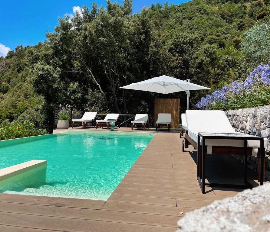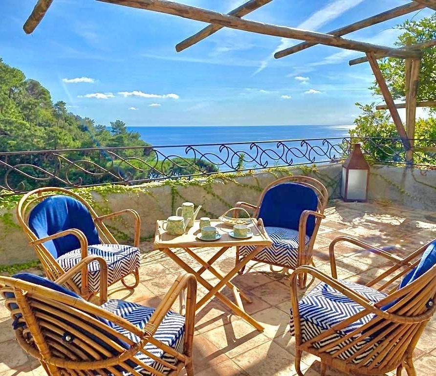 This charming villa, with an area of 160 sqm, surrounded by large and lush green spaces, lush lemon and olive groves, also offers unparalleled romantic views.