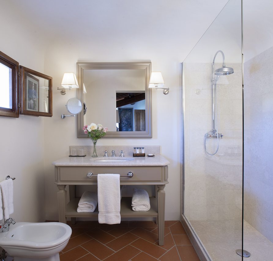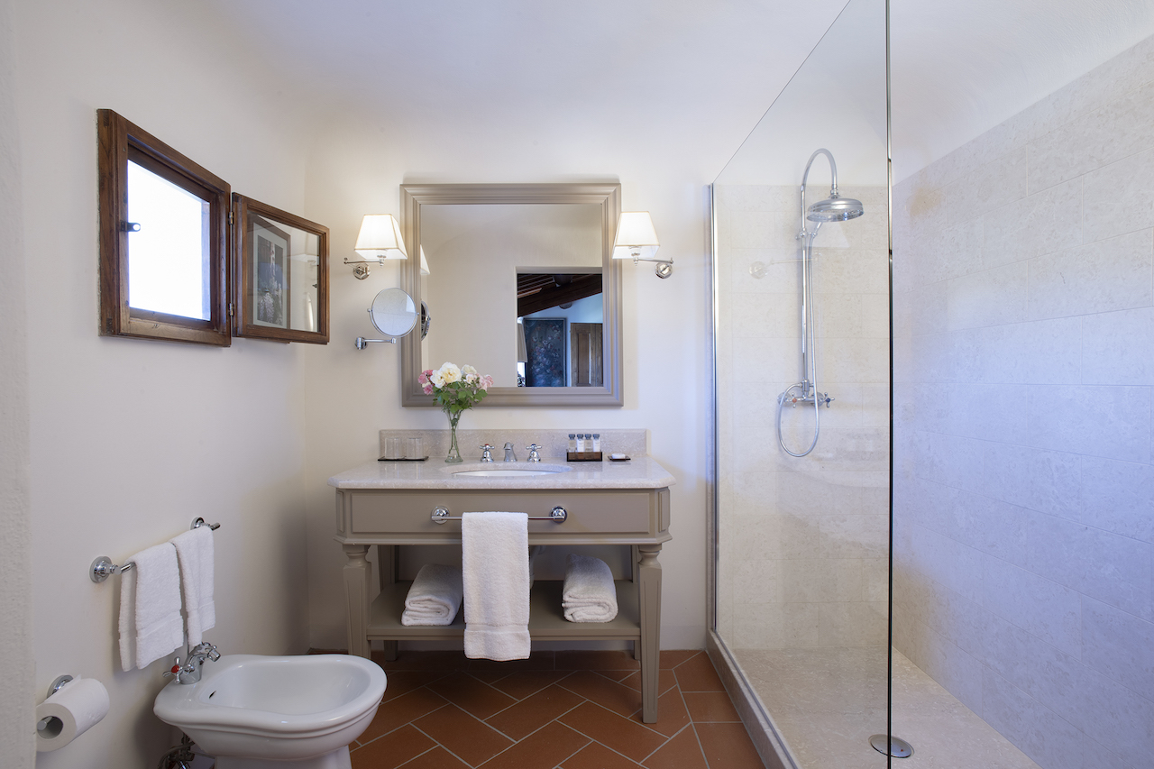At guests’ Estate disposal : the Reception, open every day, offering concierge service; the “ Tuscan Bistro ” a shop-café with local, organic foods and wines open for breakfast, light lunch and dinner; two tennis courts and eight swimming pools, one for each Villa with exclusive use.