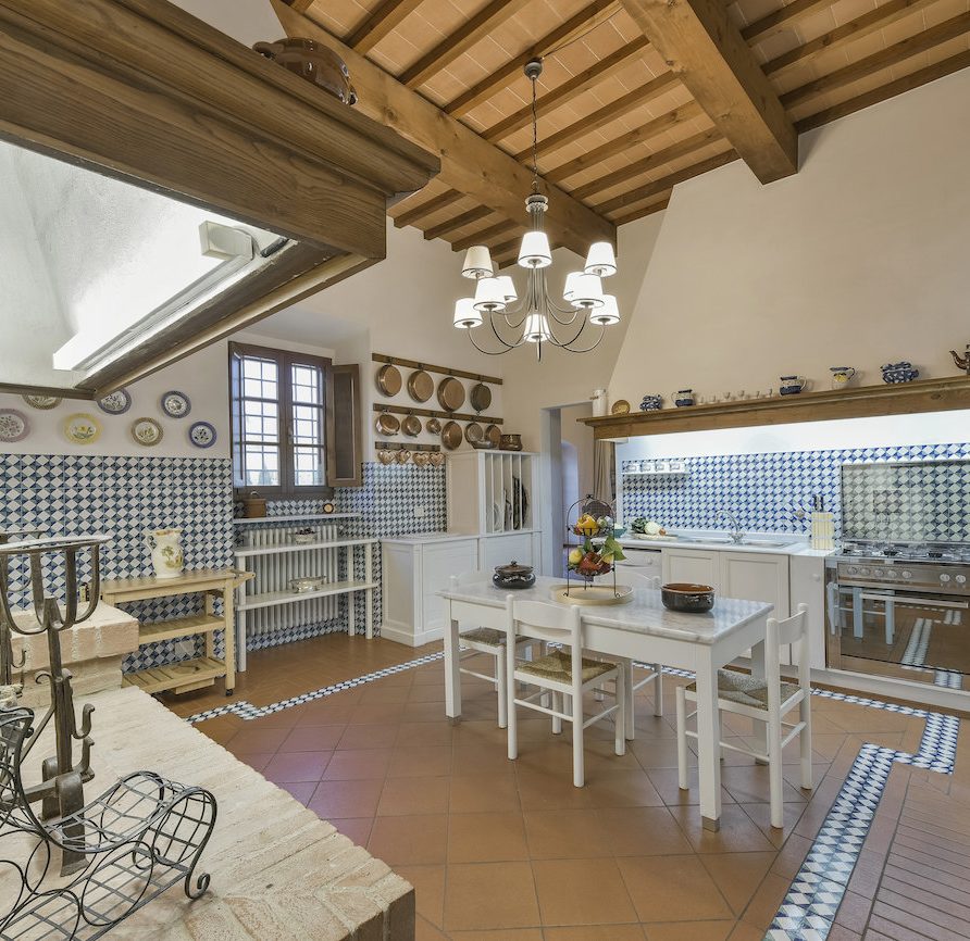 MAIN VILLA GROUND FLOOR ▪main entrance from a traditional Tuscan “ loggia” ▪very spacious living room with numerous windows and French doors opening onto a panoramic terrace ▪very comfortable dining room, nicely furnished ▪large kitchen, fully equipped ▪guest bathroom