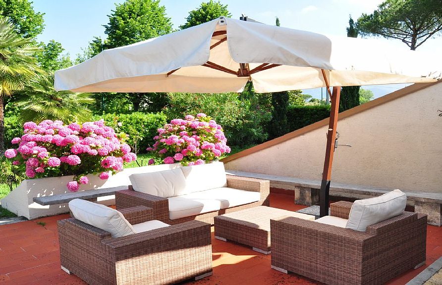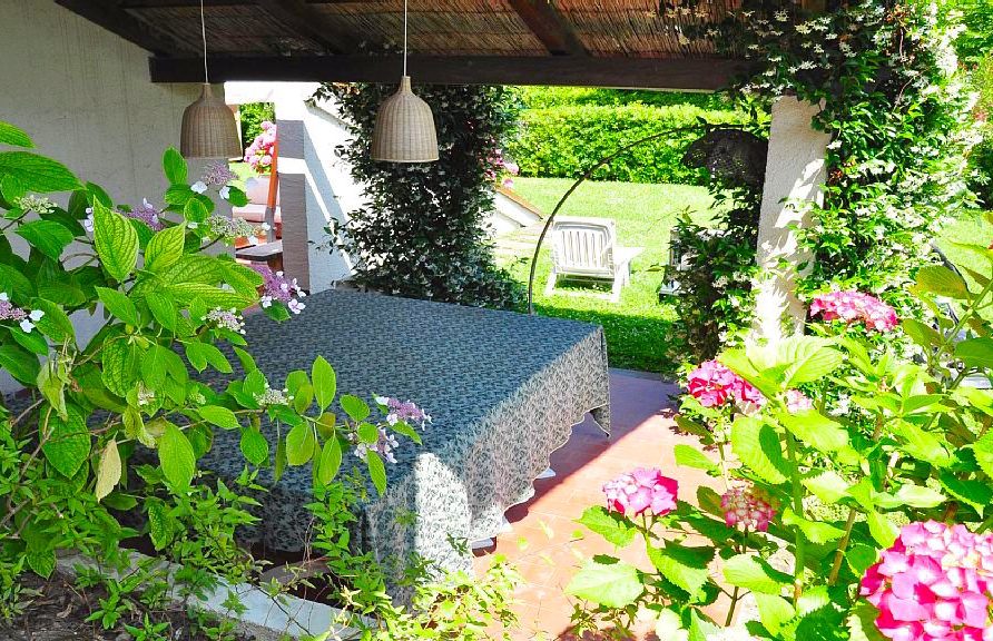 The villa is surrounded by a large garden, with a large newly built swimming pool, where there are a shower, walk, sun-beds, a veranda with “outdoor lounge” accompanied by a large tent where guests can relax when they want to keep shelter from the sun.