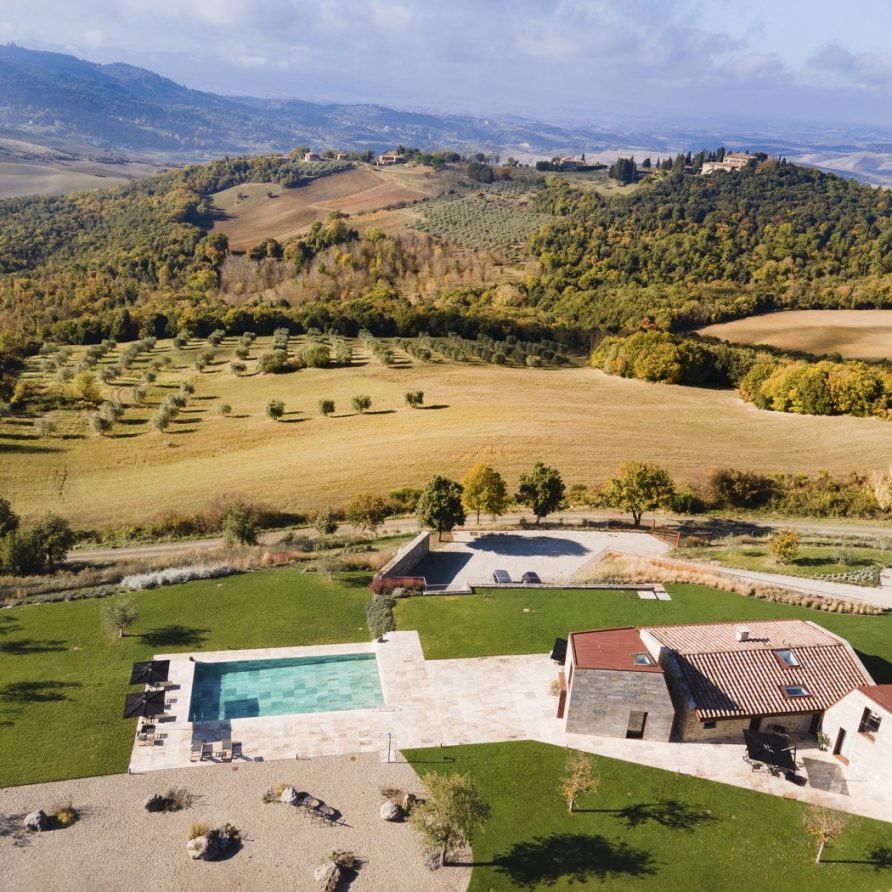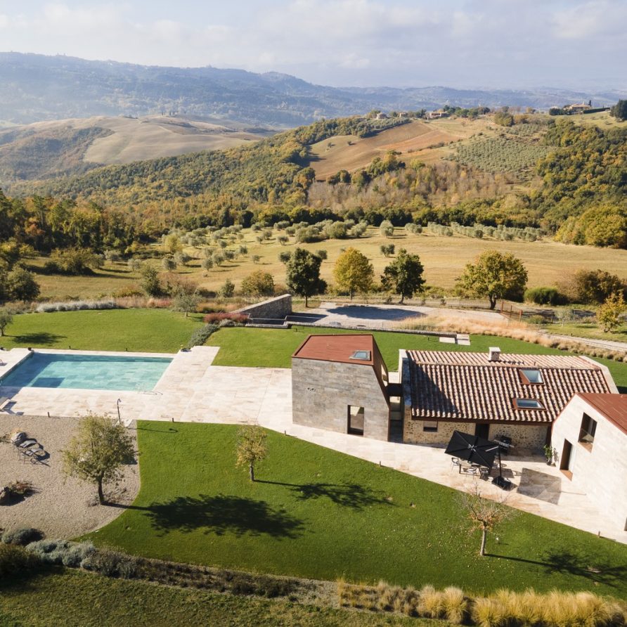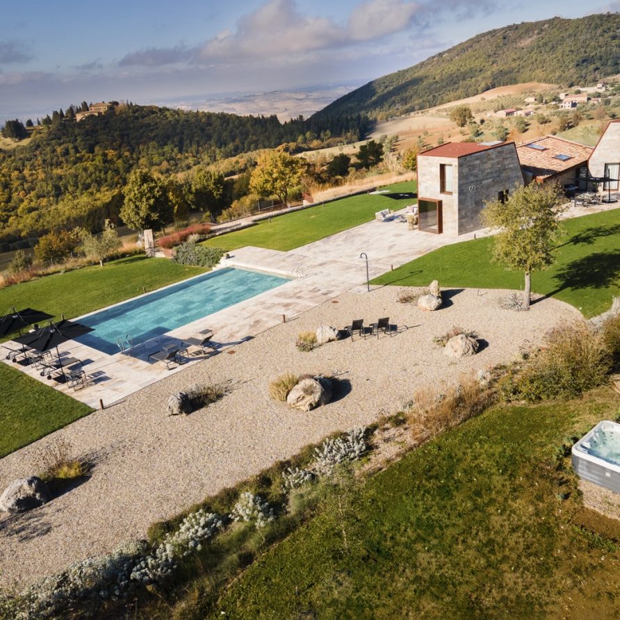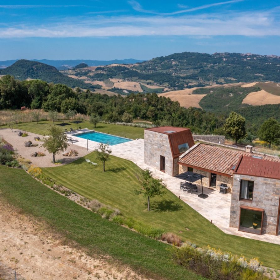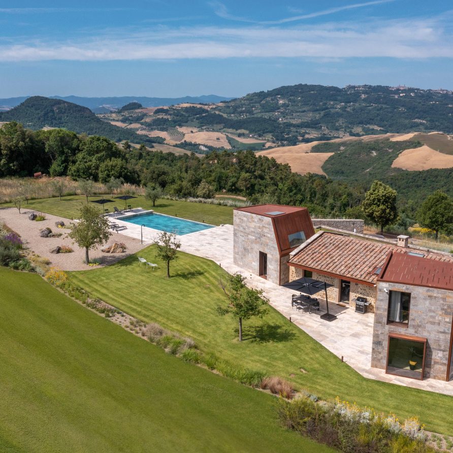 This unique house is set in a dominant and spectacular position facing one of Tuscany’s most precious gems – Volterra – and immersed in an enchanted landscape full of contrasts, atmospheres, sounds and colours, Villa La Volta embraces elegance and luxury with a 360-degree view of the Tuscan hills, representing the excellence of traditional and innovative Italian architecture, giving its guests an unforgettable immersive experience.