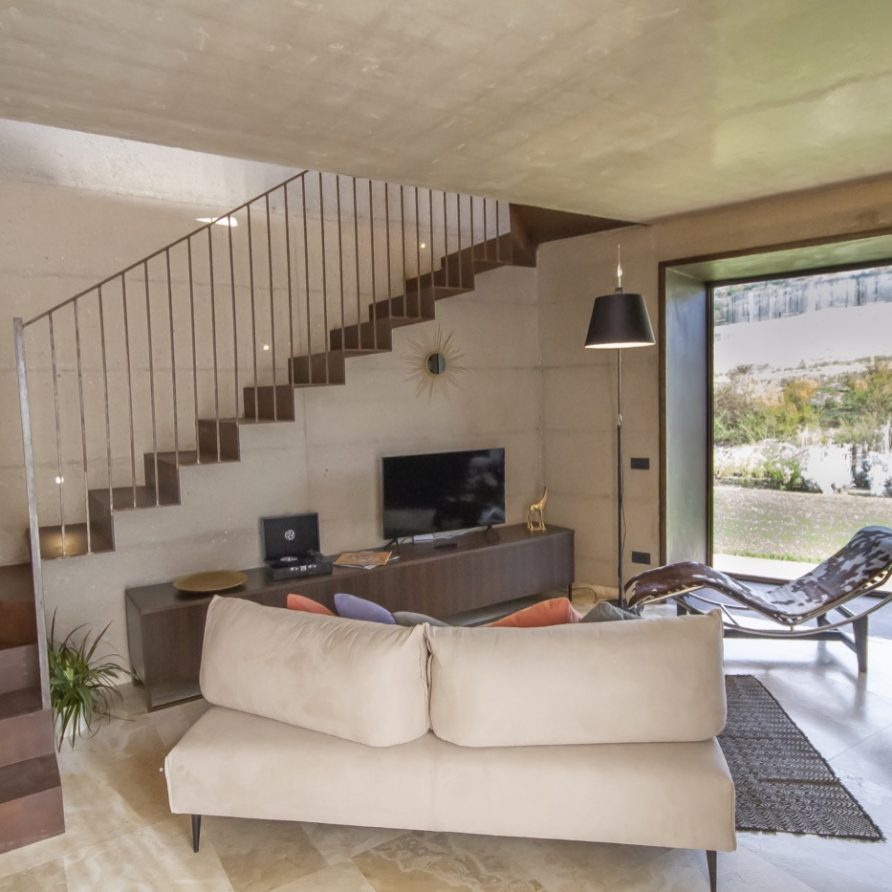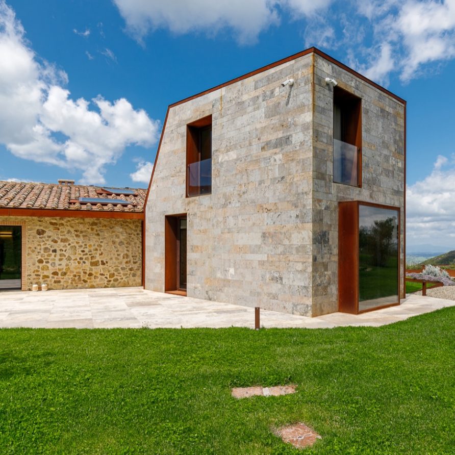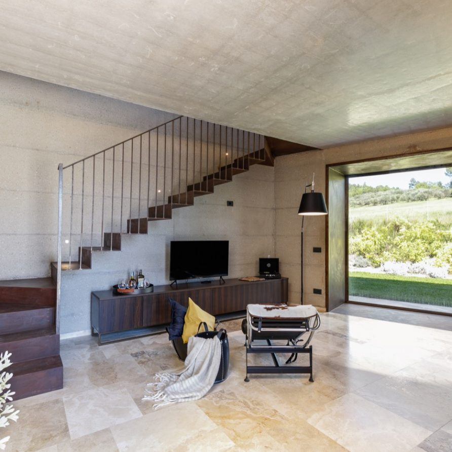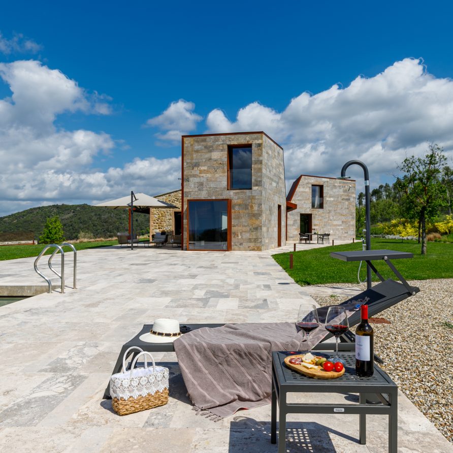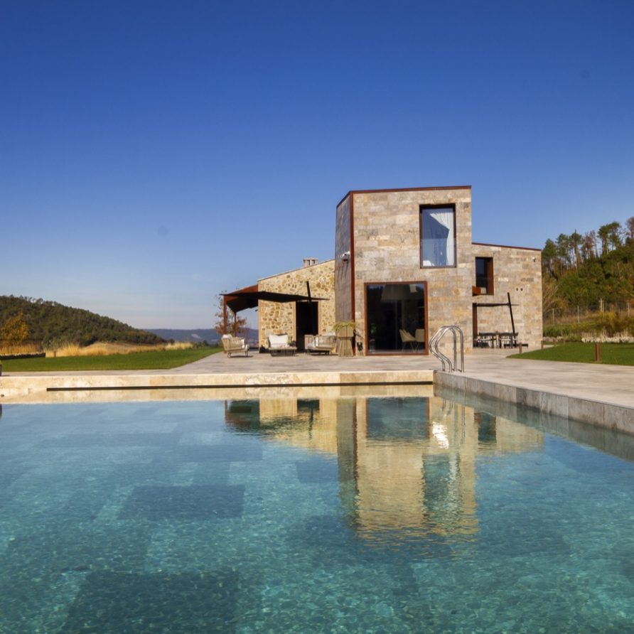 Built using the same material, the stone, and surrounded by the greenery that fades into the sunlit valley, the villa blends in with the land on which it stands: the combination of the sharpness of the lines, the scenic shadows of the structure and the vastness of the panorama bring guests to experience the local history, its charm and its legends.
