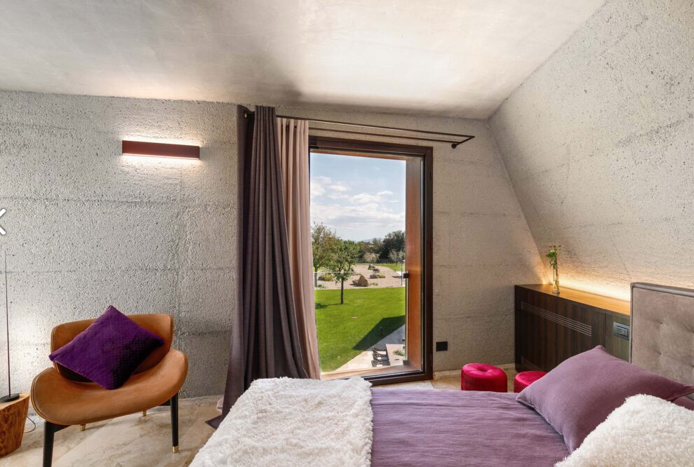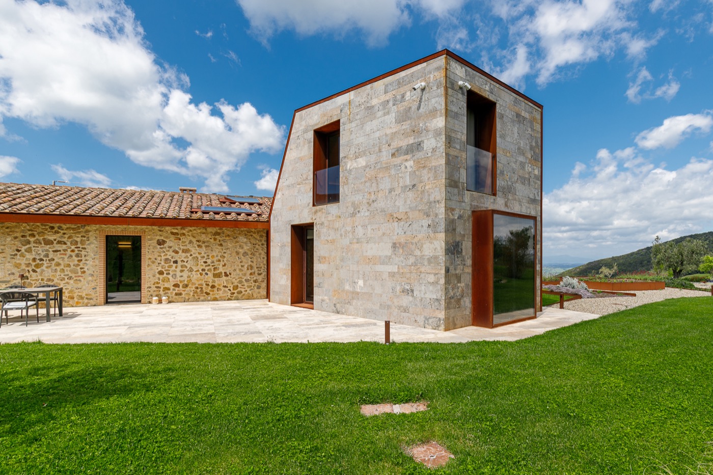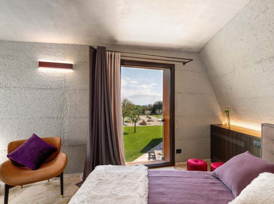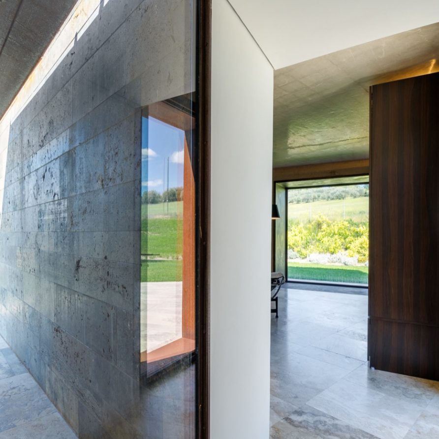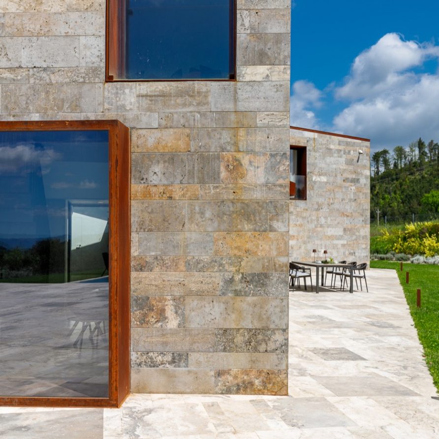 Built using the same material, the stone, and surrounded by the greenery that fades into the sunlit valley, the villa blends in with the land on which it stands: the combination of the sharpness of the lines, the scenic shadows of the structure and the vastness of the panorama bring guests to experience the local history, its charm and its legends.