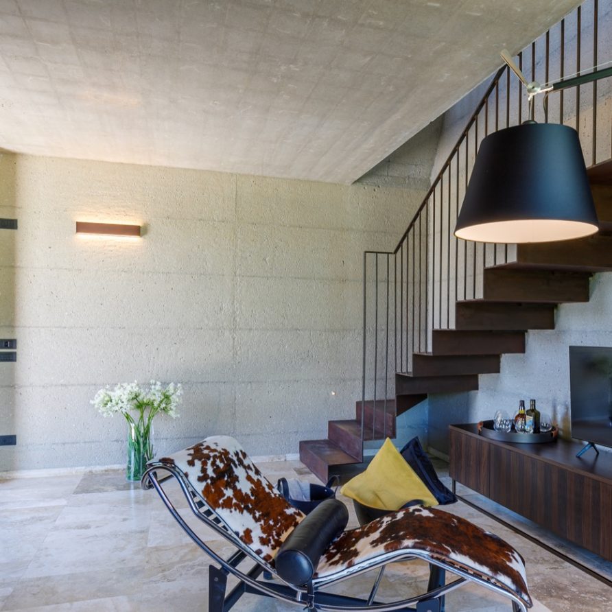 Made up of three harmonious major blocks, the villa is composed of refined design elements, complementing the rustic charm with the perfection of more minimal lines and shapes.