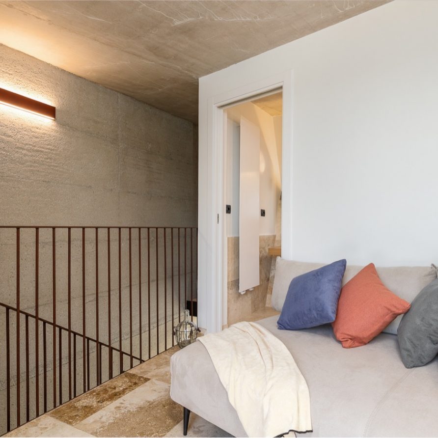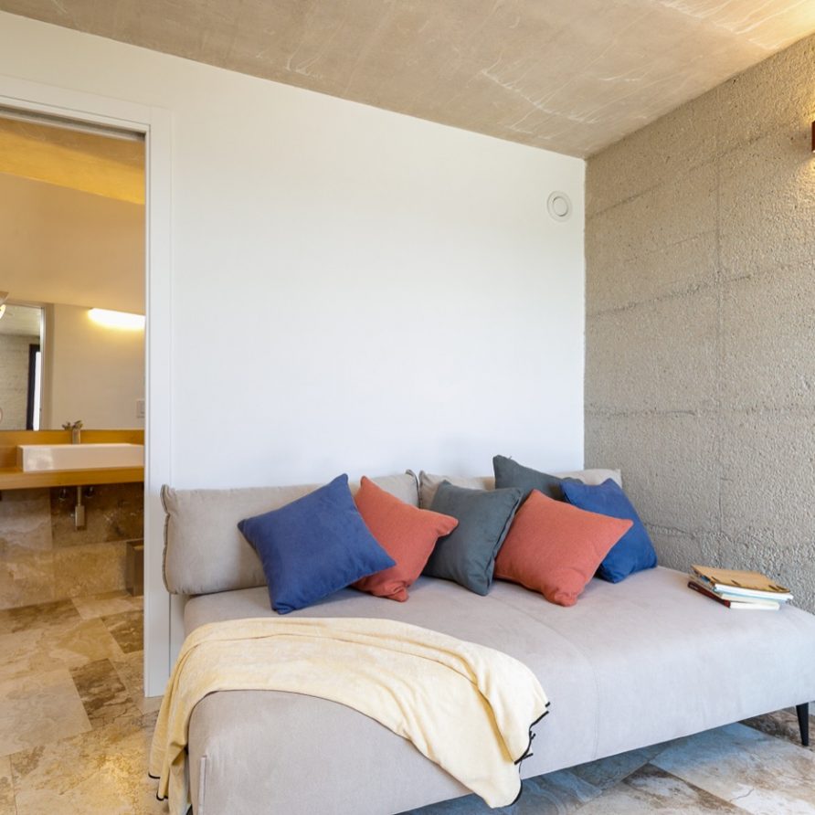 Once a small, compact rural unit made of stone, it is now a place of design suspended between valleys, woods, olive trees and the sound of the sea on the horizon.