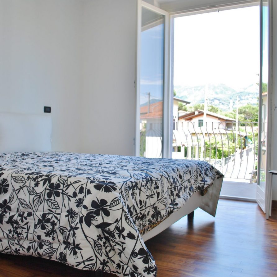 The house is located in a quiet area just a short walk from the center of Cinquale which is reached by walking through the bike path. The house is expanded , bright and fresh . From the balconies on the first floor there are magnificent views of the Apuan Alps . And ‘ tastefully decorated and extremely functional . It has two beautiful double rooms and two single rooms all with drawers and cupboards. Over the entrance with a kitchenette are 3 great services , a laundry room, an attic and a spacious basement .