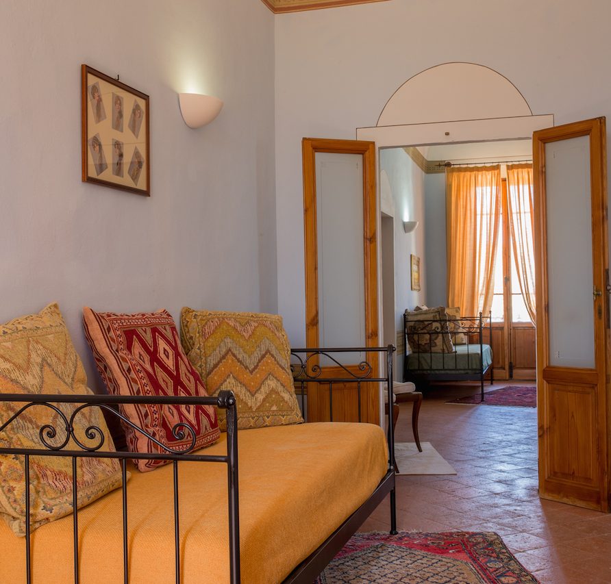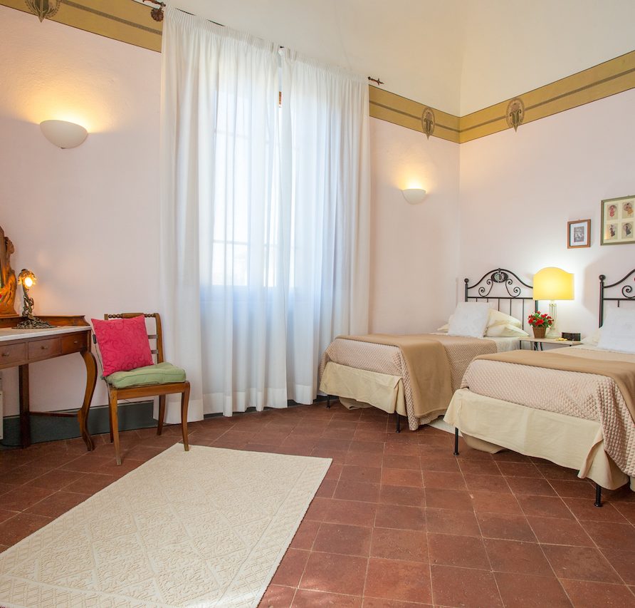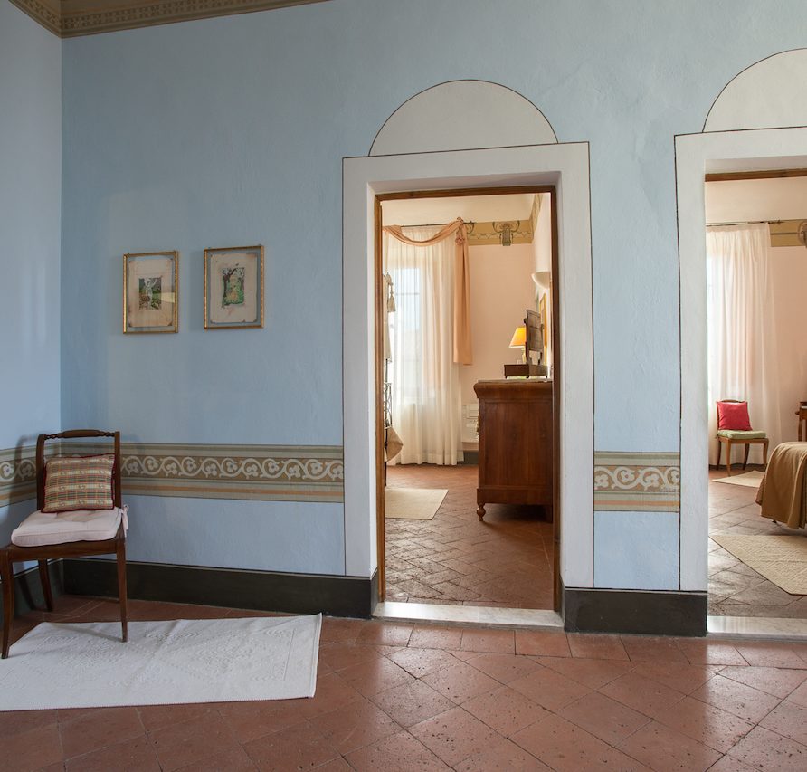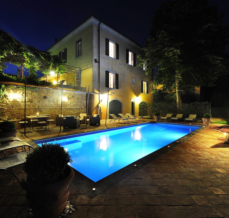 Situated on the top of a small hill, 155 metres above sea level and overlooking the magnificent scenery which surrounds the city of Volterra, the villa was built in the nearby town of Fabbrica by one of the noble families of the grand Duchy of Tuscany. Volterra is surrounded by olive groves and vineyards and has not lost the the authentic aura typical of the whole of Tuscany. The village developed around the original . tower and sronghold and one of the villas in the area is Villa Panoramica. It dates back to the 18 hundreds and is in the elegant Liberty style of the period. It was restructed many years ago , maintaining the original architectural characteristics.