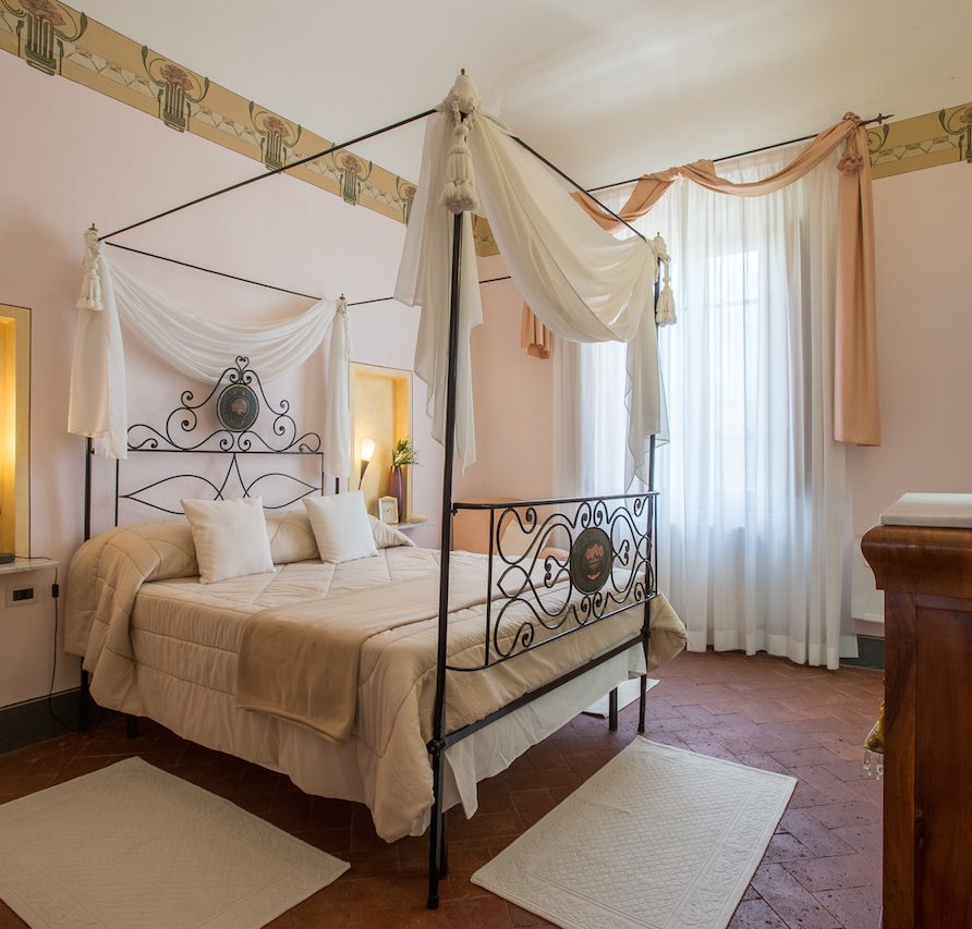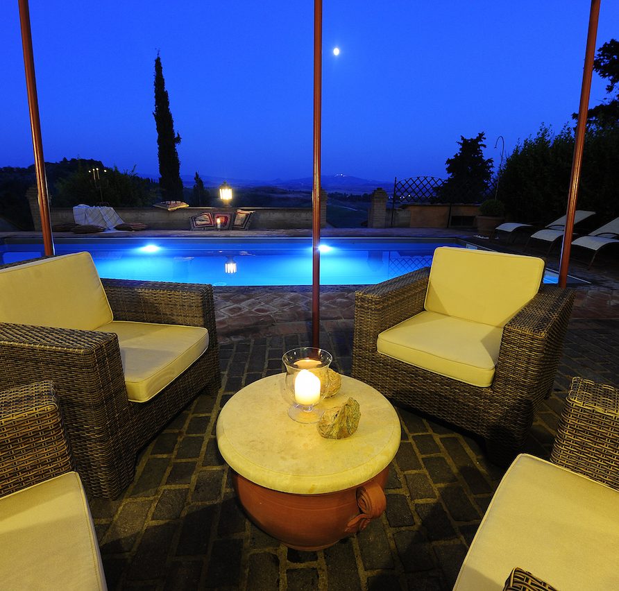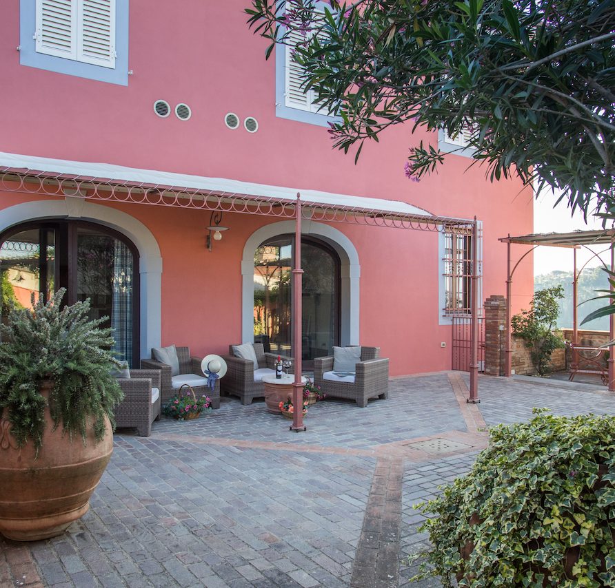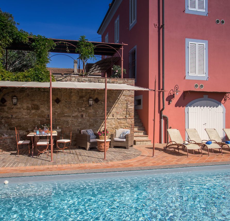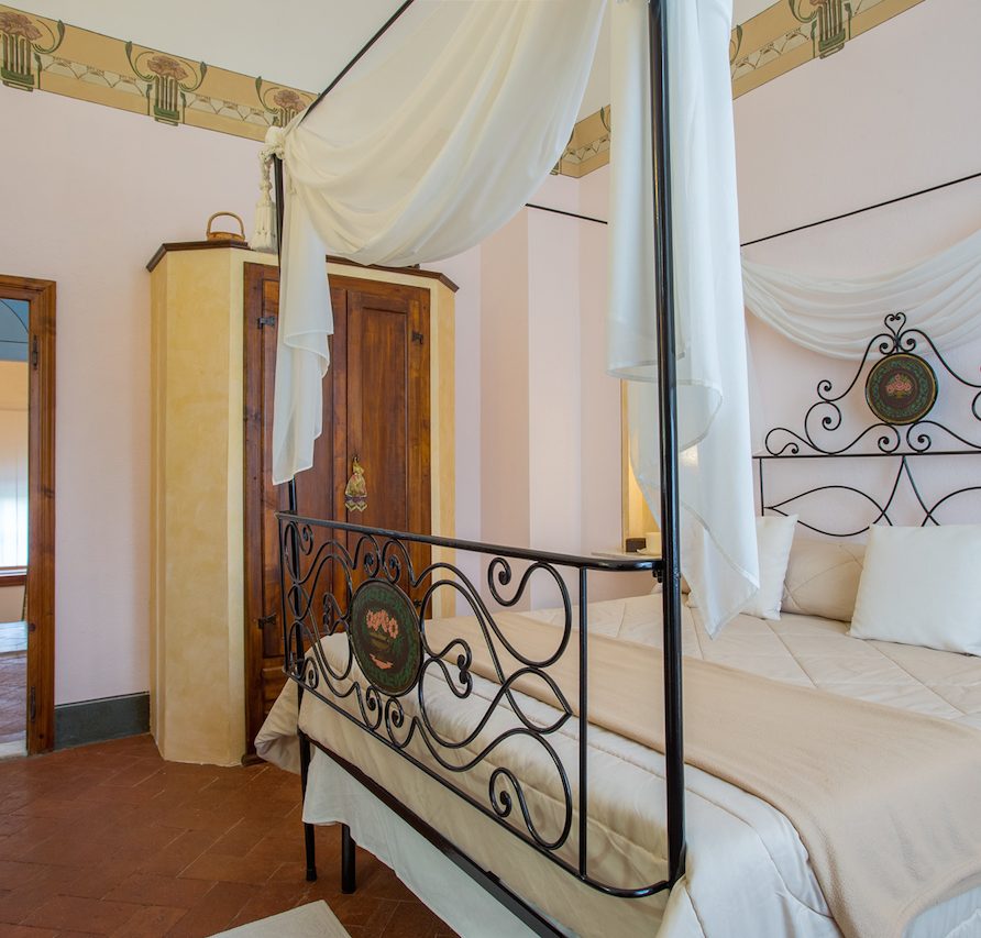 Situated on the top of a small hill, 155 metres above sea level and overlooking the magnificent scenery which surrounds the city of Volterra, the villa was built in the nearby town of Fabbrica by one of the noble families of the grand Duchy of Tuscany. Volterra is surrounded by olive groves and vineyards and has not lost the the authentic aura typical of the whole of Tuscany. The village developed around the original . tower and sronghold and one of the villas in the area is Villa Panoramica. It dates back to the 18 hundreds and is in the elegant Liberty style of the period. It was restructed many years ago , maintaining the original architectural characteristics.