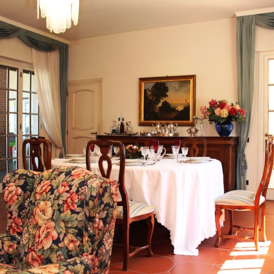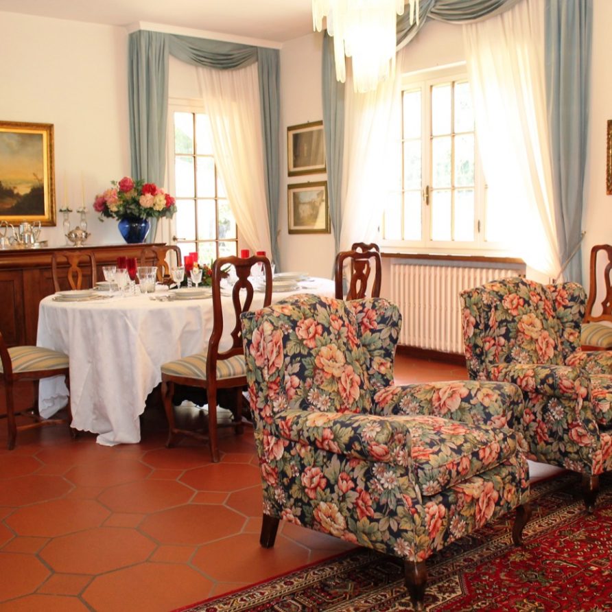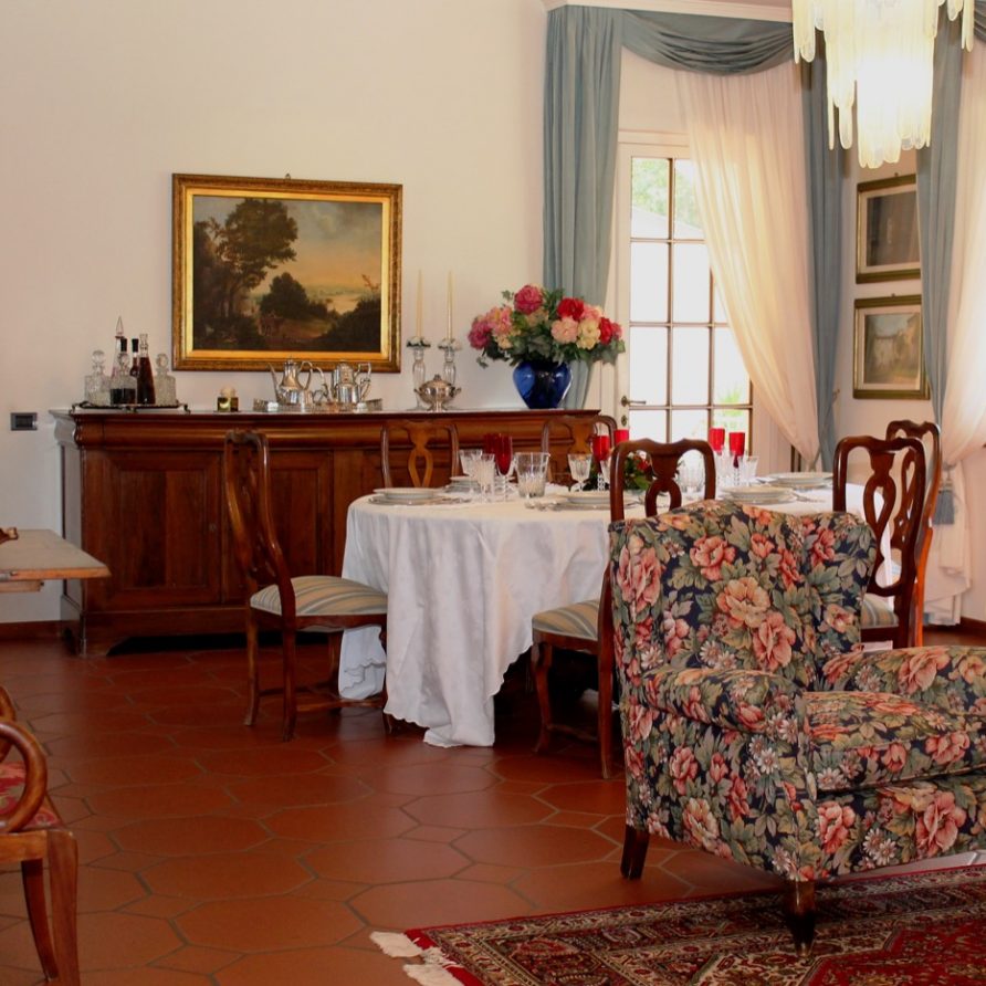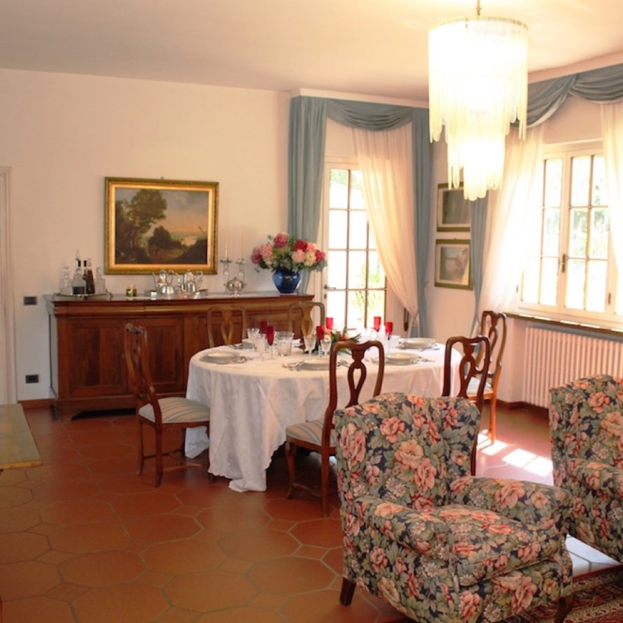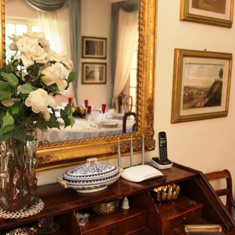 You have at disposal 3 bedrooms and 3 bathrooms ( ones outside close to the pool). The rental apartment includes a large lounge for dining with a living room, furnished with original period furniture, paintings and precious carpets and curtains; a fully equipped kitchen with ‘American fridge’ with ice maker, kettle, electric oven, microwave, espresso machine etc .; a sleeping area divided into two bedrooms, one with a double bed, furnished with style furniture and overlooking the lawn above the pool and a twin bedroom furnished with modern furniture and views of the balusters of the garden; large bathroom with bathtub and shower. TV with large screen in the living room and TV in the master bedroom, satellite channel reception with sky channels (sports and movies).