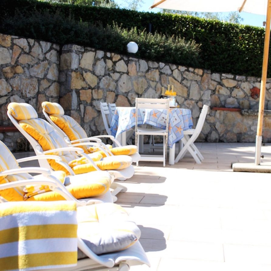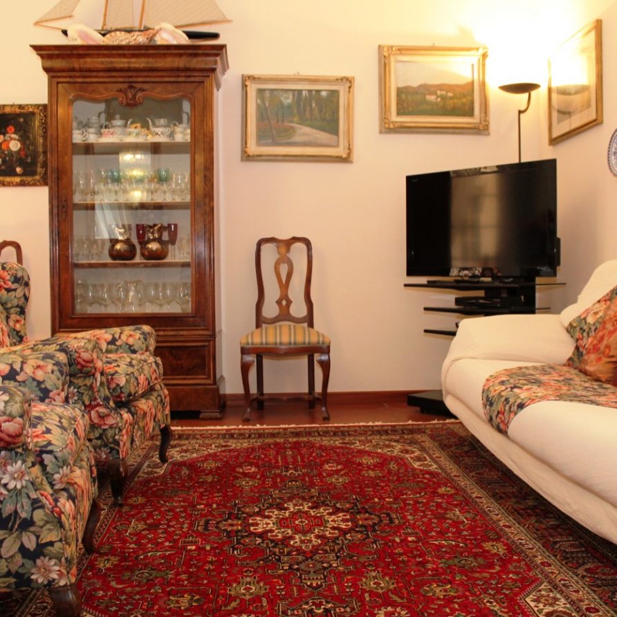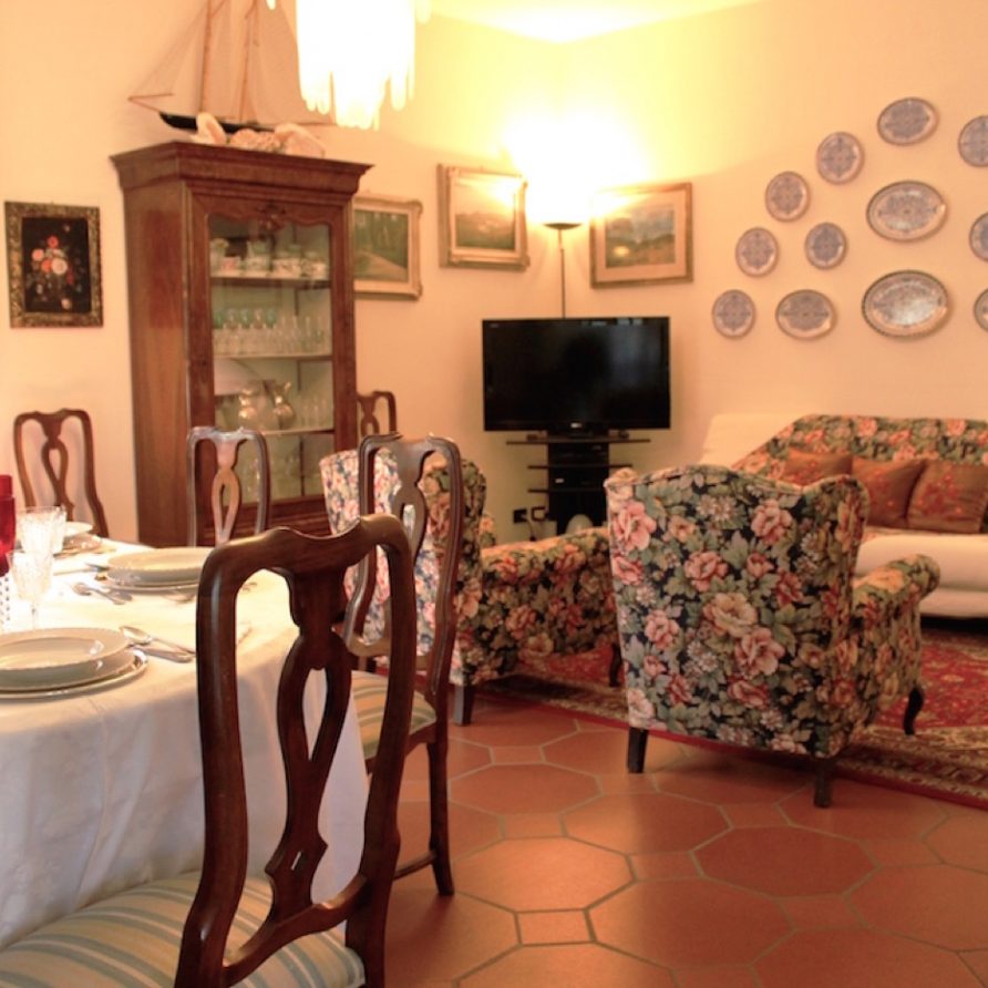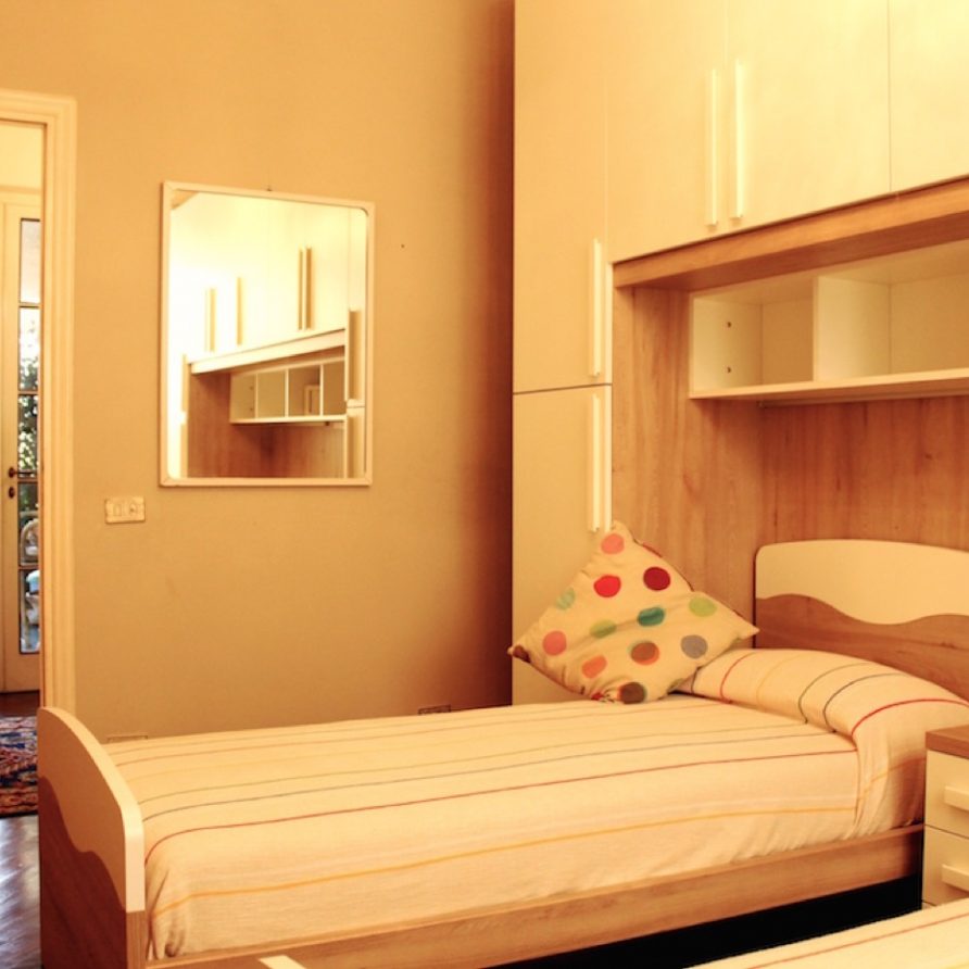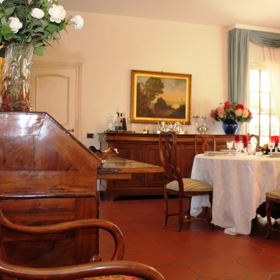 You have at disposal 3 bedrooms and 3 bathrooms ( ones outside close to the pool). The rental apartment includes a large lounge for dining with a living room, furnished with original period furniture, paintings and precious carpets and curtains; a fully equipped kitchen with ‘American fridge’ with ice maker, kettle, electric oven, microwave, espresso machine etc .; a sleeping area divided into two bedrooms, one with a double bed, furnished with style furniture and overlooking the lawn above the pool and a twin bedroom furnished with modern furniture and views of the balusters of the garden; large bathroom with bathtub and shower. TV with large screen in the living room and TV in the master bedroom, satellite channel reception with sky channels (sports and movies).