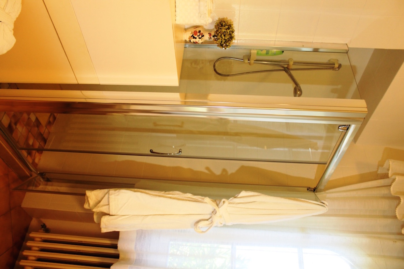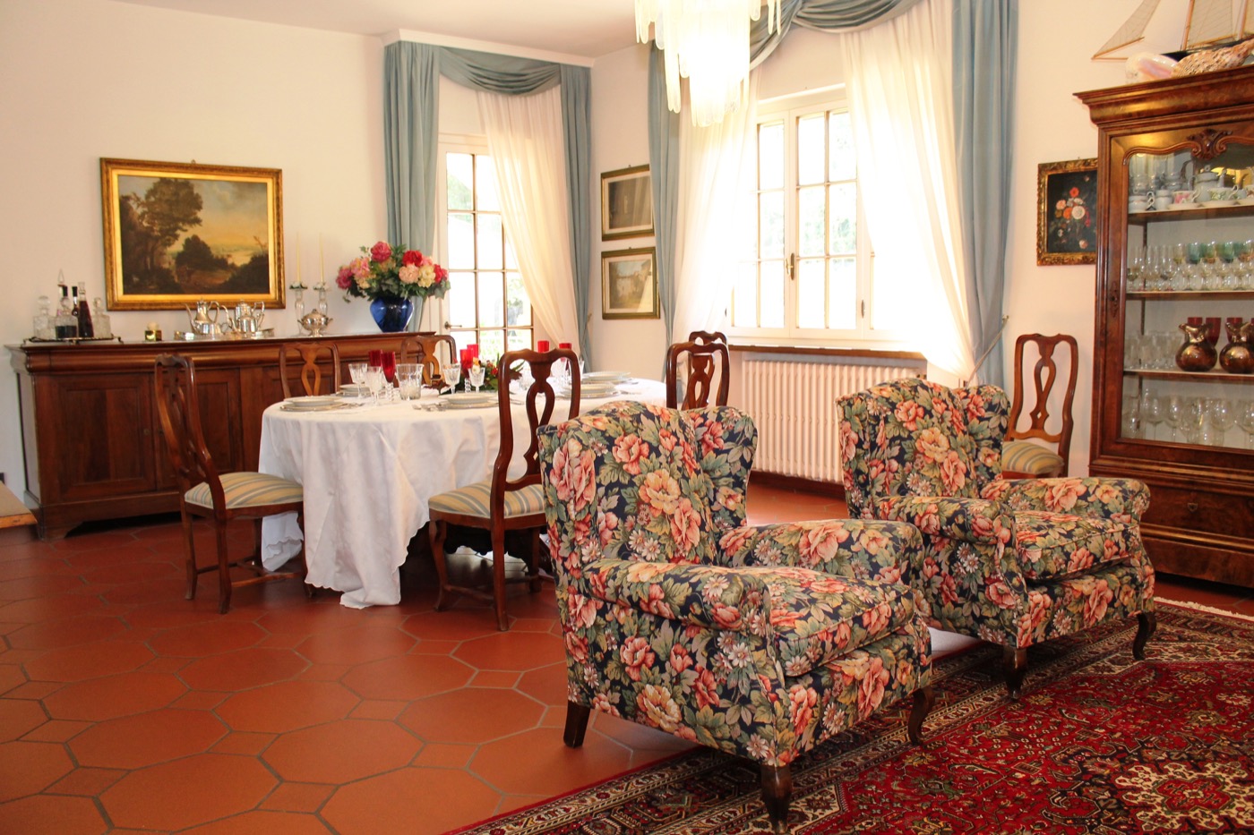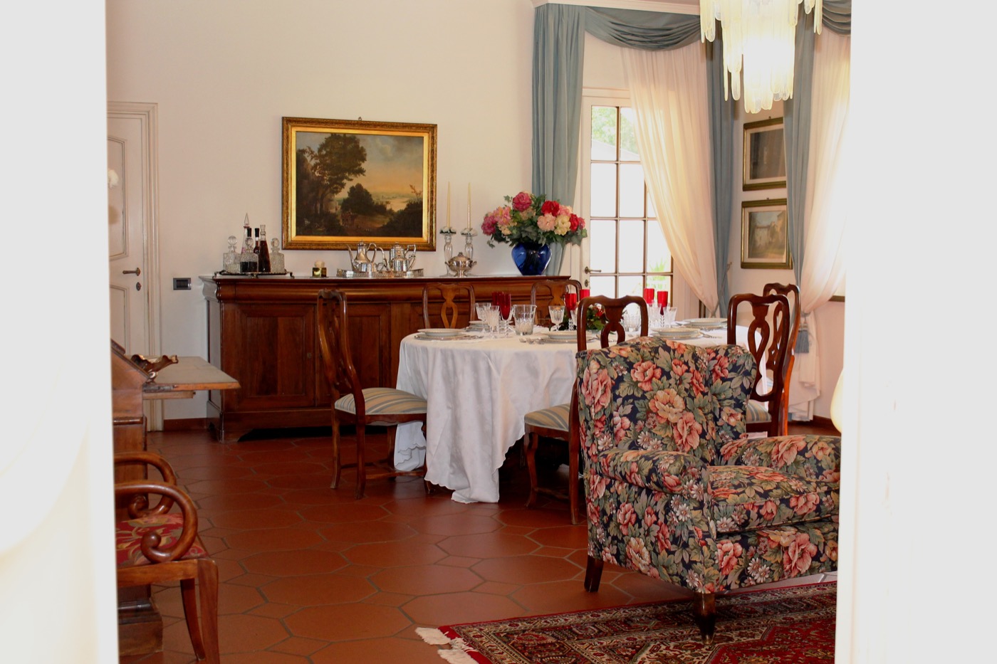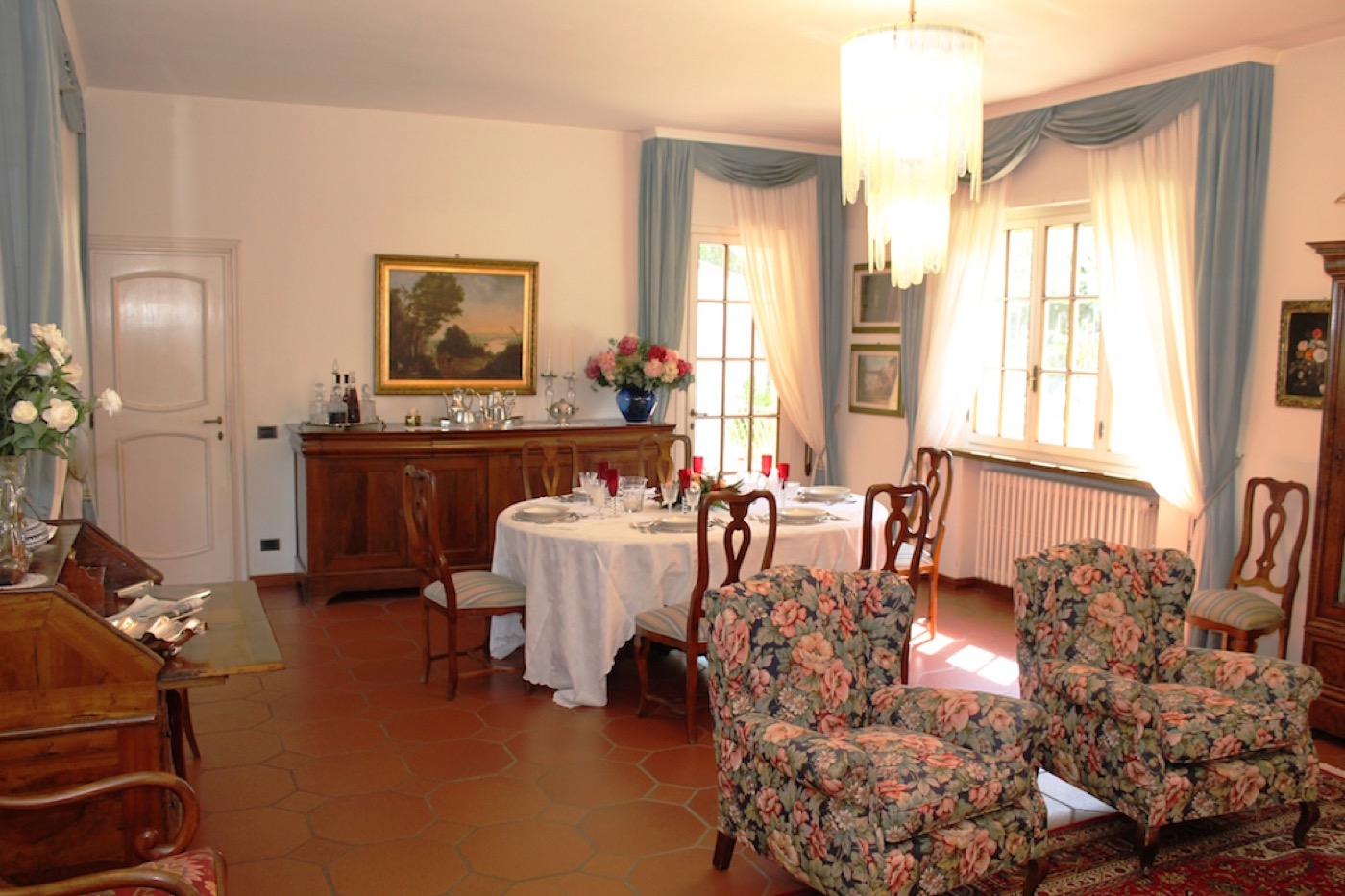 You have at disposal 3 bedrooms and 3 bathrooms ( ones outside close to the pool). The rental apartment includes a large lounge for dining with a living room, furnished with original period furniture, paintings and precious carpets and curtains; a fully equipped kitchen with ‘American fridge’ with ice maker, kettle, electric oven, microwave, espresso machine etc .; a sleeping area divided into two bedrooms, one with a double bed, furnished with style furniture and overlooking the lawn above the pool and a twin bedroom furnished with modern furniture and views of the balusters of the garden; large bathroom with bathtub and shower. TV with large screen in the living room and TV in the master bedroom, satellite channel reception with sky channels (sports and movies).