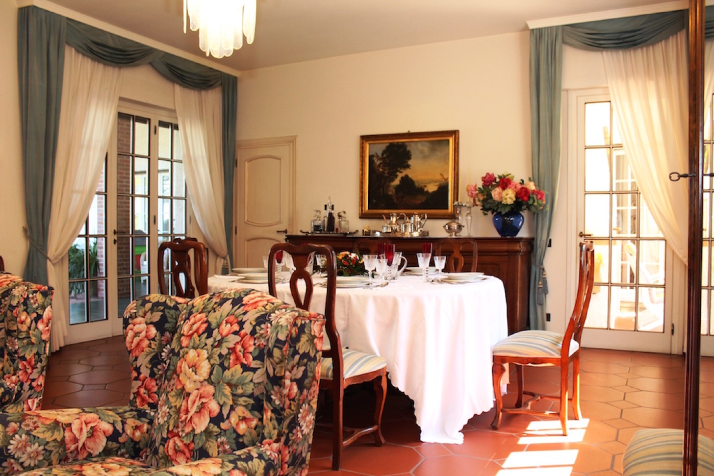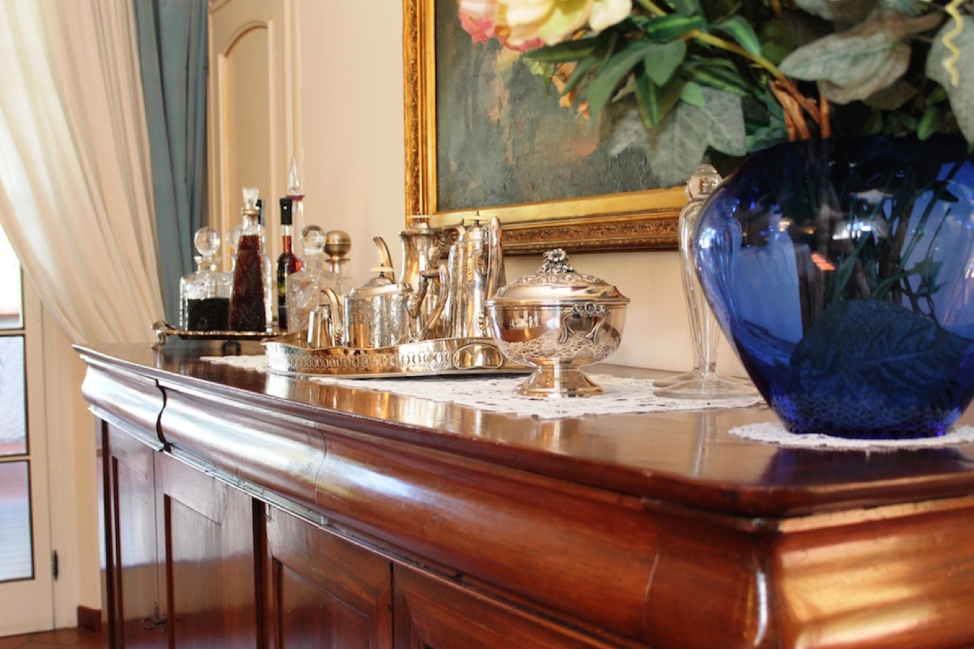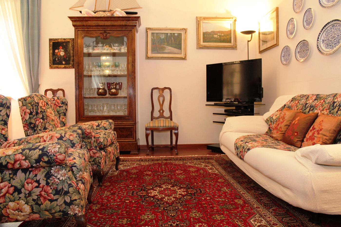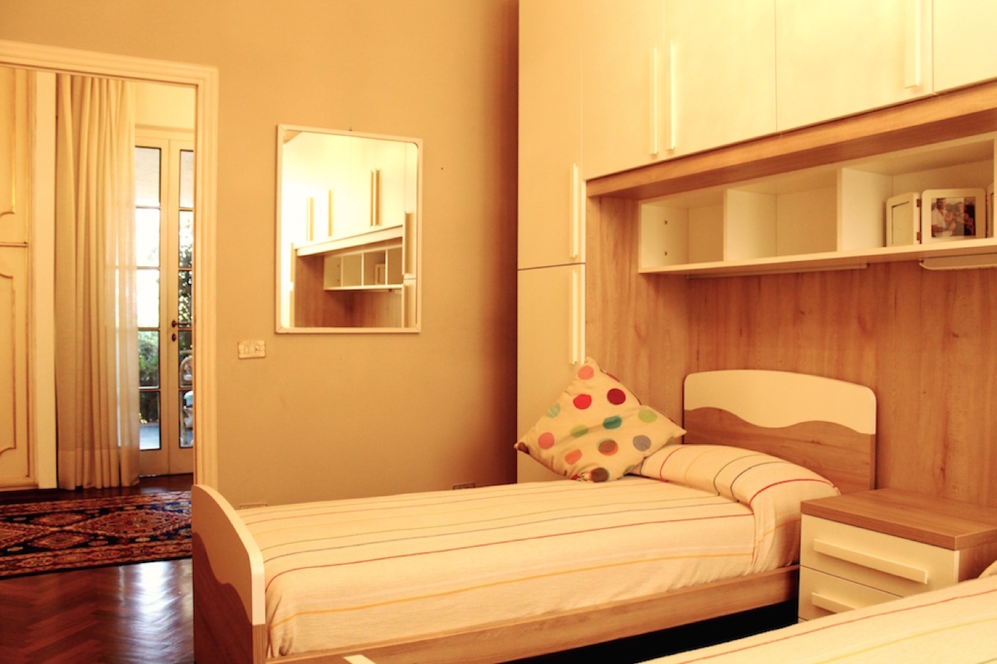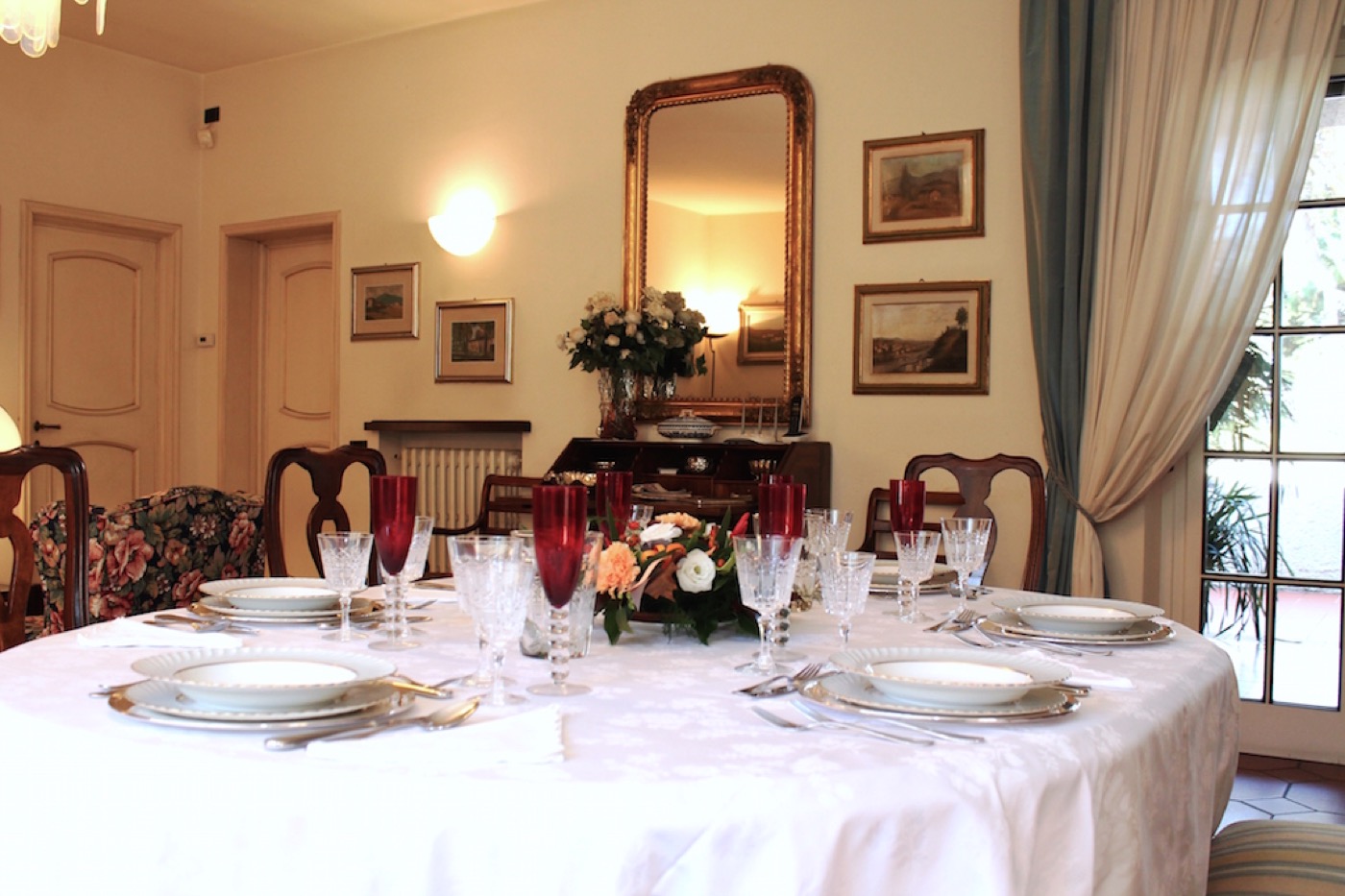 You have at disposal 3 bedrooms and 3 bathrooms ( ones outside close to the pool). The rental apartment includes a large lounge for dining with a living room, furnished with original period furniture, paintings and precious carpets and curtains; a fully equipped kitchen with ‘American fridge’ with ice maker, kettle, electric oven, microwave, espresso machine etc .; a sleeping area divided into two bedrooms, one with a double bed, furnished with style furniture and overlooking the lawn above the pool and a twin bedroom furnished with modern furniture and views of the balusters of the garden; large bathroom with bathtub and shower. TV with large screen in the living room and TV in the master bedroom, satellite channel reception with sky channels (sports and movies).