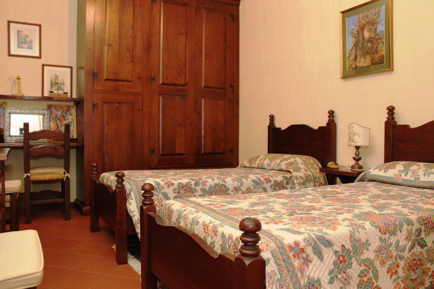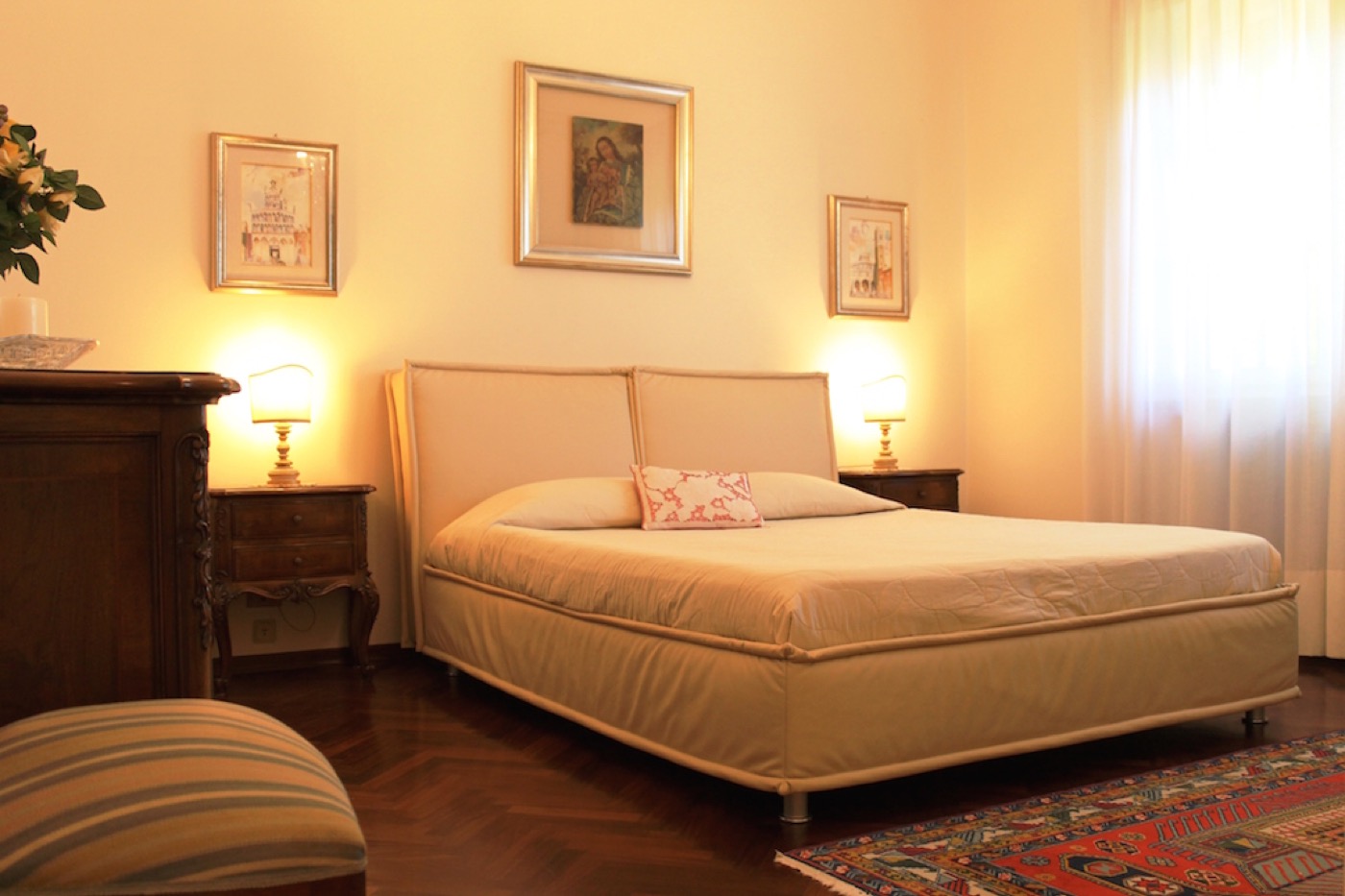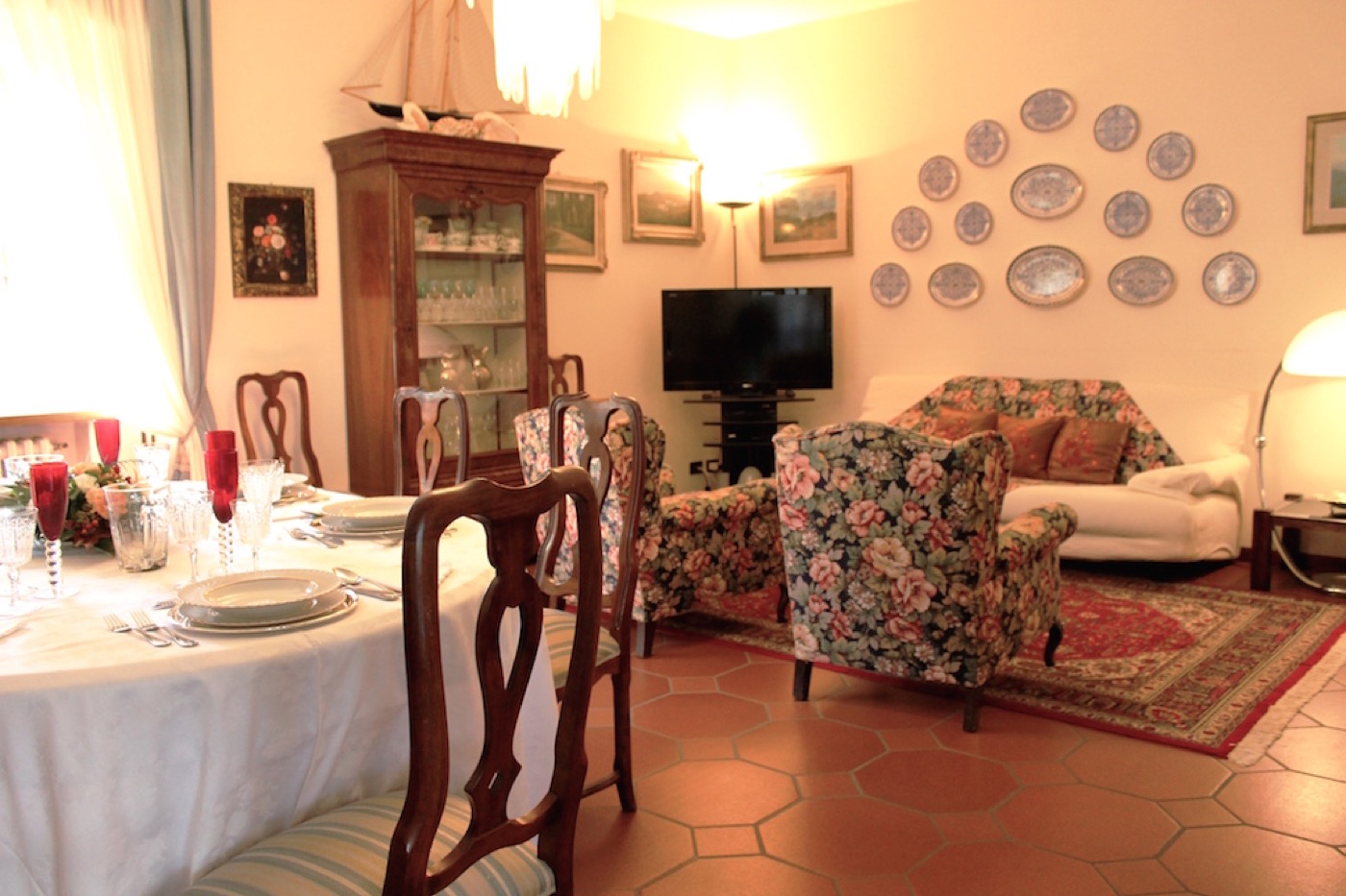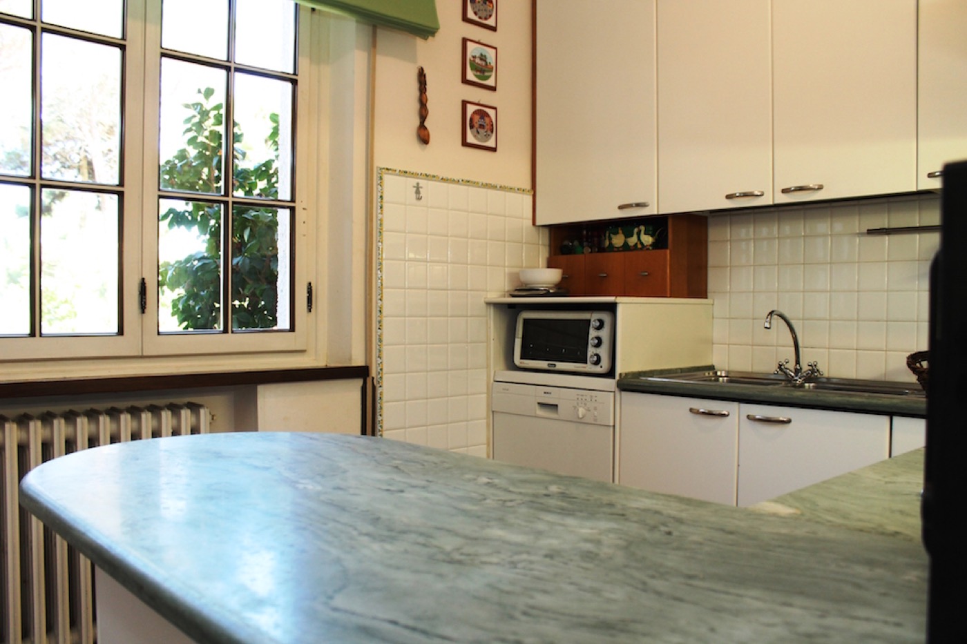 You have at disposal 3 bedrooms and 3 bathrooms ( ones outside close to the pool). The rental apartment includes a large lounge for dining with a living room, furnished with original period furniture, paintings and precious carpets and curtains; a fully equipped kitchen with ‘American fridge’ with ice maker, kettle, electric oven, microwave, espresso machine etc .; a sleeping area divided into two bedrooms, one with a double bed, furnished with style furniture and overlooking the lawn above the pool and a twin bedroom furnished with modern furniture and views of the balusters of the garden; large bathroom with bathtub and shower. TV with large screen in the living room and TV in the master bedroom, satellite channel reception with sky channels (sports and movies).