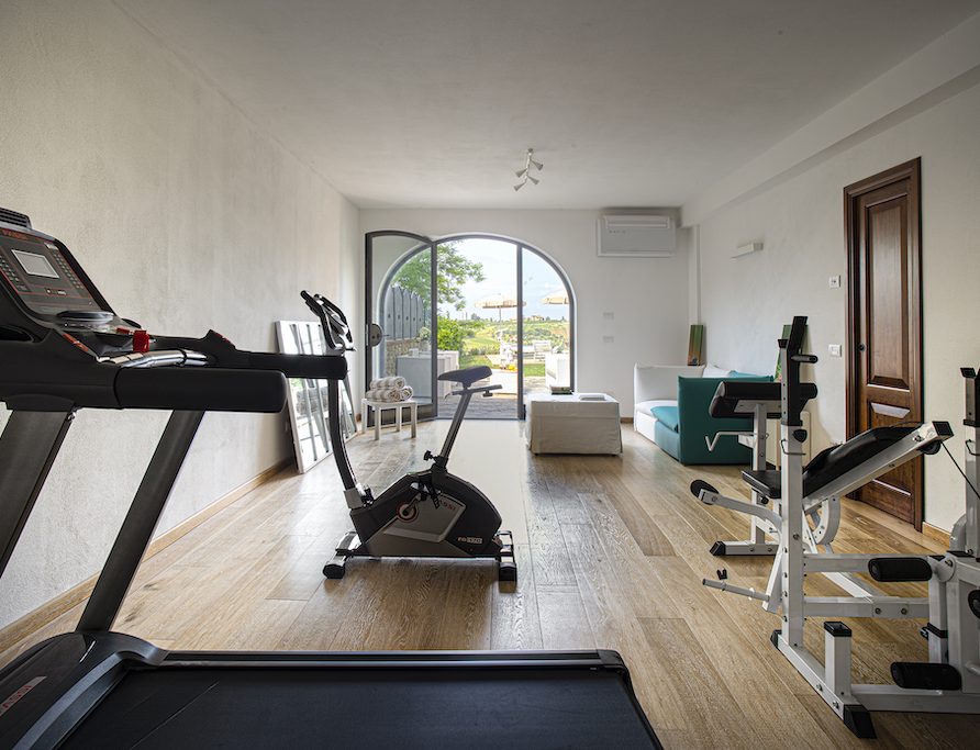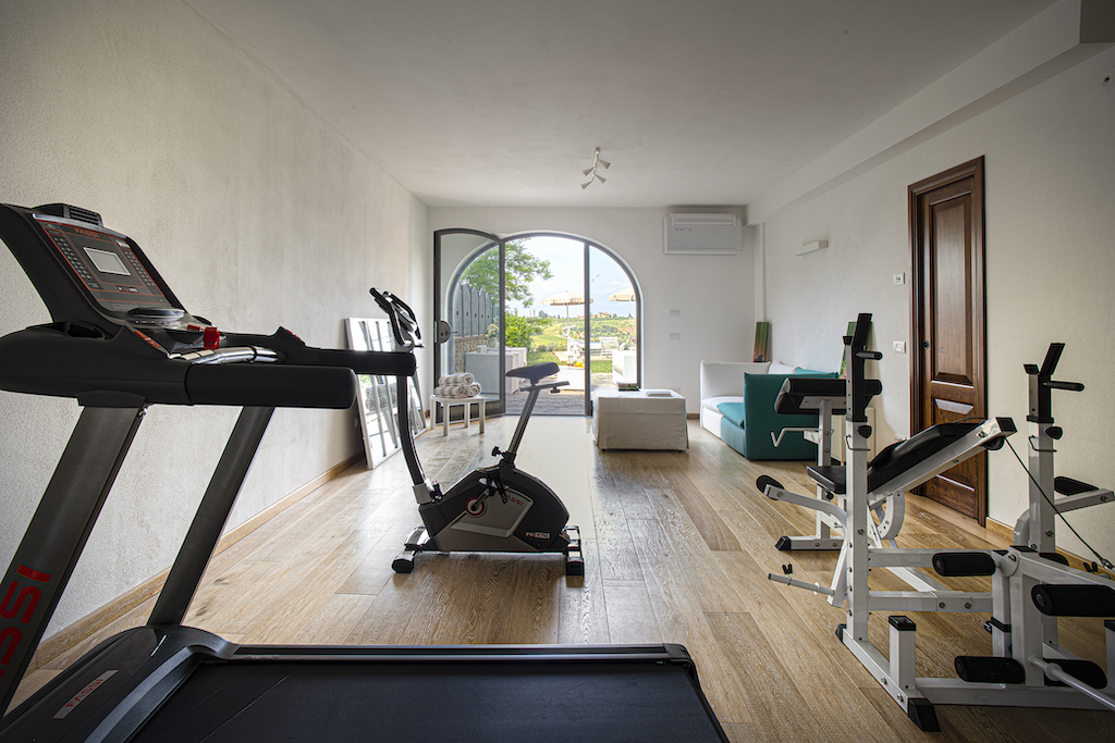 On the Villa lower floor you can find the RELAX room equipped with a treadmill, a stationary bike, a Sofa and bathroom with the shower.
