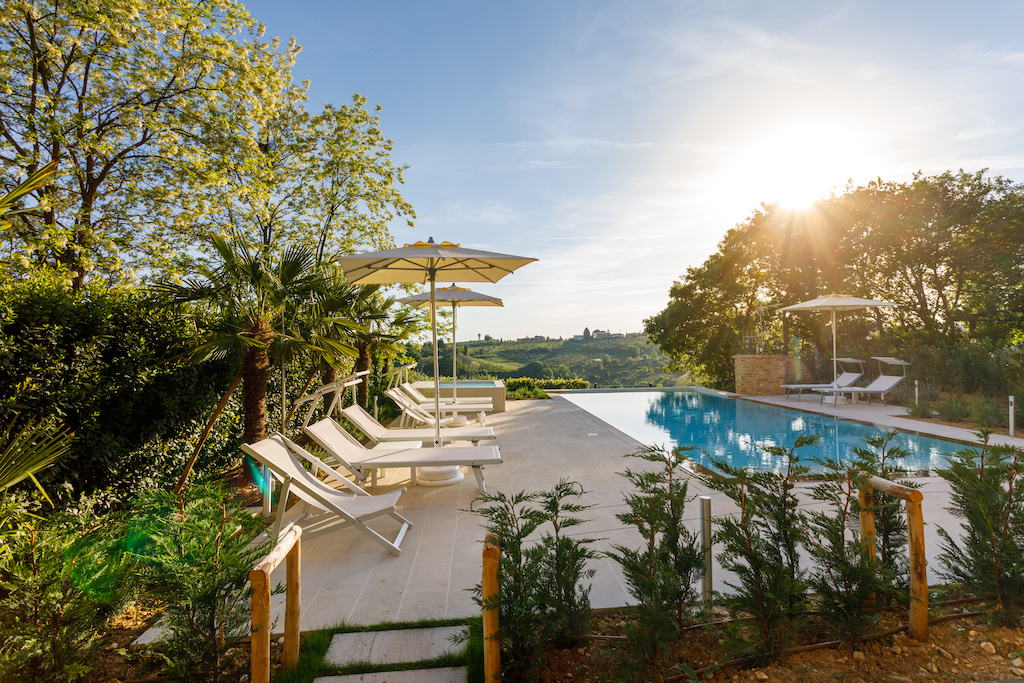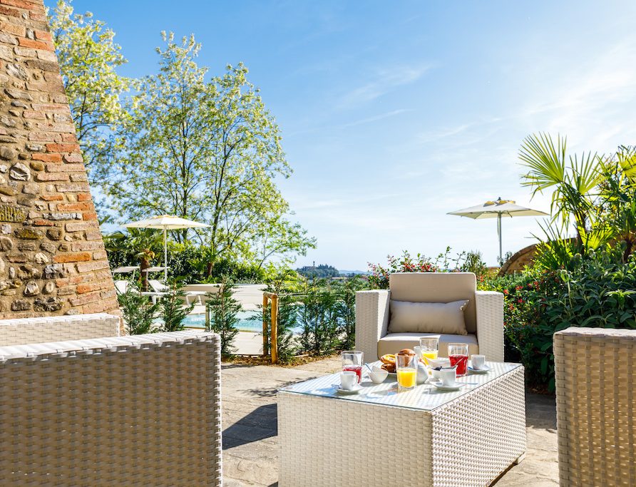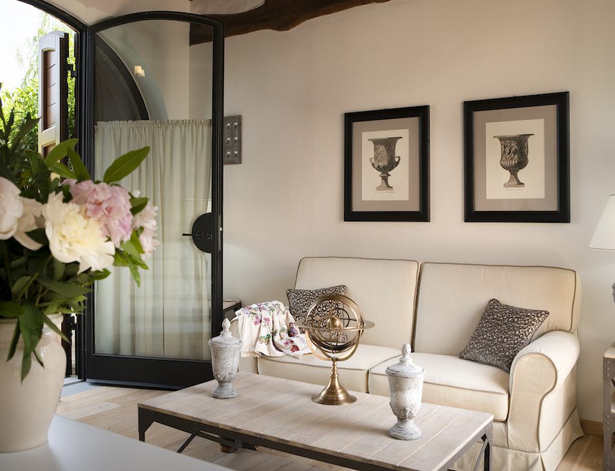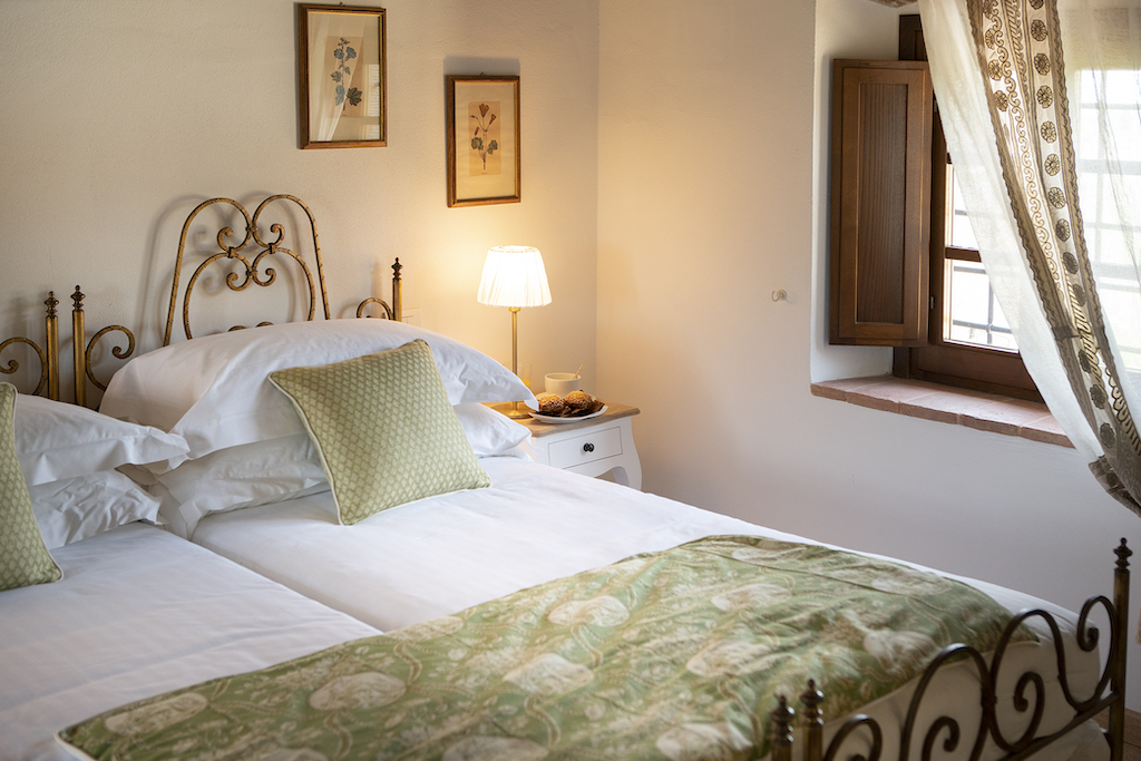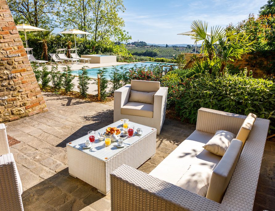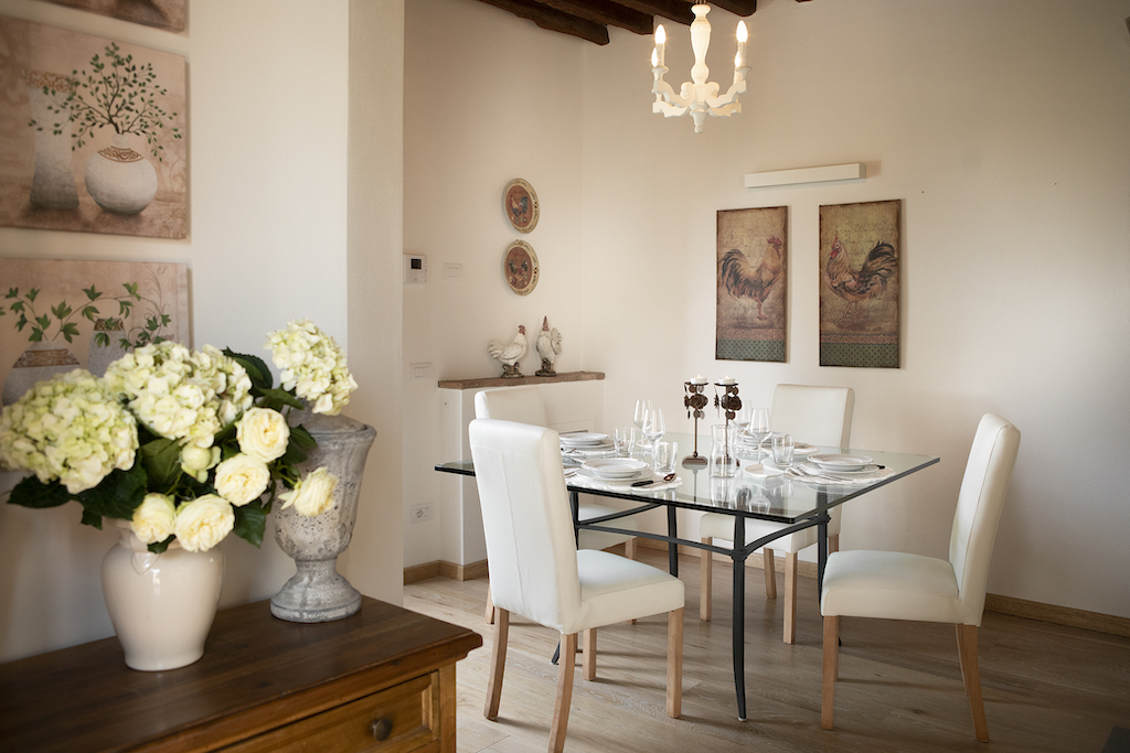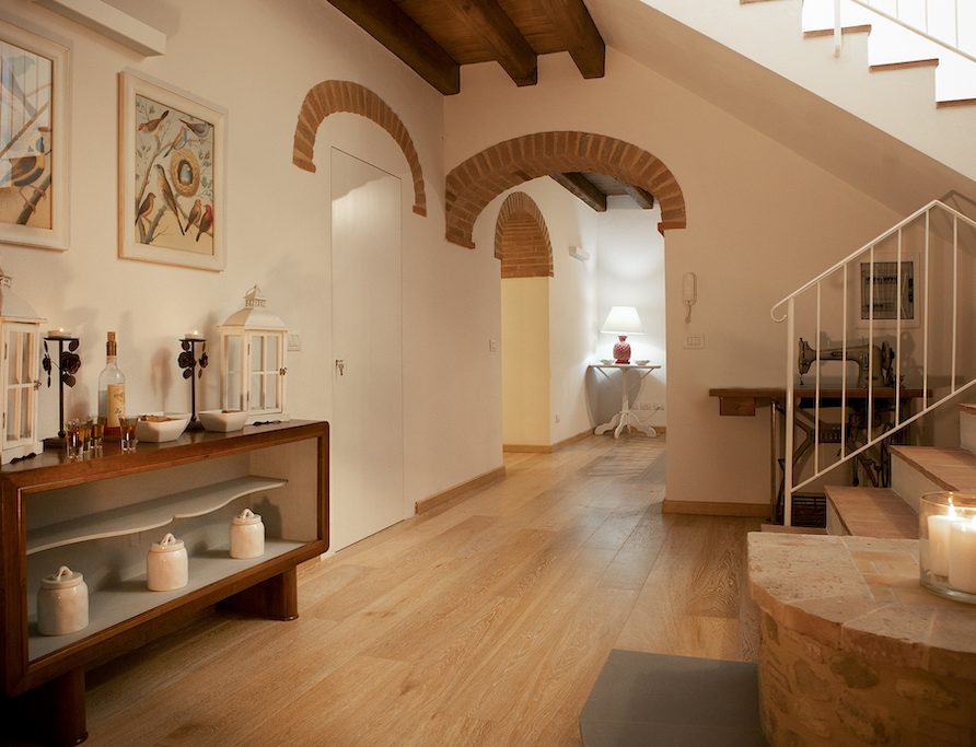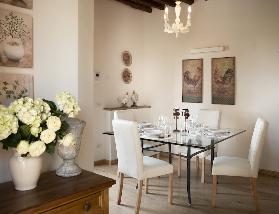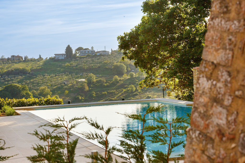 On the Villa first floor are located the three bedrooms Rosa, Girasole and Peonia. Two have double beds and one have two single beds. All the bedrooms have ensuite bathroom with shower. The sixth double bedroom, Gelsomino with bathroom with shower, is located on the Villa’s higher level, on the tower, with a stunning view over the Tuscan countryside, covered with vineyards and olive trees.The Villa is furnished also with lovely living areas with understated elegance which create a welcoming atmosphere. The Villa is completely Air Conditioned.
