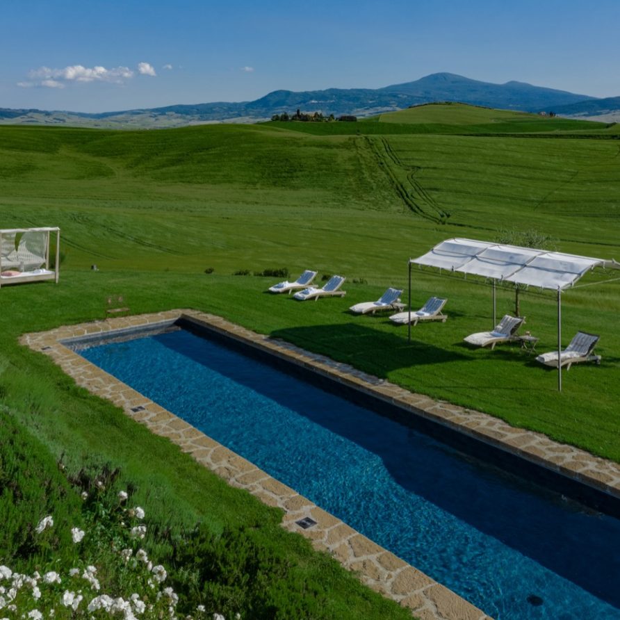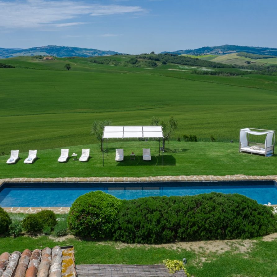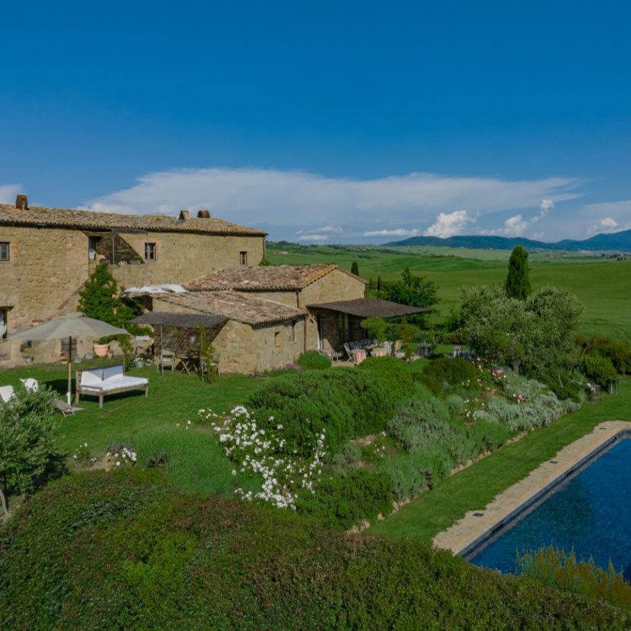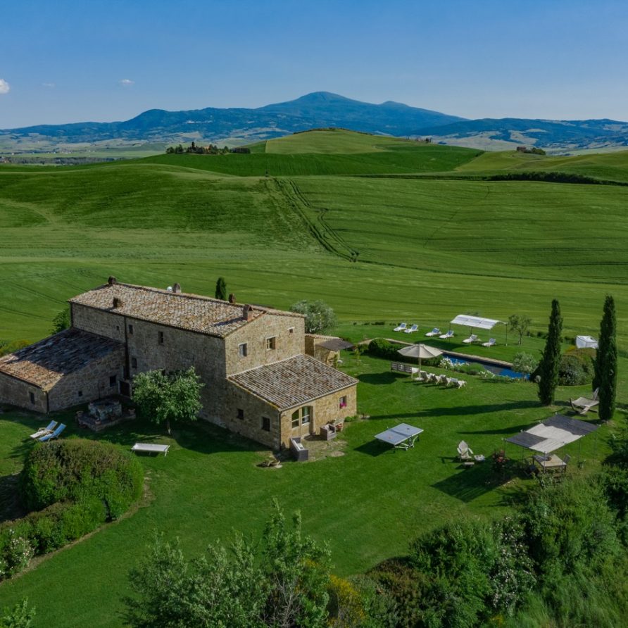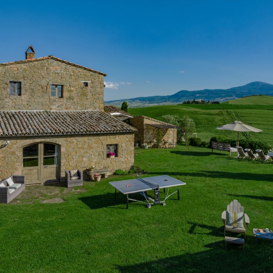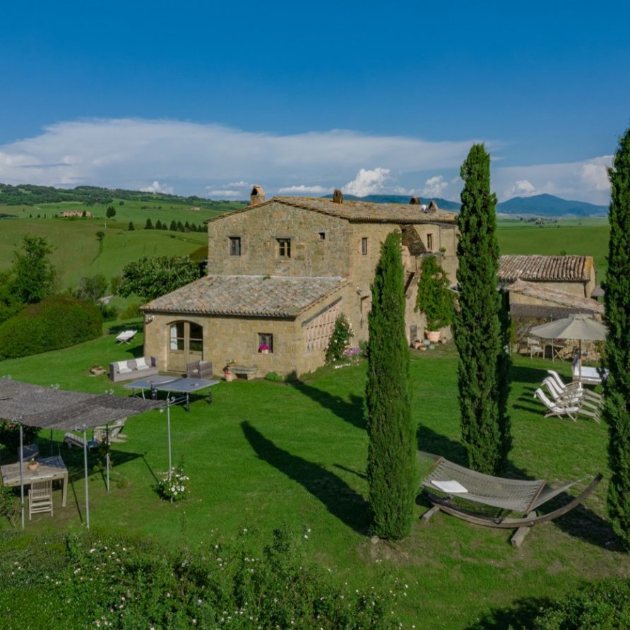 Near the delightful village of Pienza, surrounded by the sublime greenery of Val d’Orcia, there is a beautiful villa, which welcomes its guests in an exclusive atmosphere of familiarity and peace. The house is part of the natural surrounds and is inseparable from them. The countryside is part of the villa. The elegant property, situated on the top of a hill, with 6 bedrooms and ensuite bathrooms, dominates the surrounding area and offers a magnificent