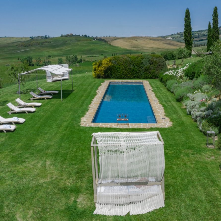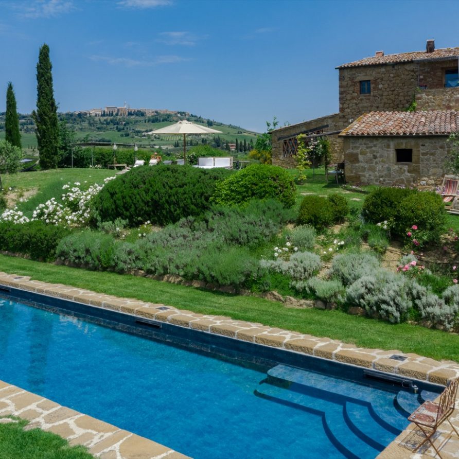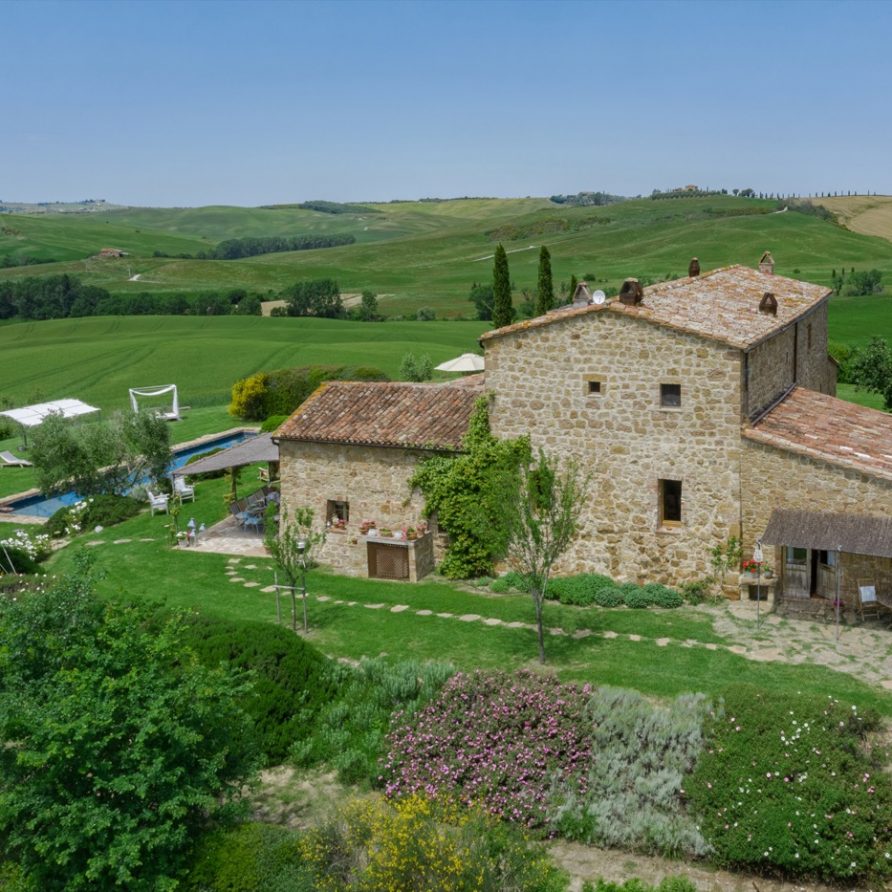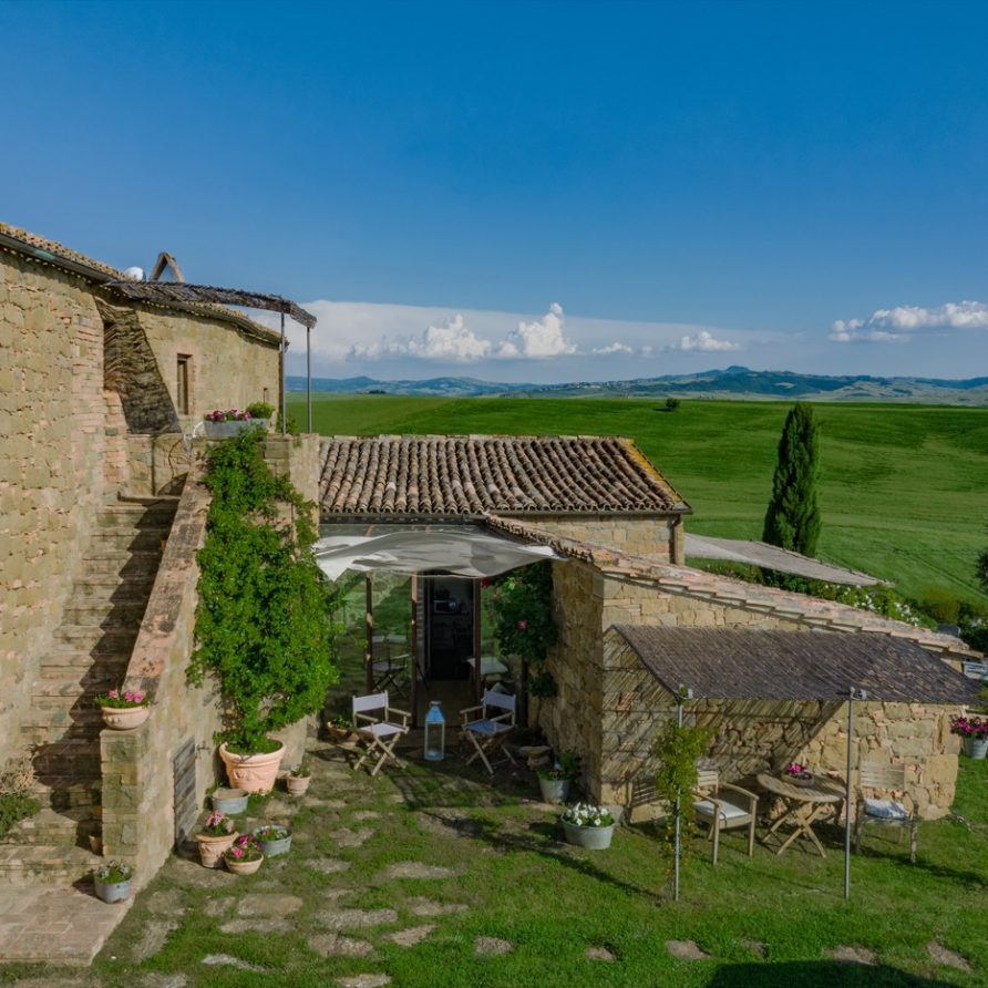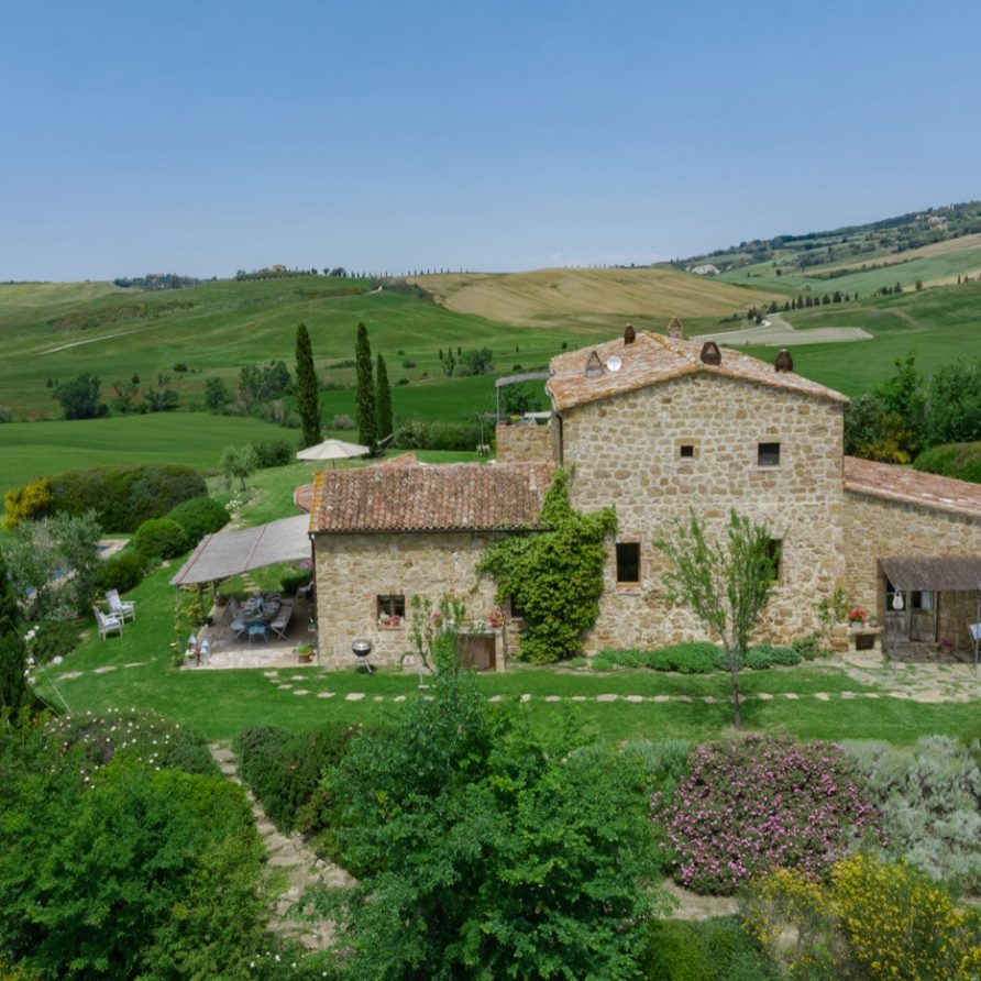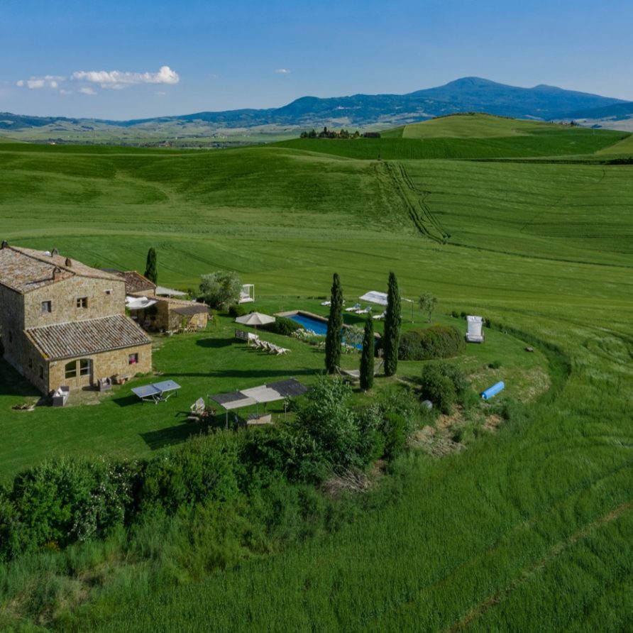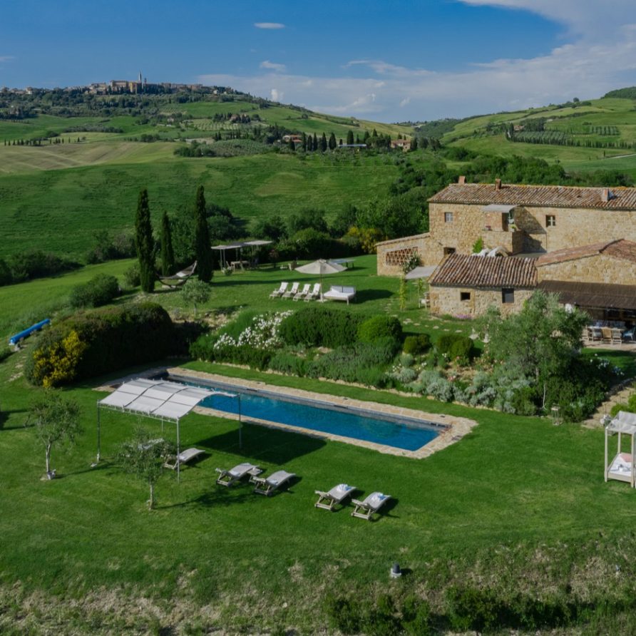 Near the delightful village of Pienza, surrounded by the sublime greenery of Val d’Orcia, there is a beautiful villa, which welcomes its guests in an exclusive atmosphere of familiarity and peace. The house is part of the natural surrounds and is inseparable from them. The countryside is part of the villa. The elegant property, situated on the top of a hill, with 6 bedrooms and ensuite bathrooms, dominates the surrounding area and offers a magnificent